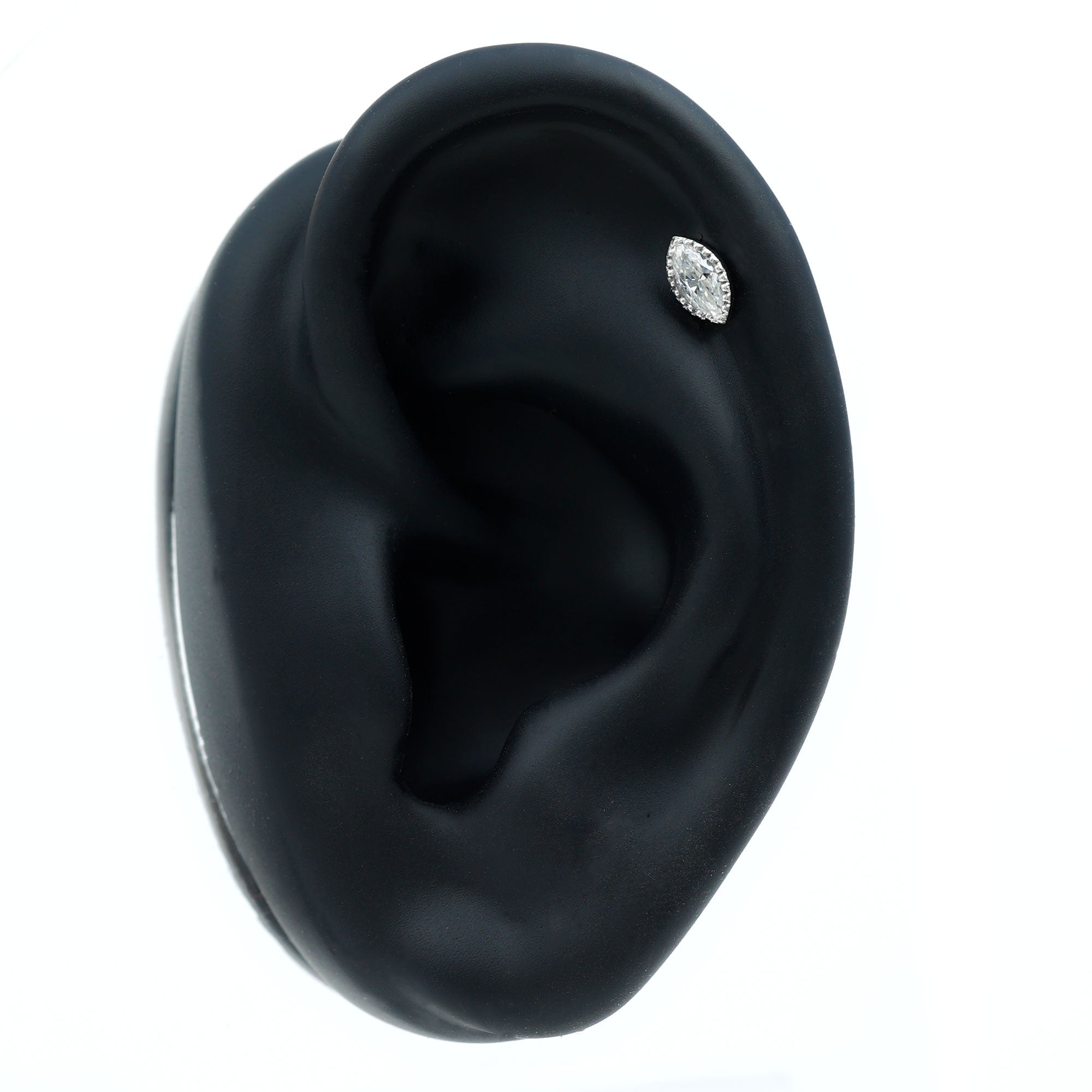 Marquise Moissanite Solitaire Tragus Earring in Bezel Setting