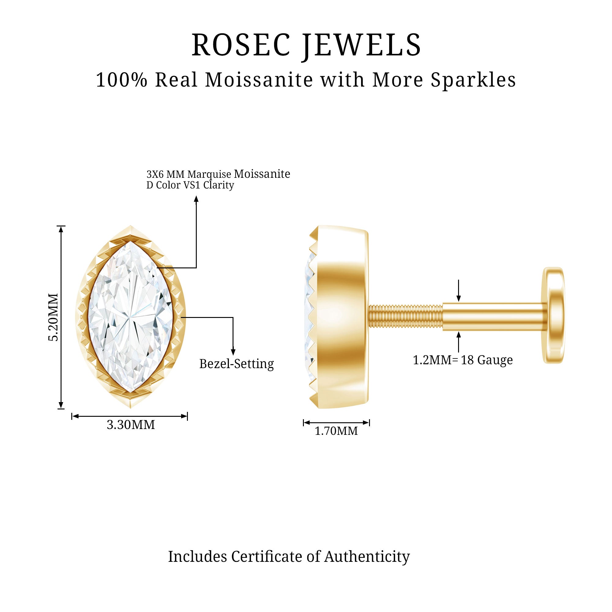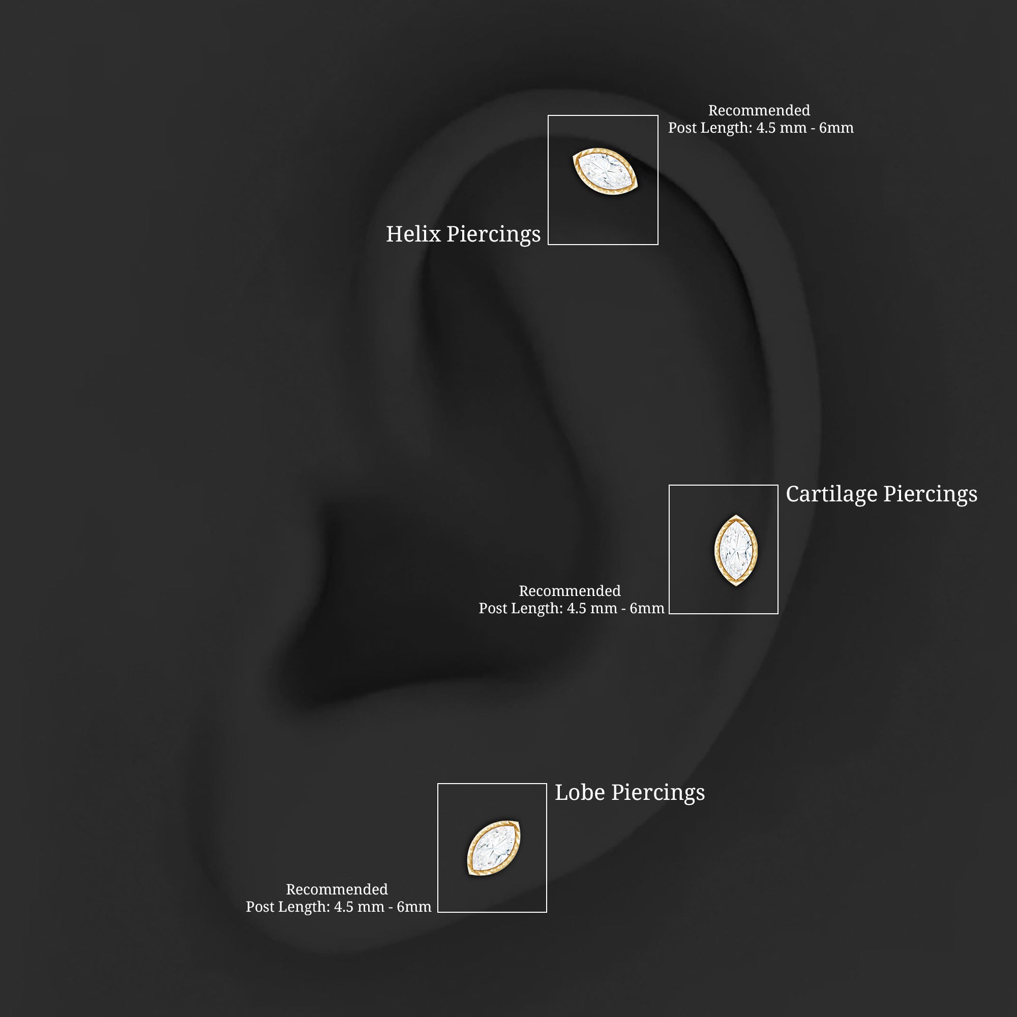 This Moissanite Tragus Earring showcases a Marquise Cut Moissanite secured in Scalloped Bezel Setting. Crafted with Hallmarked Metal Stamp and can be worn on your Helix, Conch, Tragus, Upper Lobe, or Cartilage Piercings. It is a perfect choice for those who want to add a touch of elegance and glamour to their style.