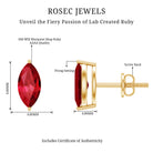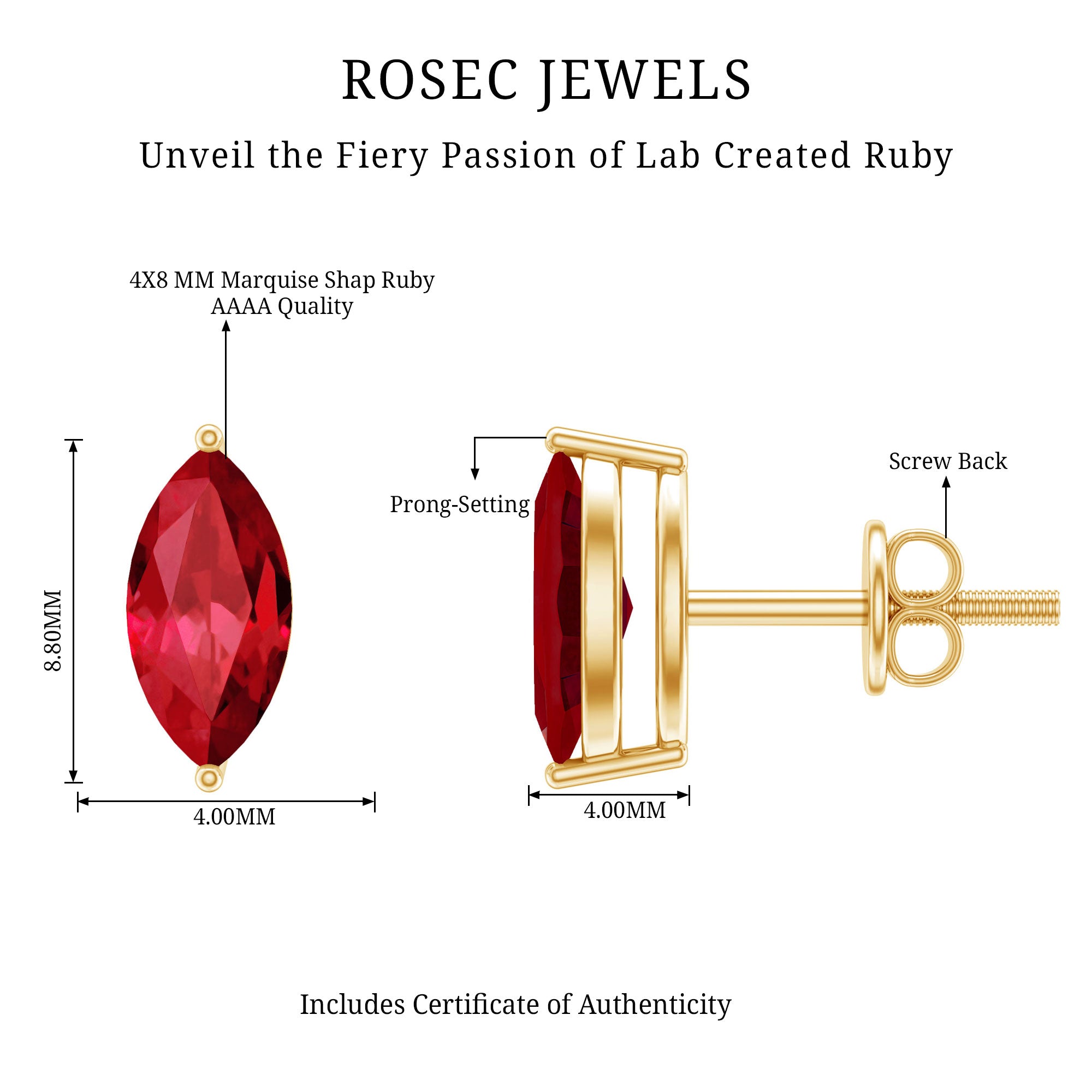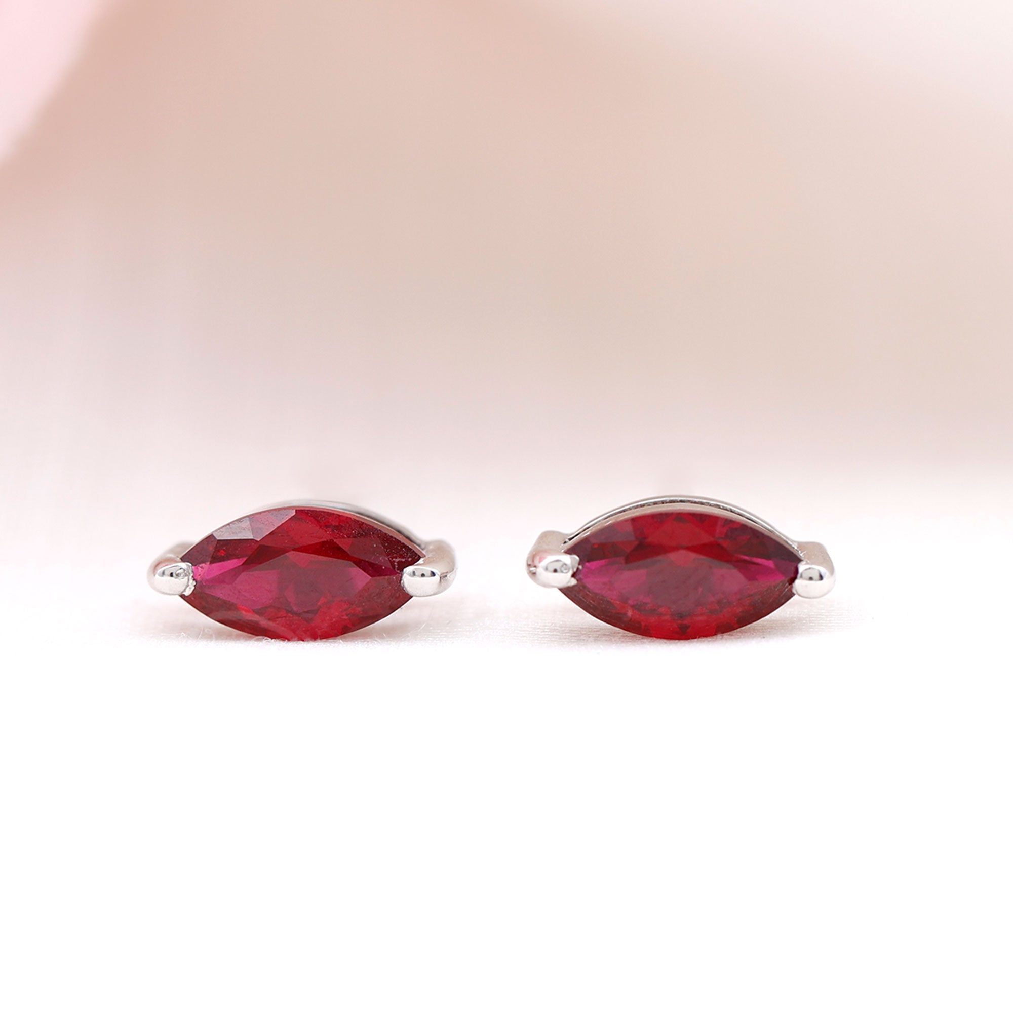 Enrich your style with our Stud Earrings, designed to elevate all your looks. The marquise-cut created ruby exquisitely set in 2 prong setting exuding a charming allure you will love to wear often. These created ruby earrings come with a screw-back closure which ensures a safe and snug fit all day and night. The mesmerizing red hue of these earrings studs is sure to capture attention wherever you go, making them a must-have accessory in your collection.