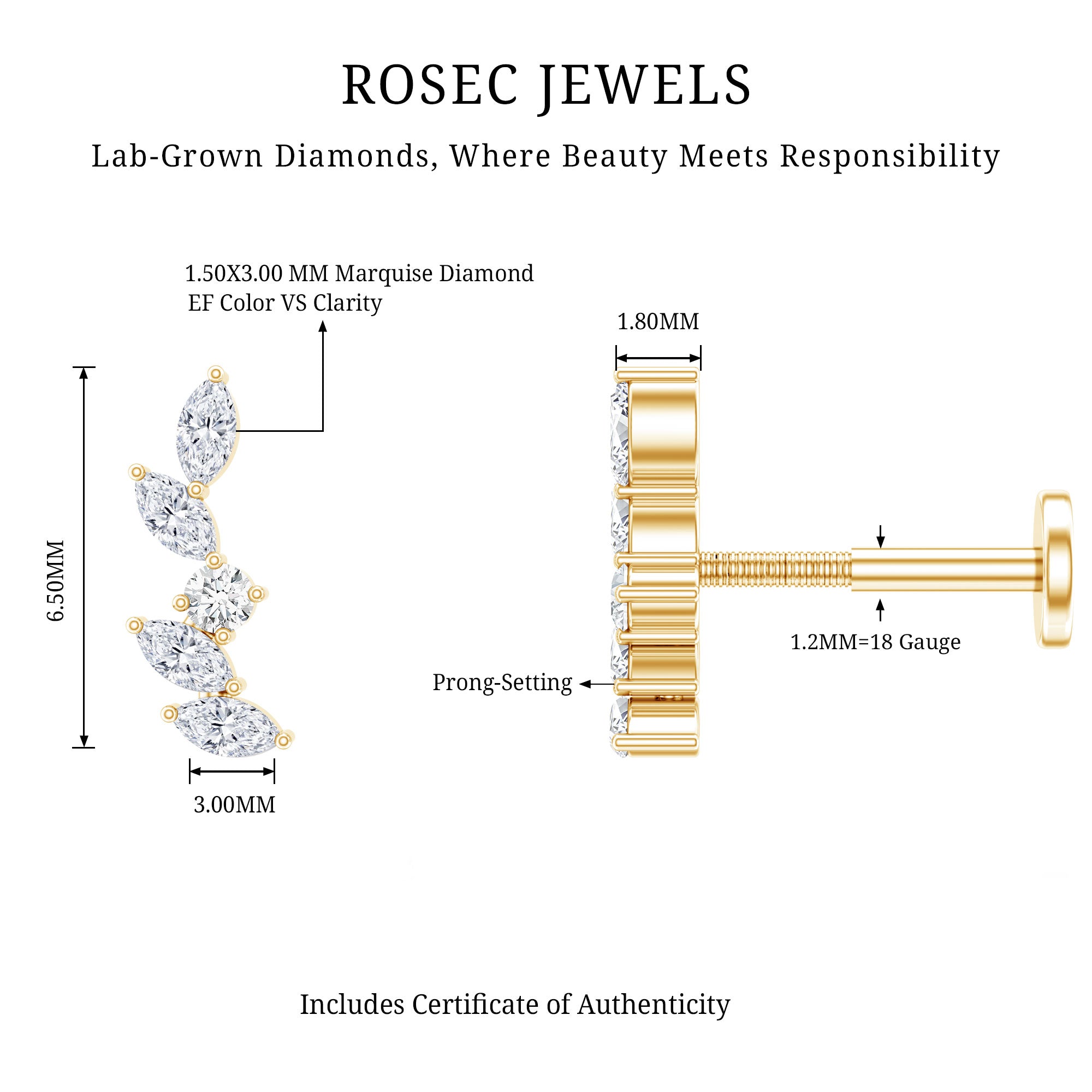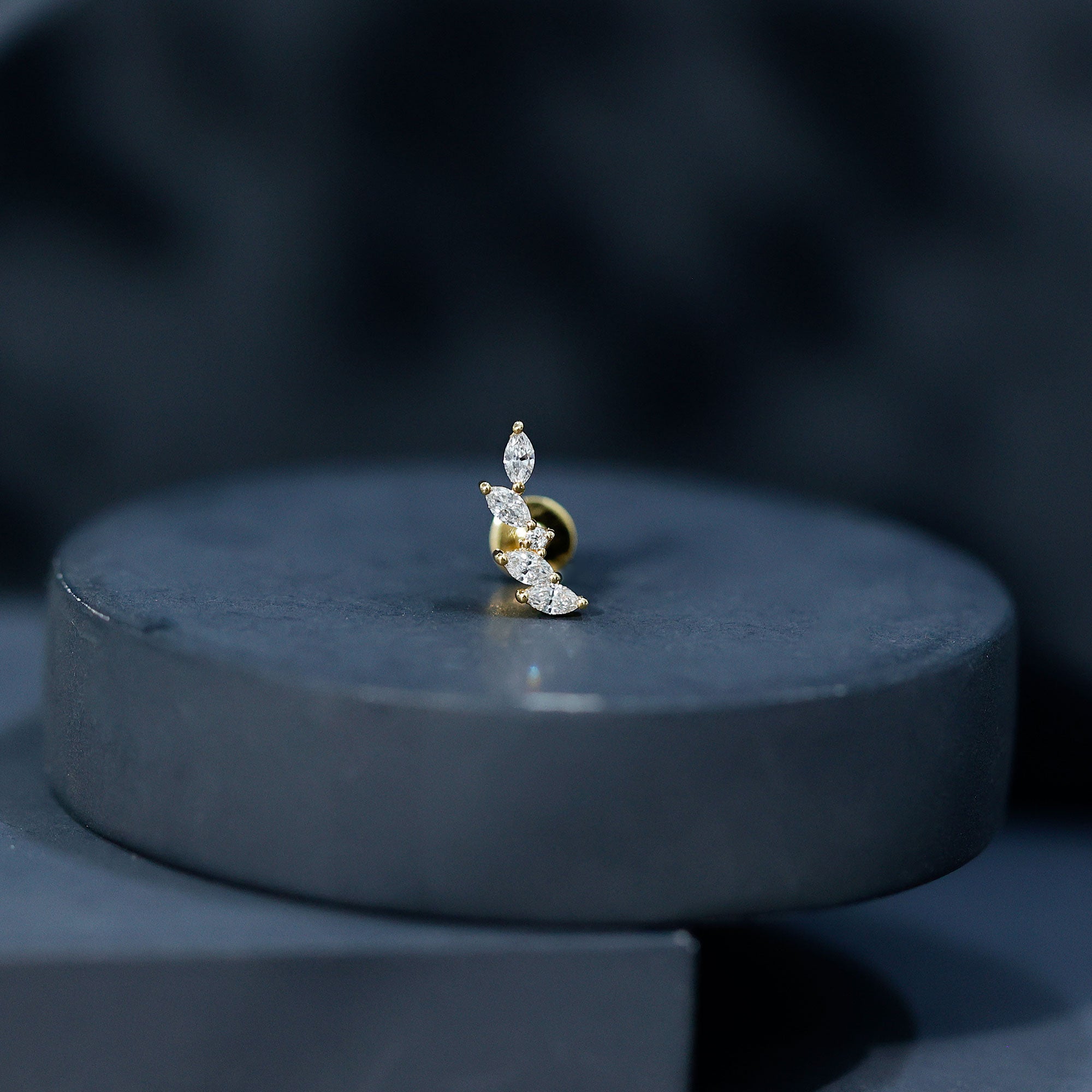 Diamonds are valued for their durability and light performance. The marquise shape adds a distinctive elongated sparkle that complements the crawler design. With proper insertion and secure fastening, this helix earring is suitable for regular wear. Removing jewelry during activities that may cause impact helps preserve its structure and finish.