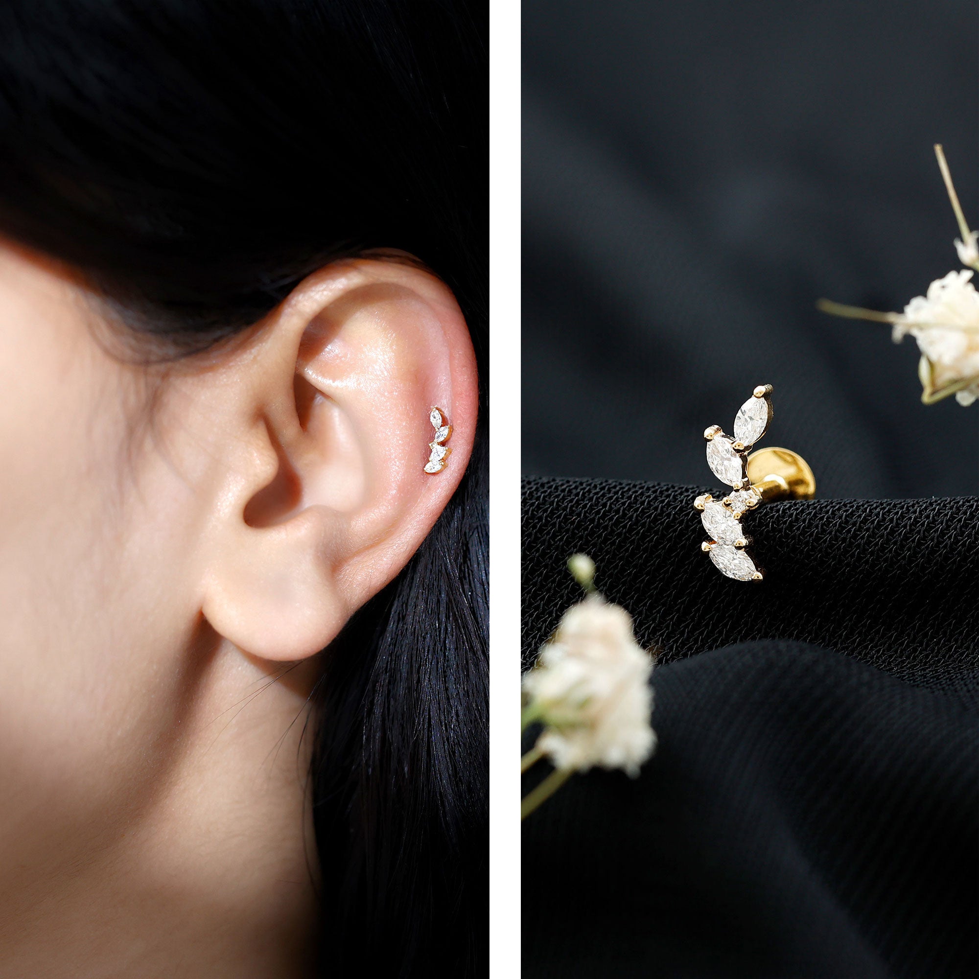 FAQs About: Marquise Shape Diamond Leaf Crawler Helix Earring