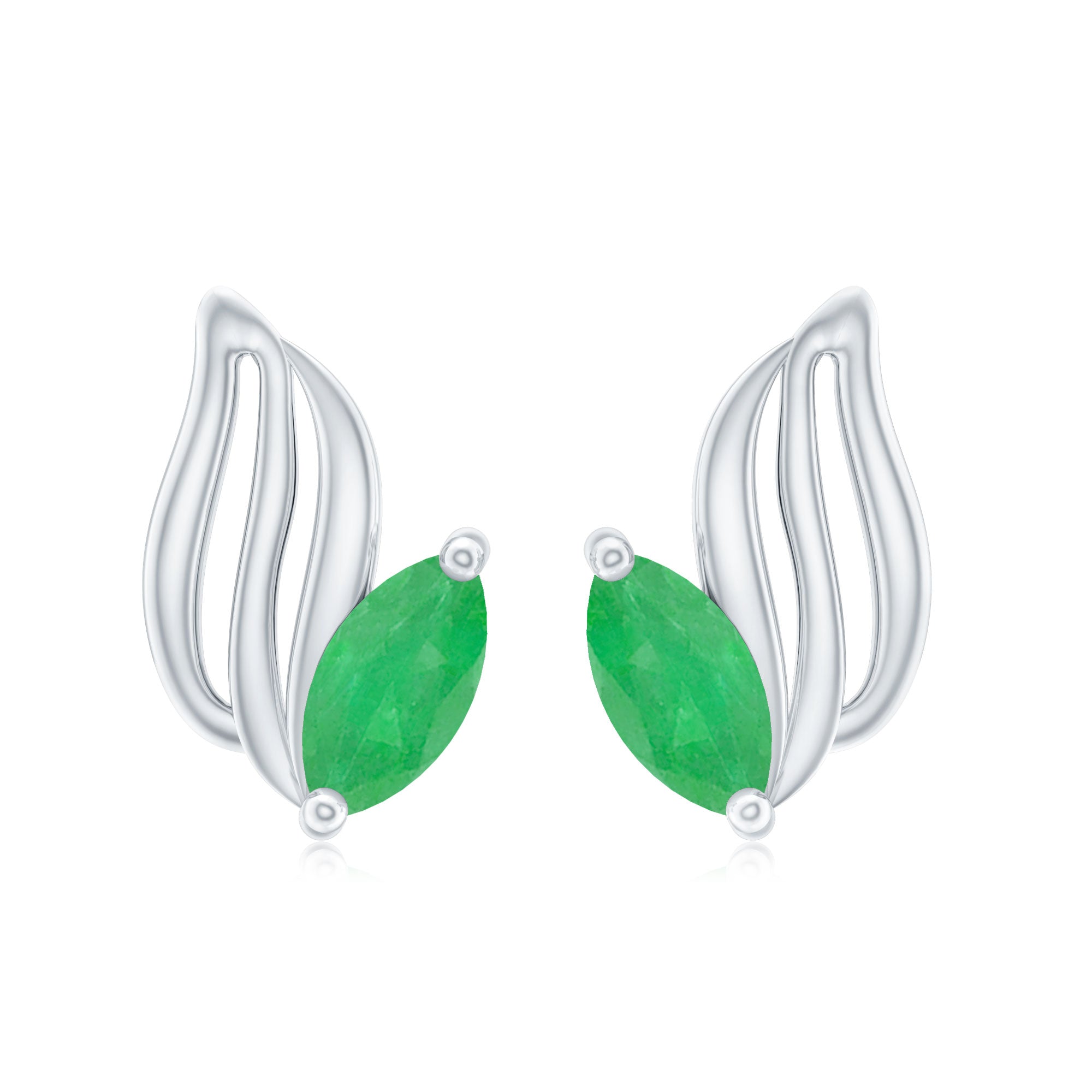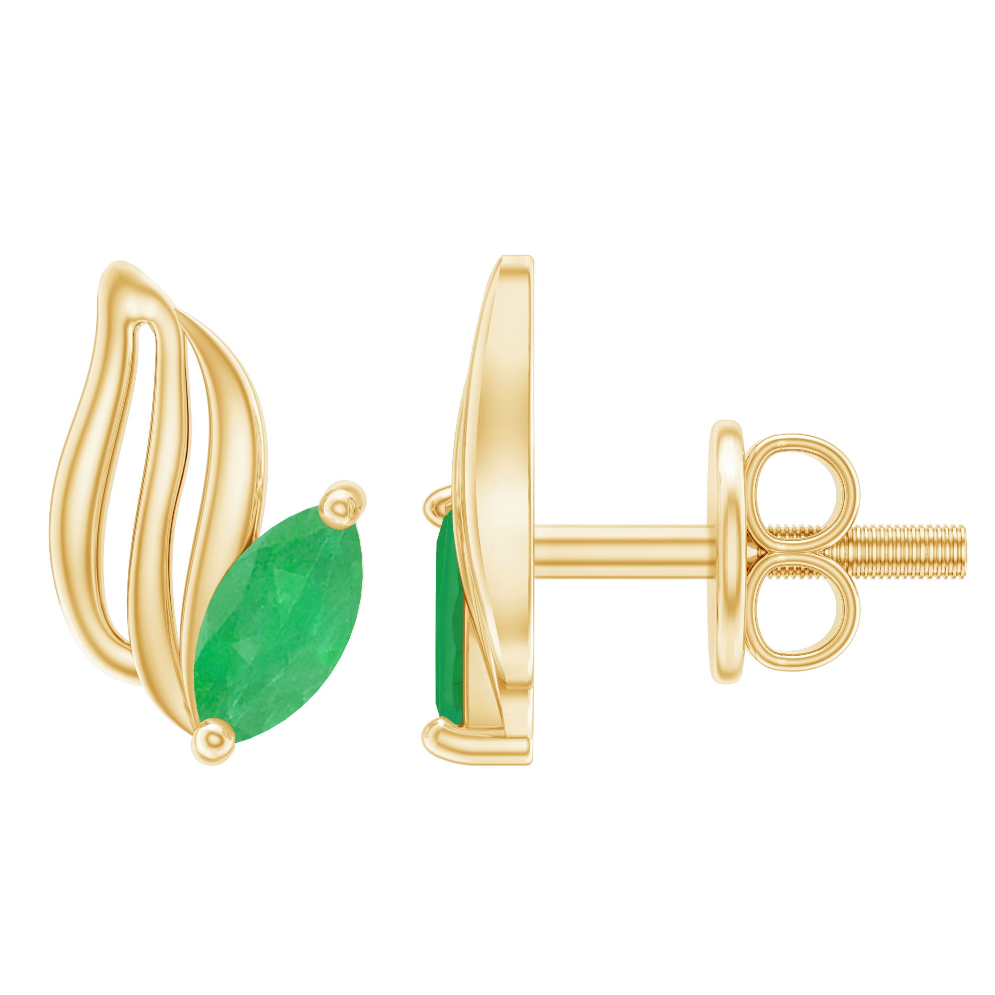 Marquise Shape Emerald Petal Stud Earrings with Screw Back