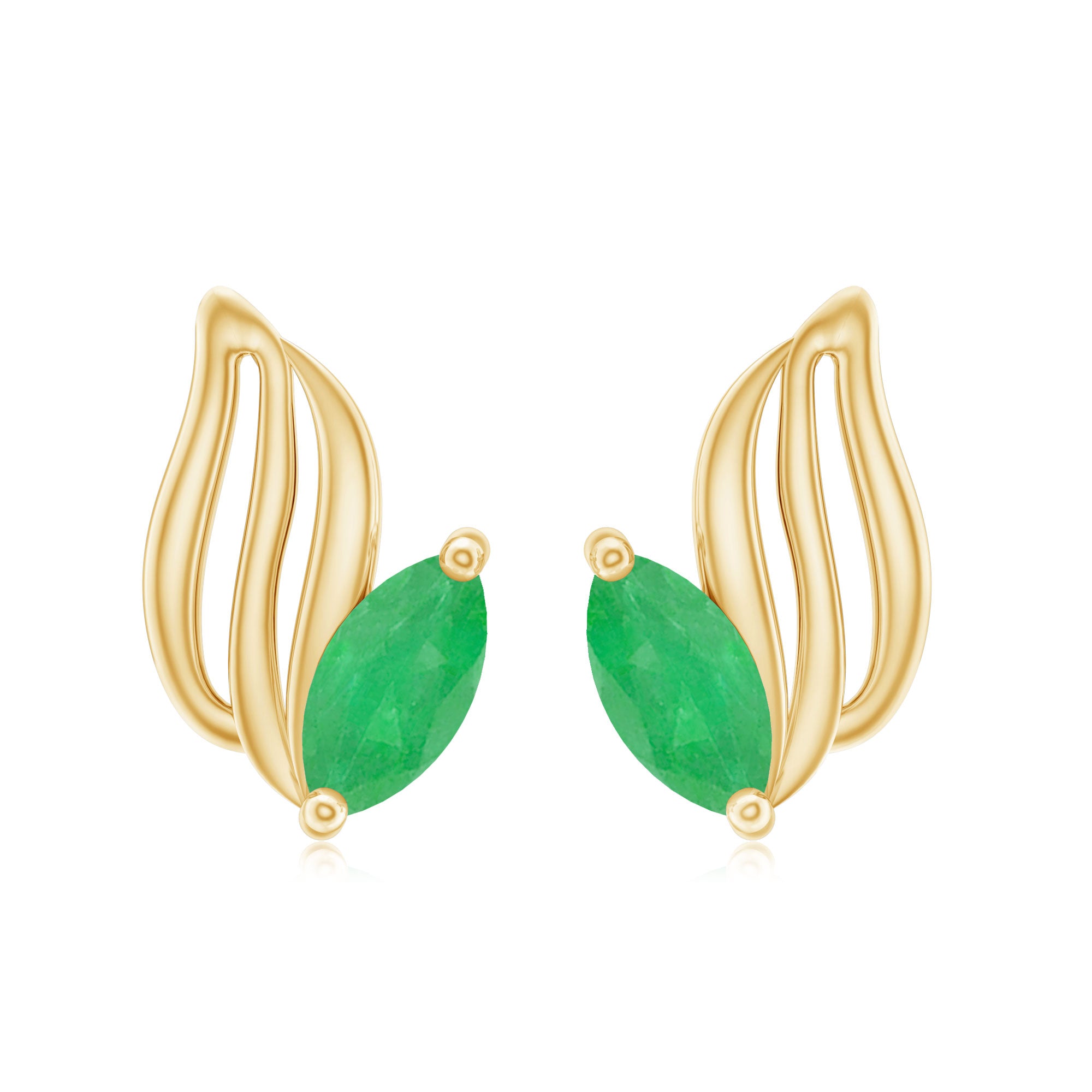 A perfect addition to your Jewelry Collection, these Petal Stud Earrings captivate with timeless charm and elegance. These Fine Earrings are adorned with a slantly placed Marquise Shape Emerald gemstone set in Prong Setting, with a Petal motif. Secured with Screw Back Closure, these Emerald Stud Earrings are also an ideal gifting option for your beloved, something she would always keep close to herself.