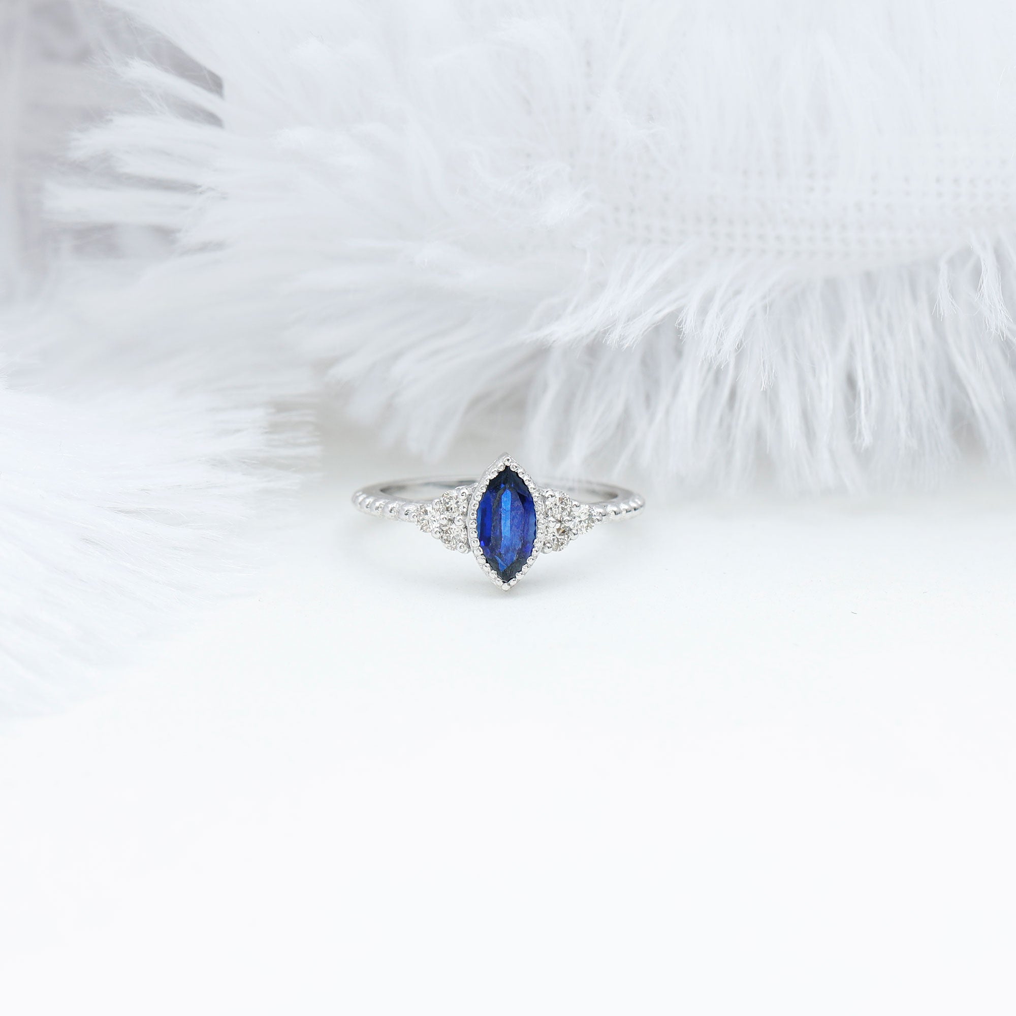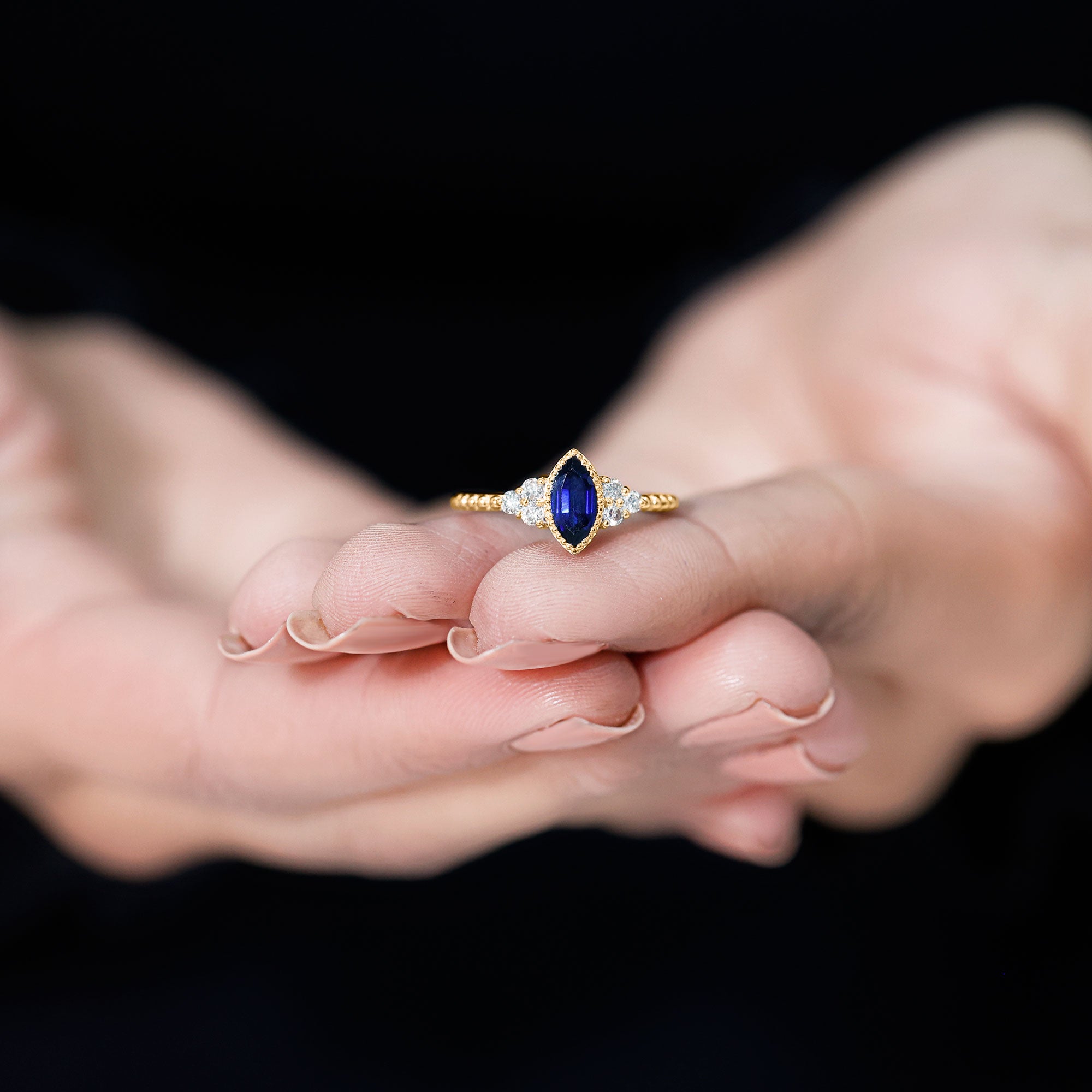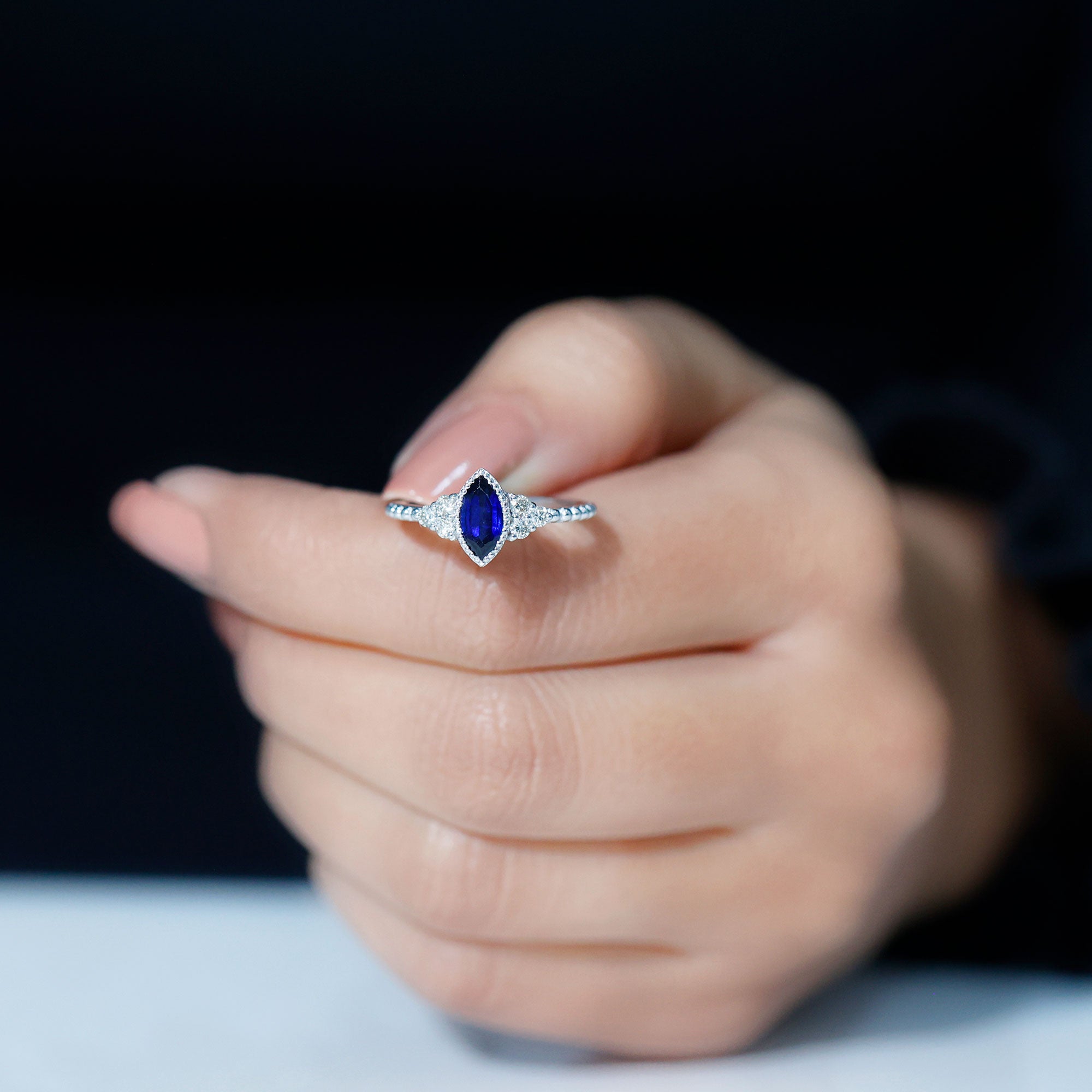 Marquise Cut Created Blue Sapphire Promise Ring With Diamond