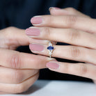 Created Blue Sapphire Minimal Engagement Ring With Diamond