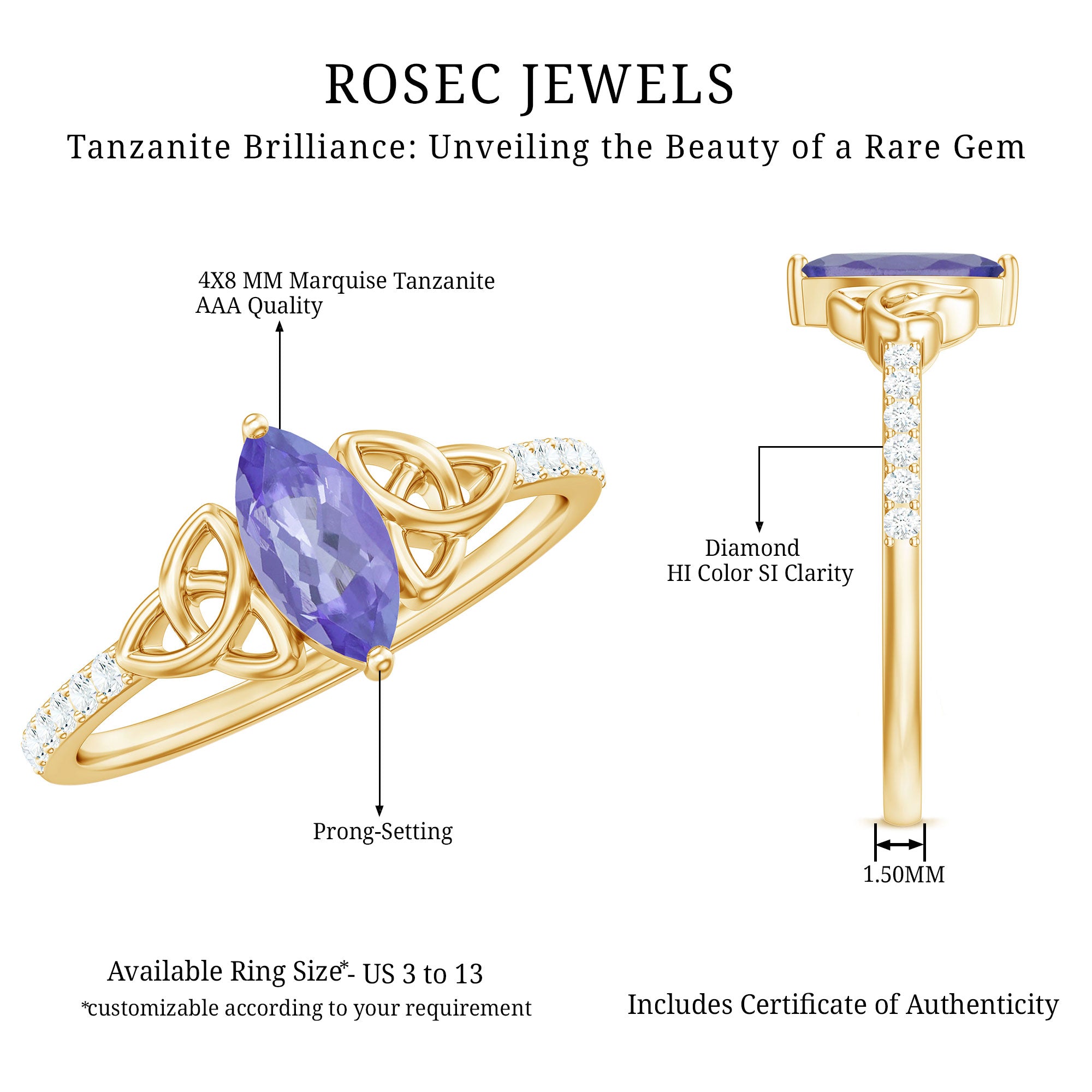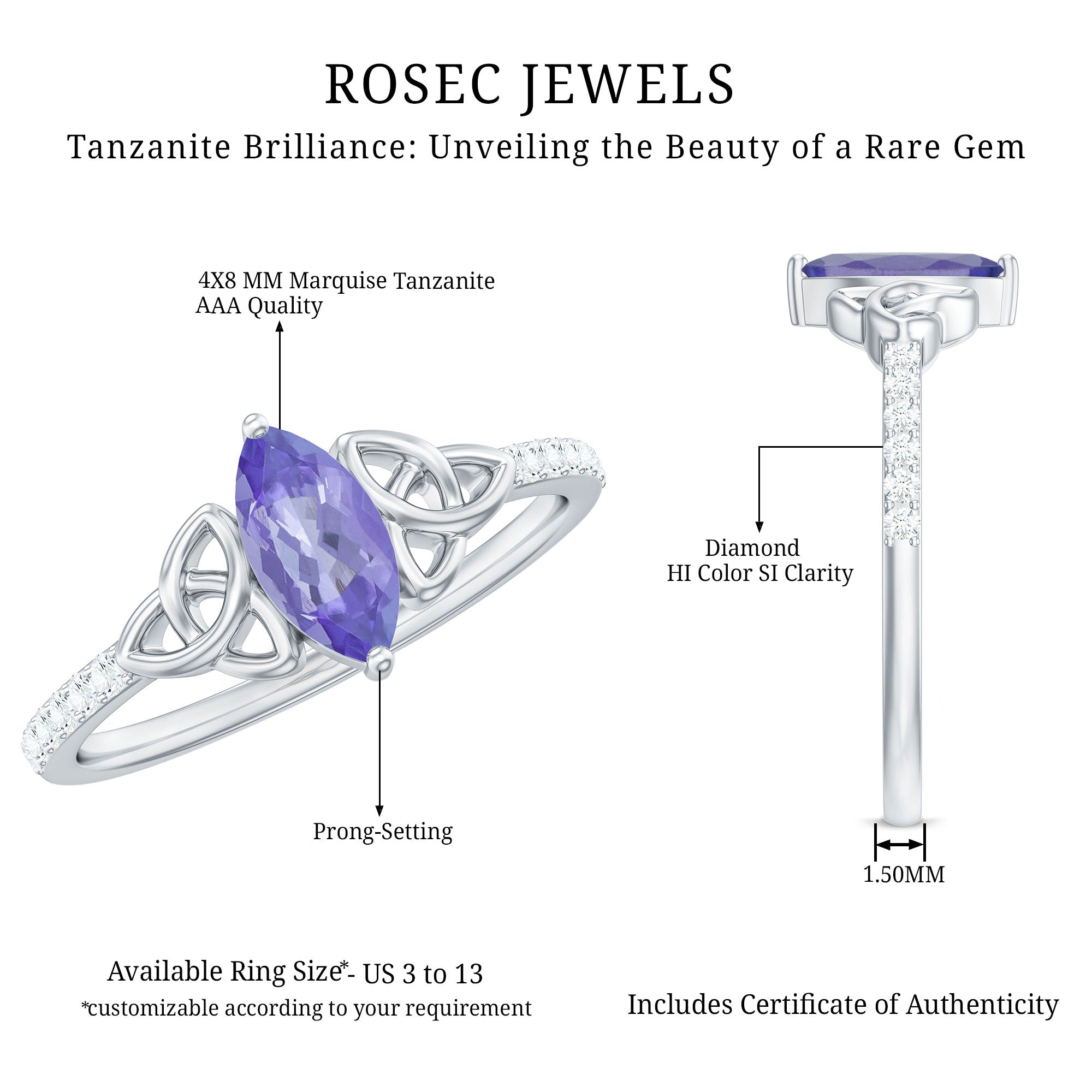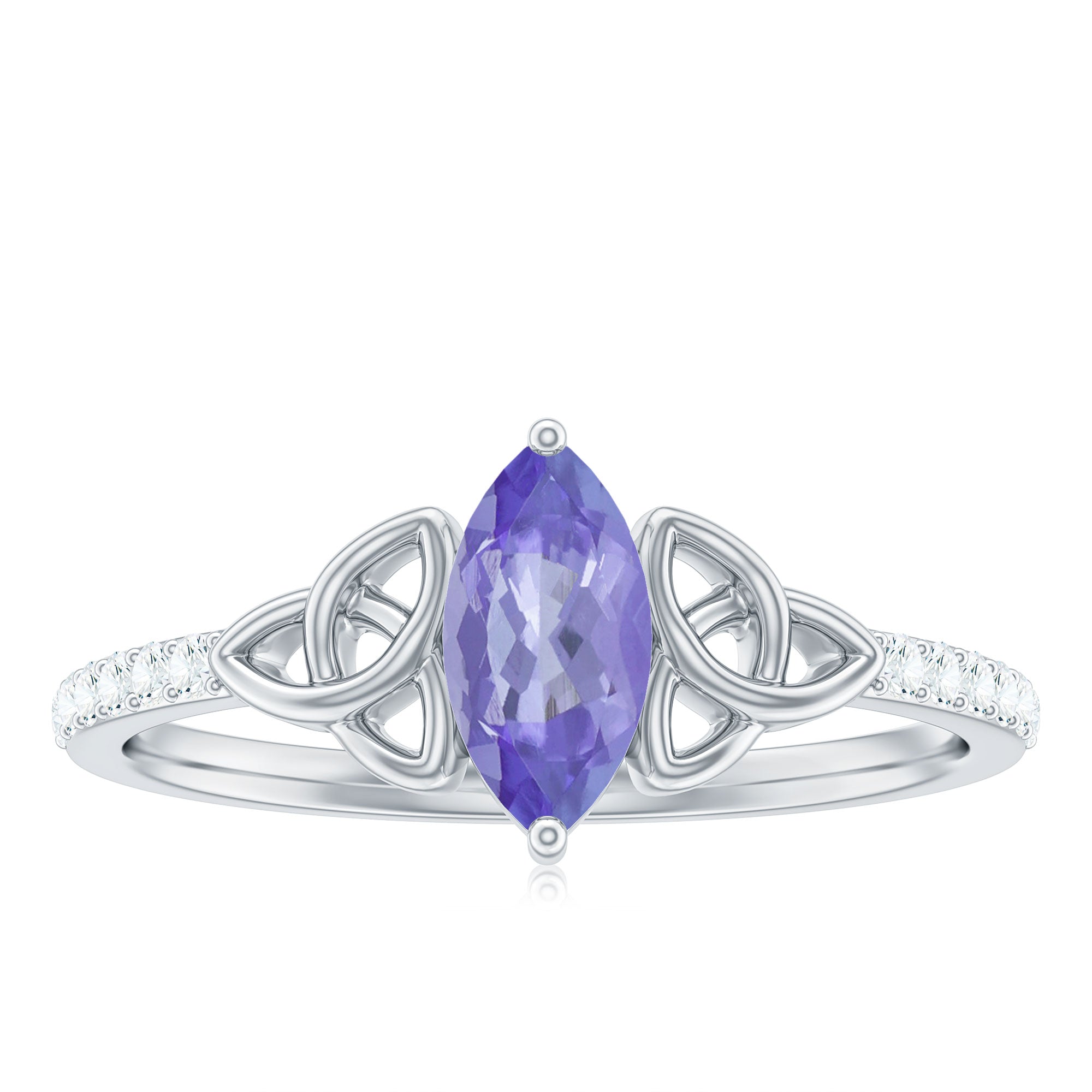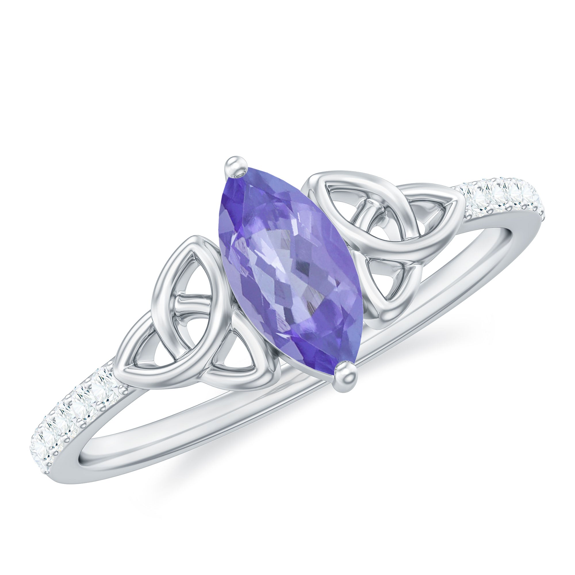Marquise Tanzanite Solitaire Celtic Ring with Diamond Side Stones