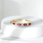 Milgrain Bezel Set Ruby Half Eternity Ring with Moissanite