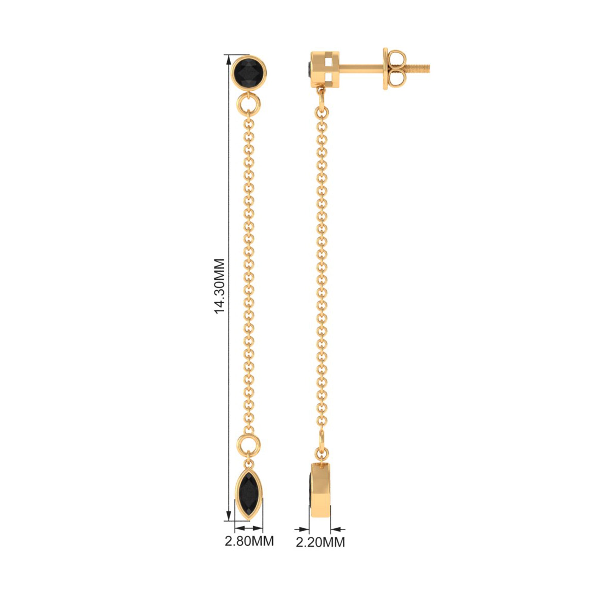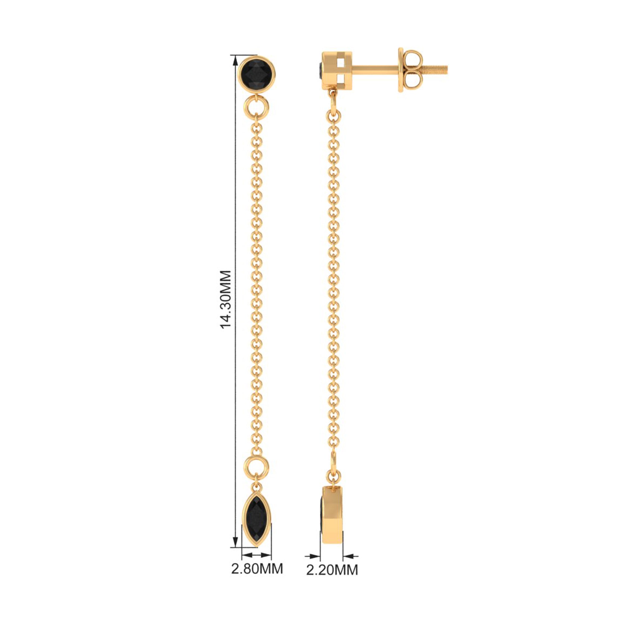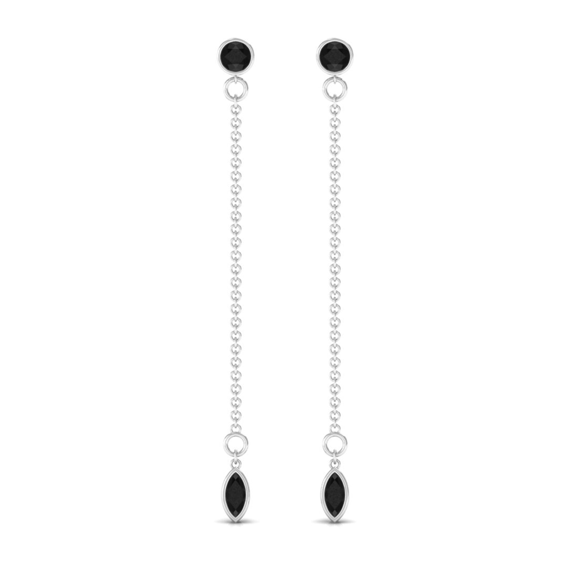 Enhance your beauty with these graceful Dangle Chain Earrings adorned with a combination of Bezel Set Marquise and Round Created Black Diamond, perfectly complementing your look. These earrings are sure to add a touch of elegance and charm to your overall appearance.