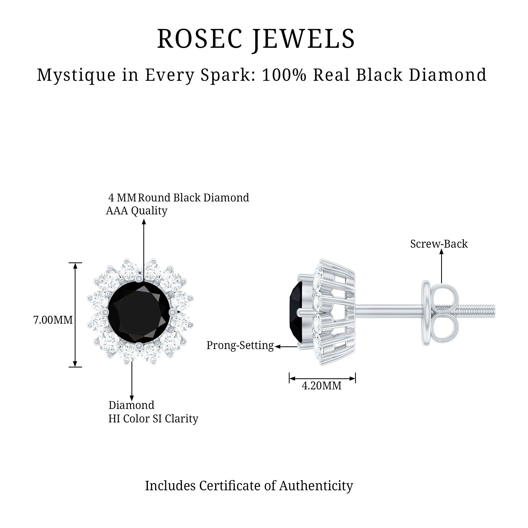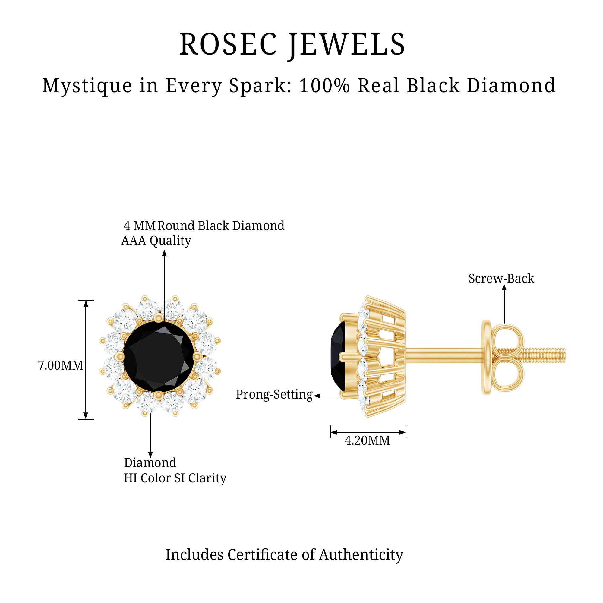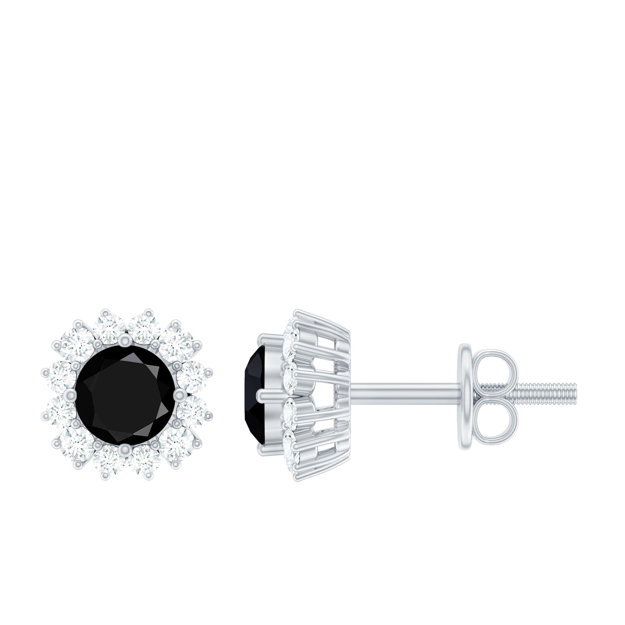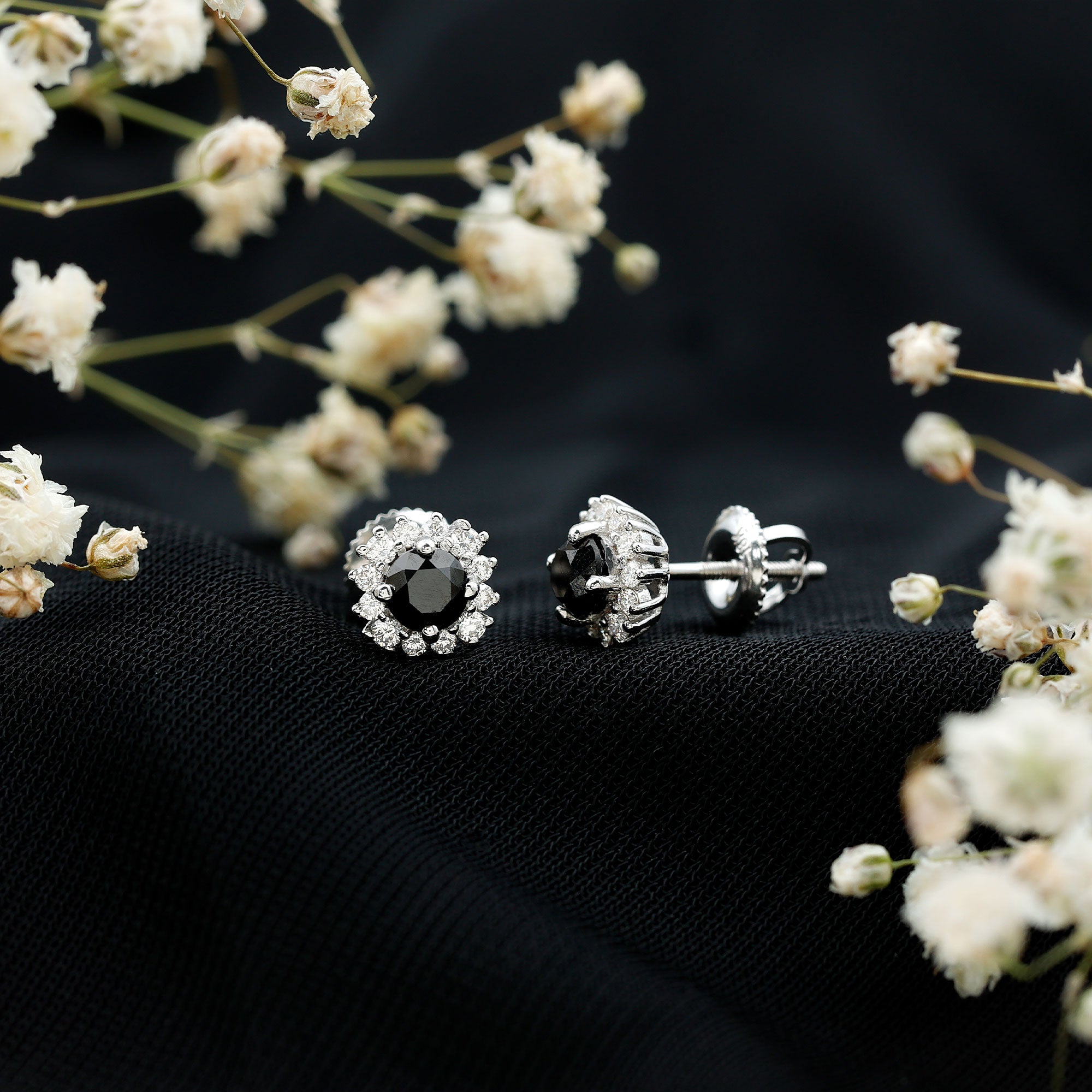 Give her a stunning surprise with these elegant Black Onyx Earrings. It features a Round Shape Black Diamond gemstone securely cradled in a prong setting. The addition of a dazzling Diamond halo on these stud earrings ensures they effortlessly catch the eye.