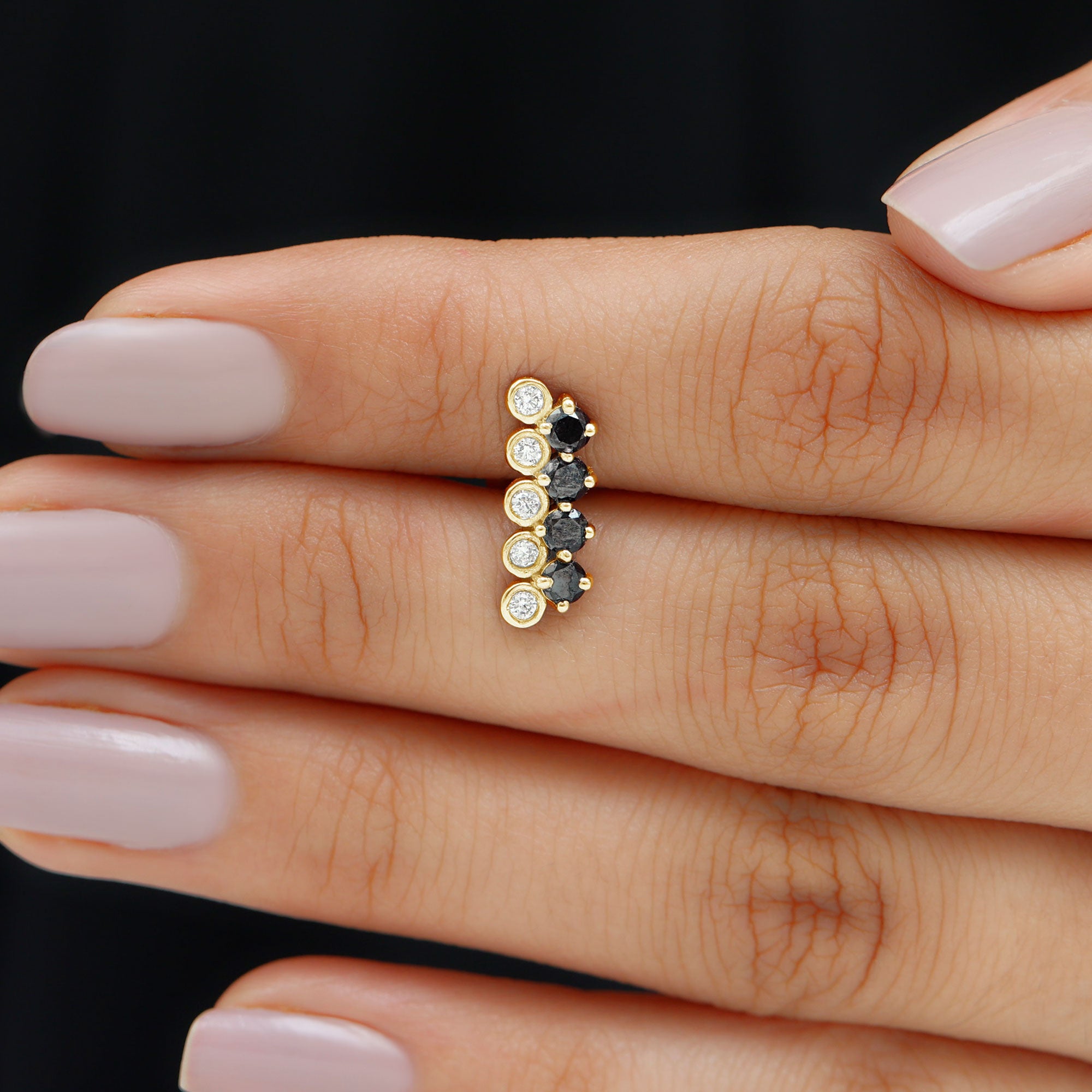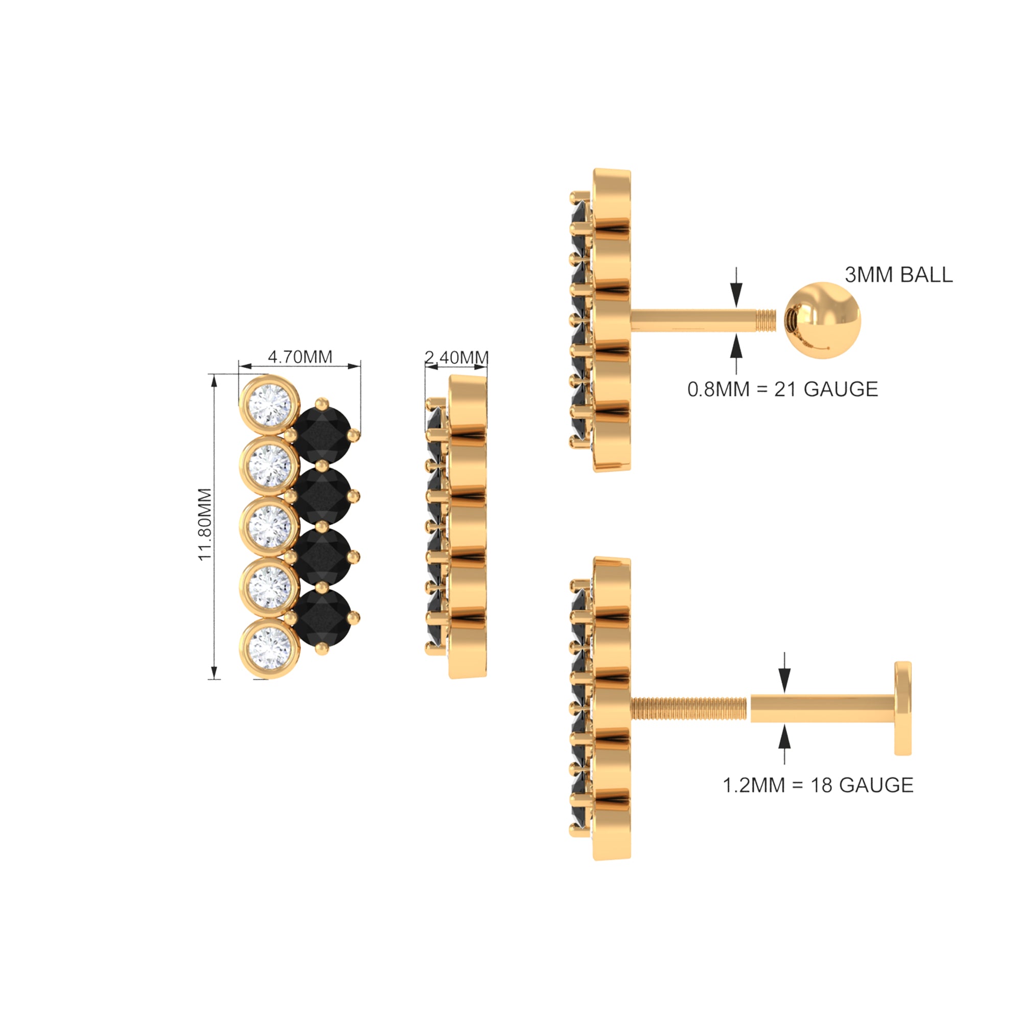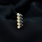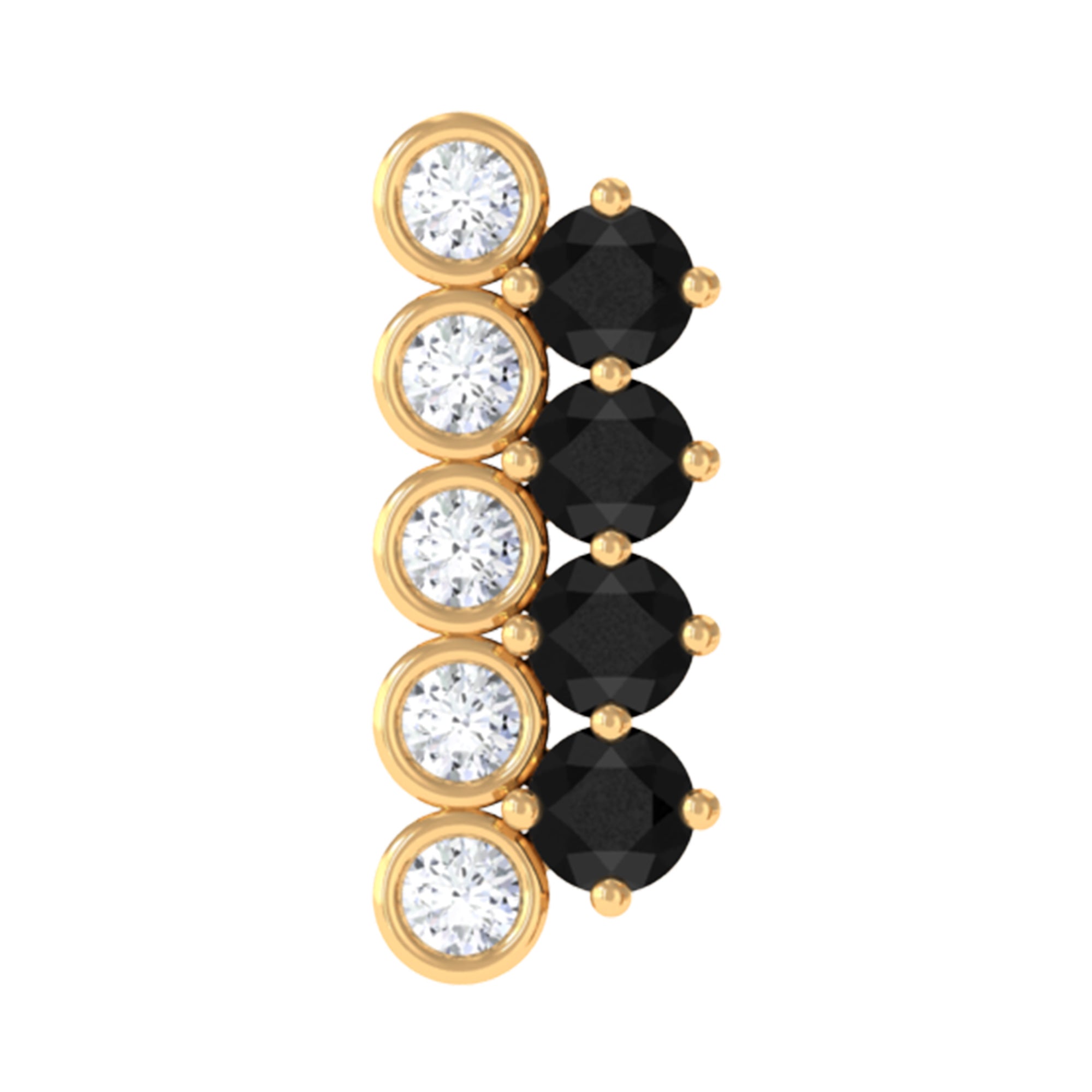 Add some shine to your appearance with this Bar Cartilage Earring featuring Round Cut Black Onyx and Moissanite in Prong and Bezel Setting respectively. Crafted in Gold Metal and can be worn on Cartilage, Helix, and Upper Lobe Piercings. The Flat Back Closure ensures a secure fit. Enhance your overall look with this elegant Piercing Jewelry.