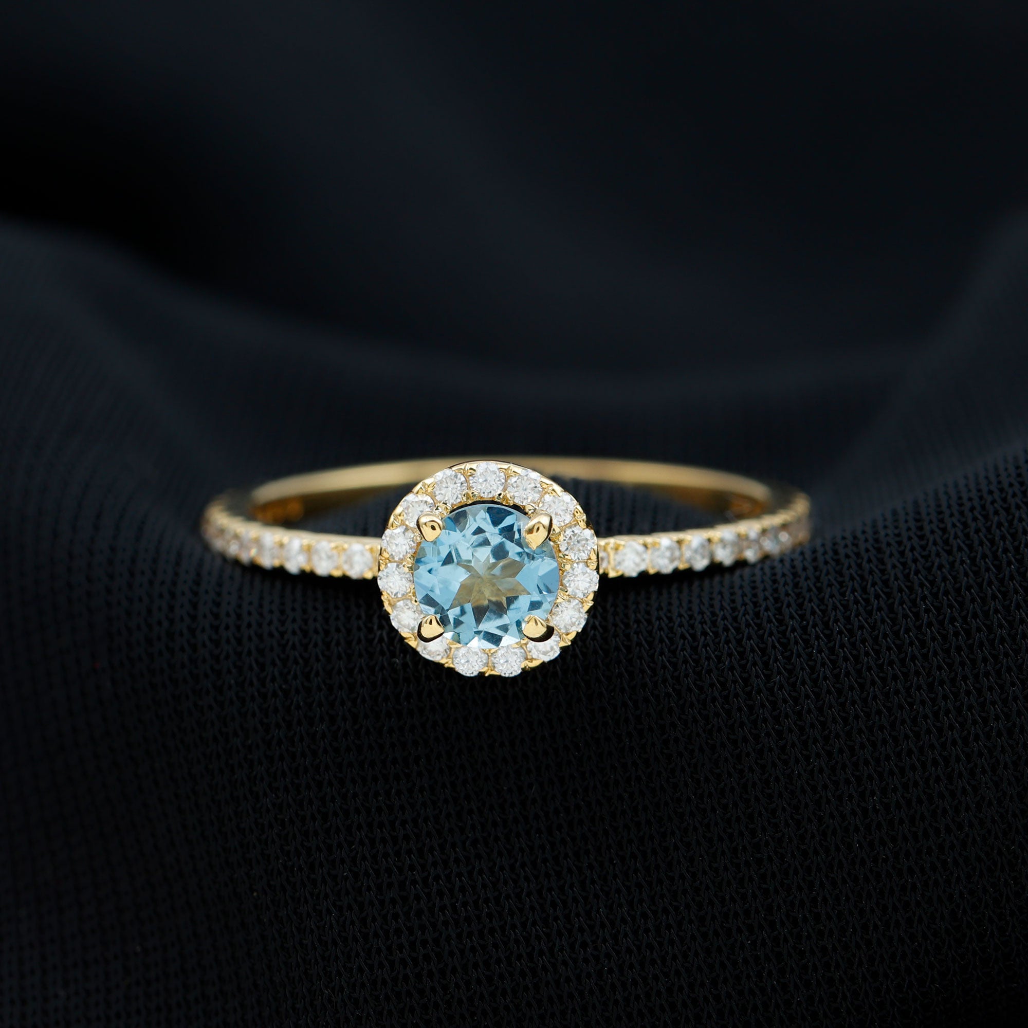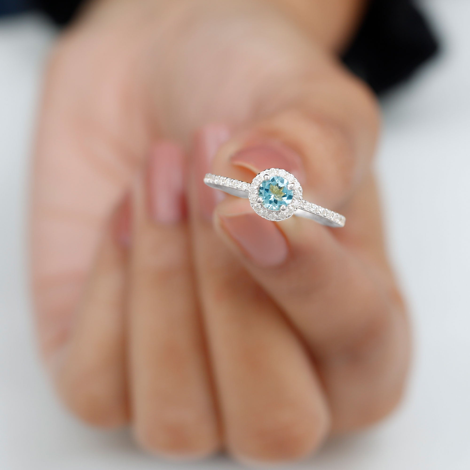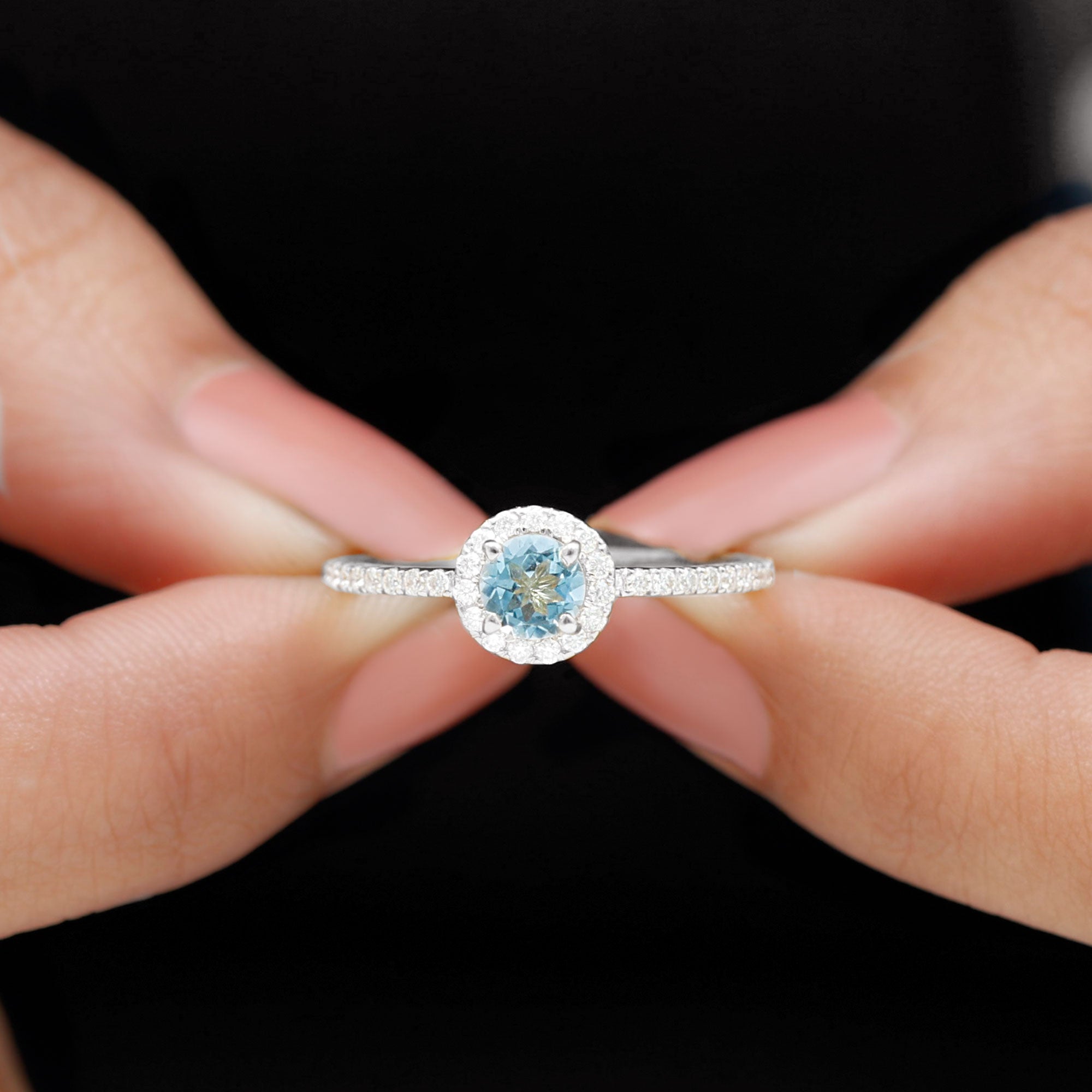 Be prepared to get lot of compliments when you will flaunt this Blue Aquamarine Solitaire Ring with Diamond Accent. This Minimal Aquamarine Engagement Ring is composed of Solid Gold which she will love to flaunt and admire forever.