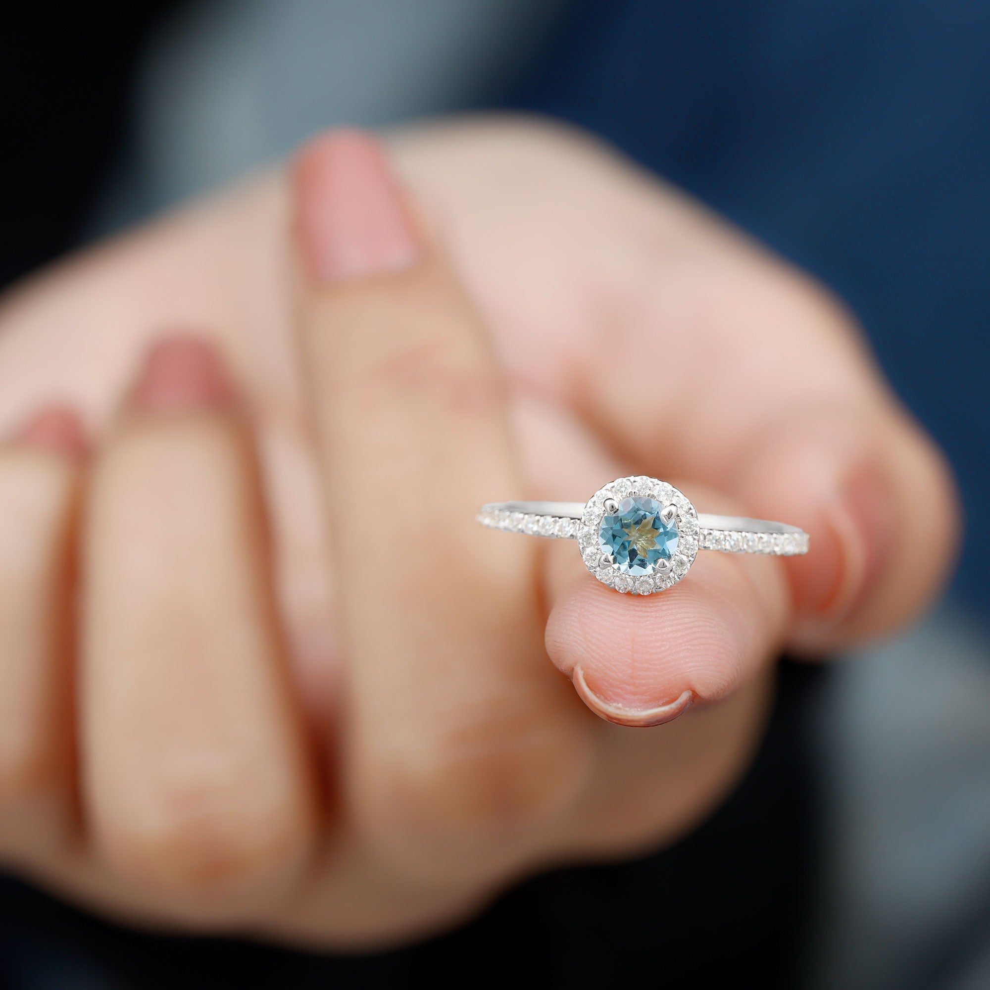 Minimal Blue Aquamarine Ring with Diamond Accent