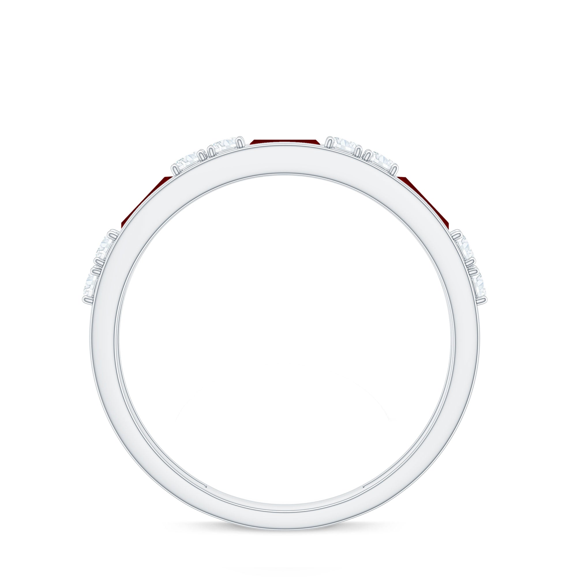 Minimal Created Ruby and Diamond Half Eternity Band Ring