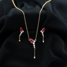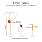 Minimal Created Ruby Dangle Necklace and Earrings Set in Gold with Moissanite