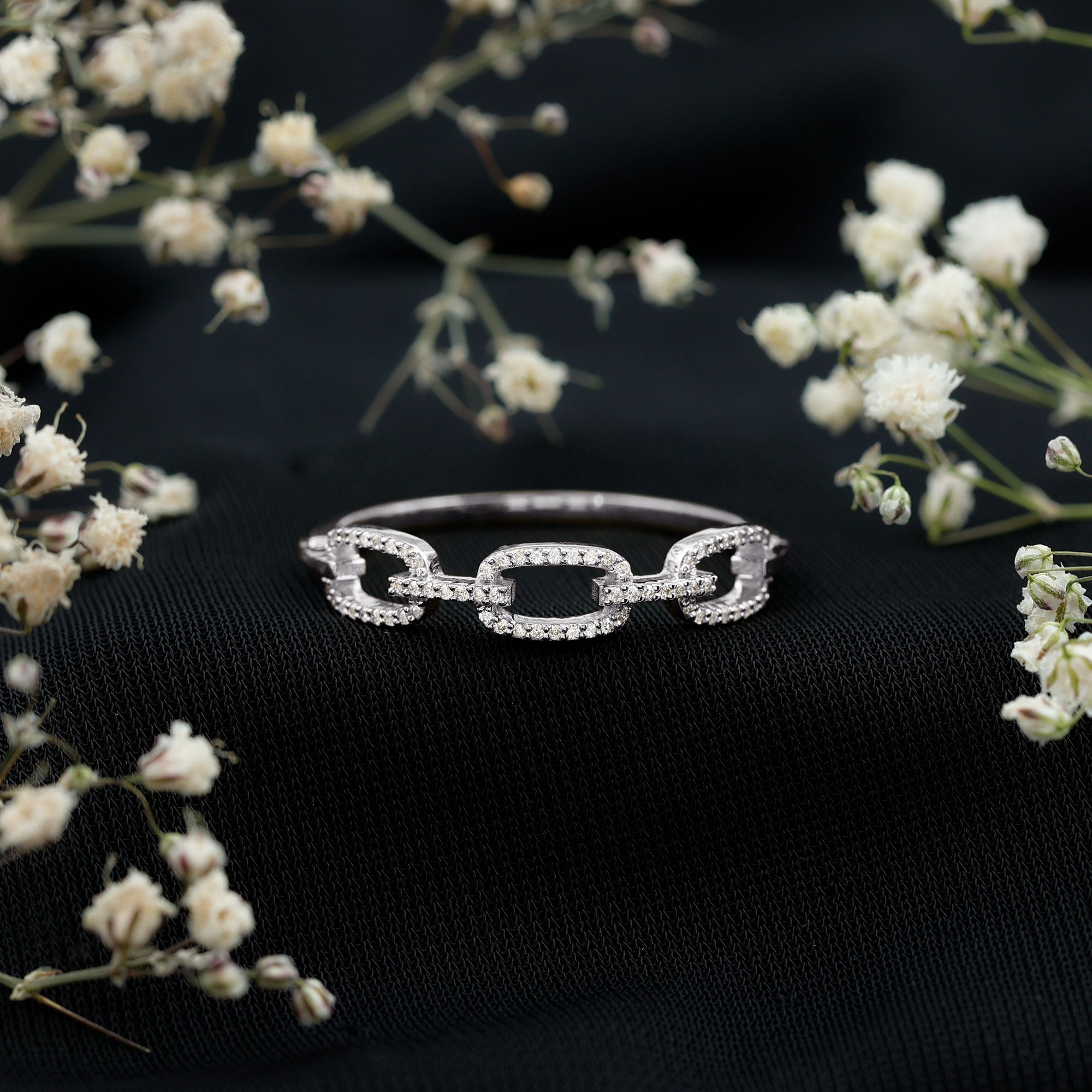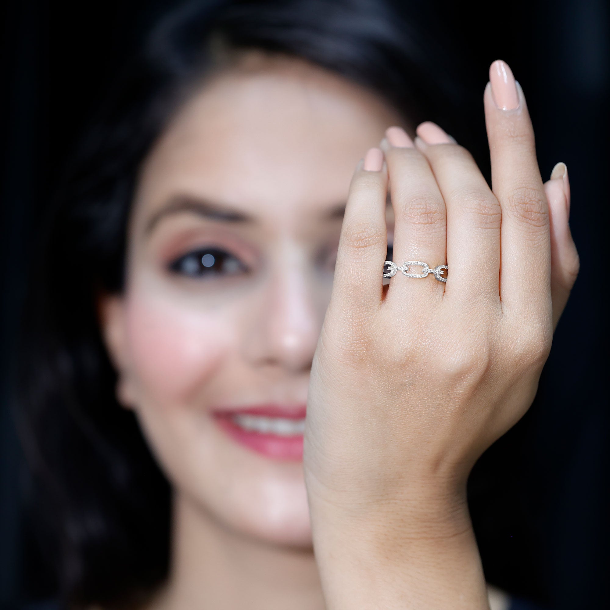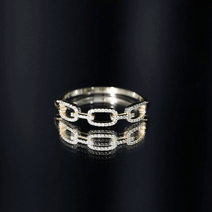 This minimal cubic zirconia chain link ring is designed for those who appreciate modern styling with a refined finish. The chain-inspired structure introduces a distinctive look while maintaining a clean and wearable aesthetic.