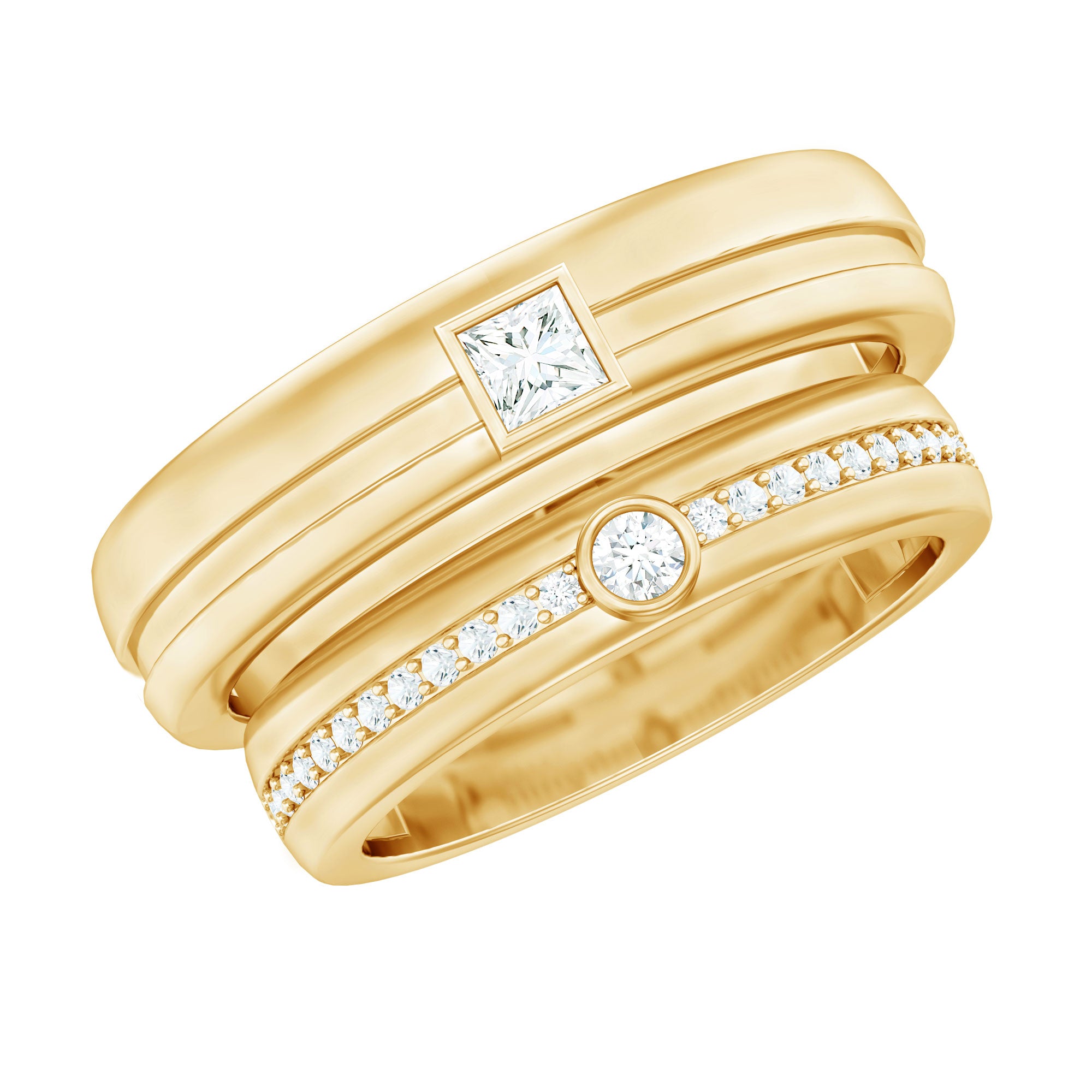 Minimal Diamond Couple Band Ring Set in Bezel Setting