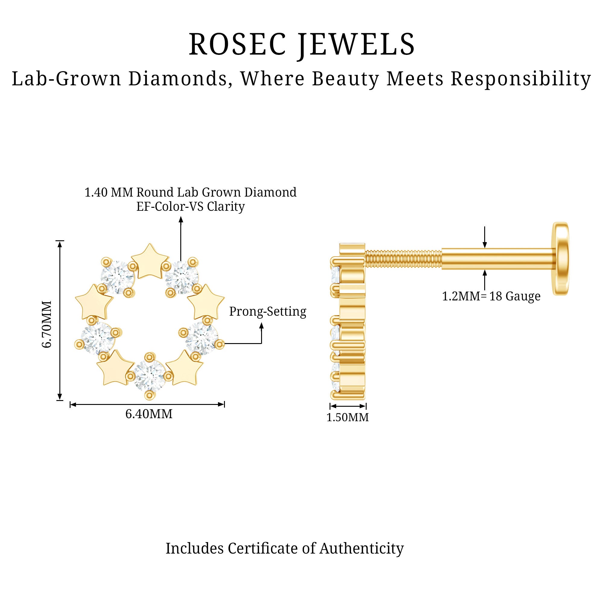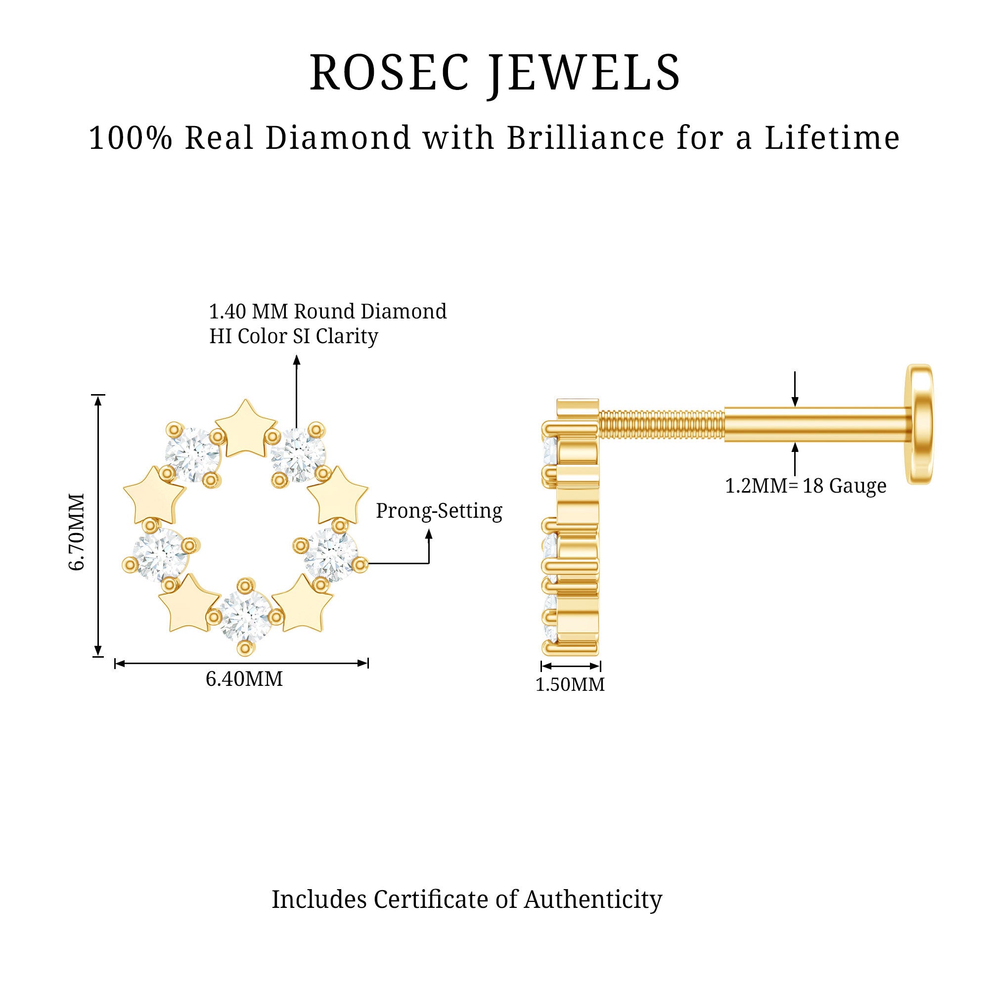 Check out the Diamond Open Circle Earring – a showstopper with Round Shape Diamonds in a dazzling Prong Setting, making it an absolute eye-catcher in the world of diamond bling.This Minimalist Earring isnt just for one spot – rock it on your Helix, Cartilage, Conch, Tragus, or Upper Lobe Piercing. The Flat Back Closure stays right where it belongs.Meet the Eternity Earring – a total game-changer that effortlessly amps up your casual or party vibe. Its a style statement that takes you from your morning coffee run to a late-night bite, keeping you on point with the geometric trend.