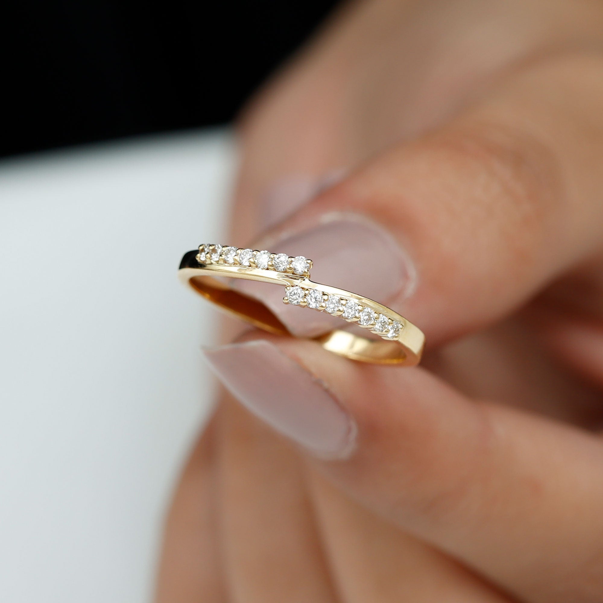 Make a Statement with this Minimal Stackable Ring featuring round shape Diamonds set in Prong Setting. This band ring can be stacked with one of your favorite ring.