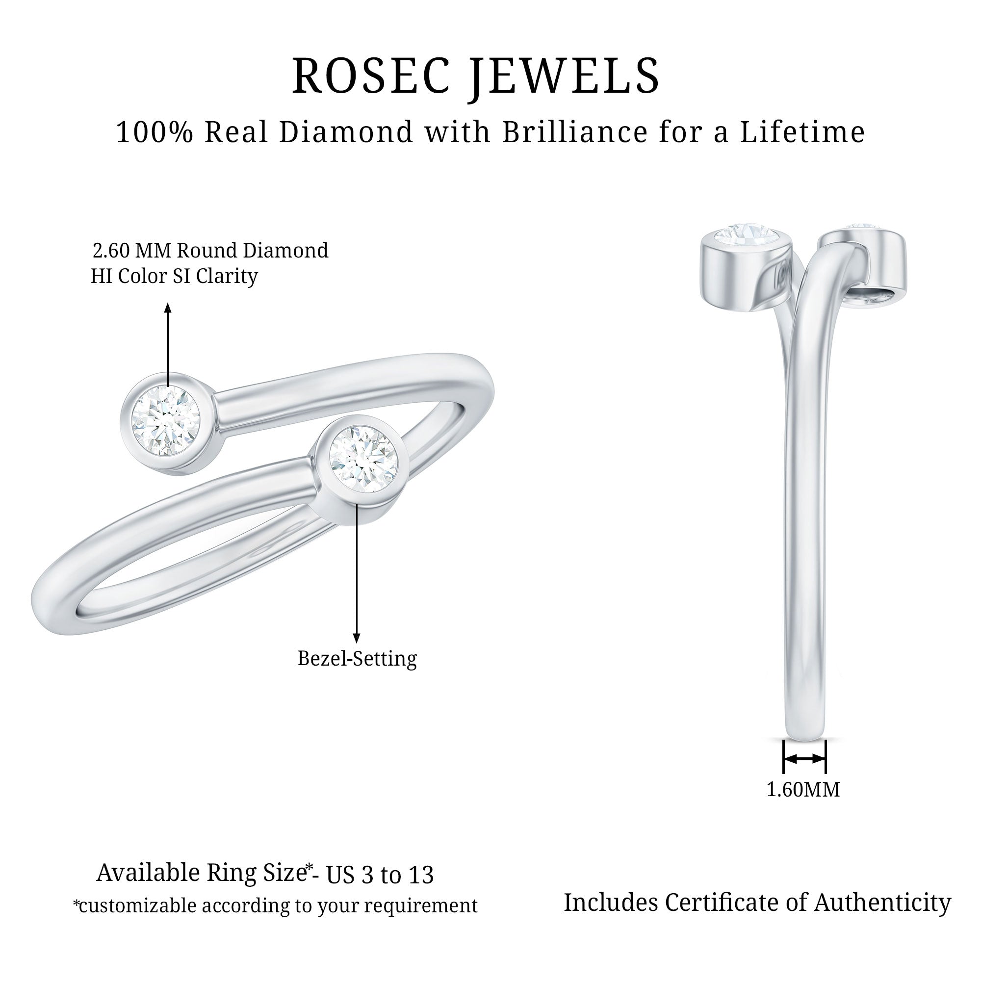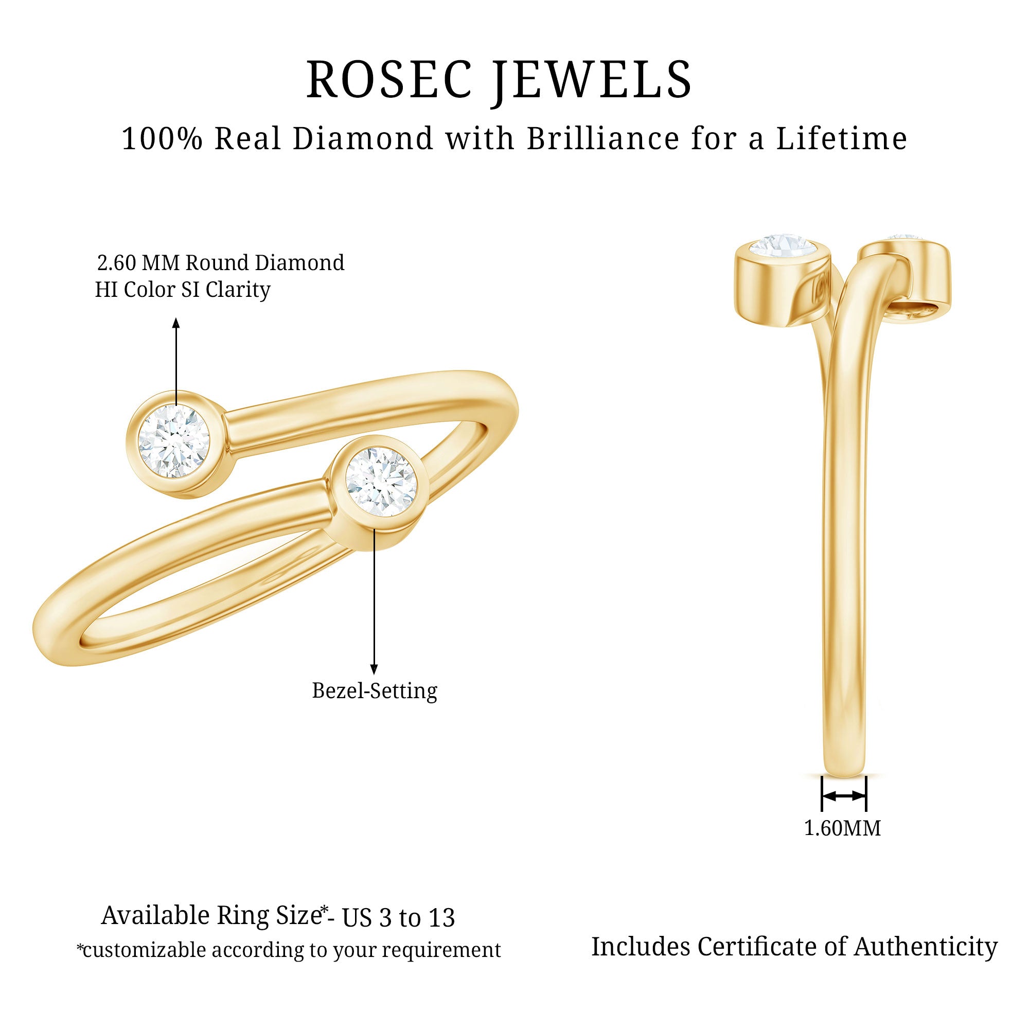 Minimal Diamond Two Stone Wrap Ring in Bezel Setting