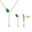Minimal Emerald Dangle Necklace and Earrings Set with Diamond