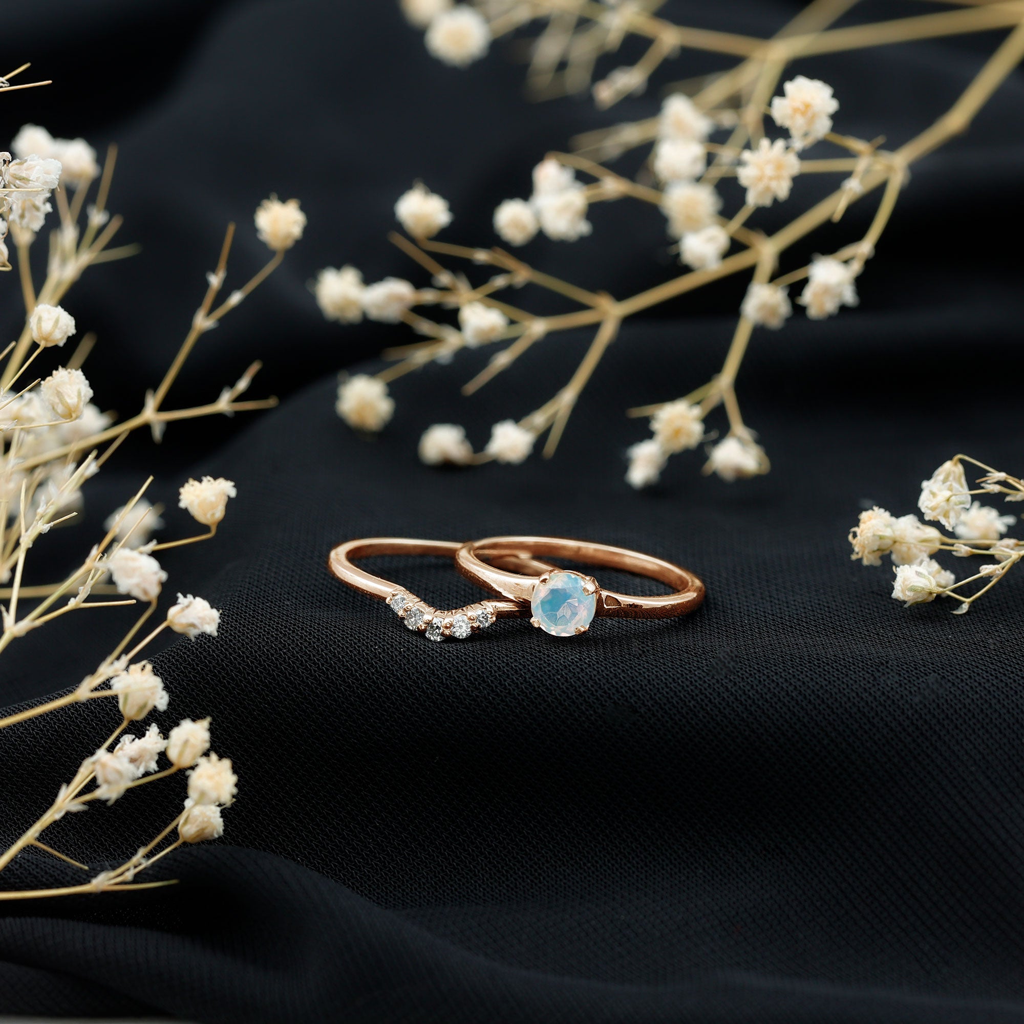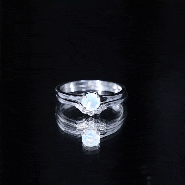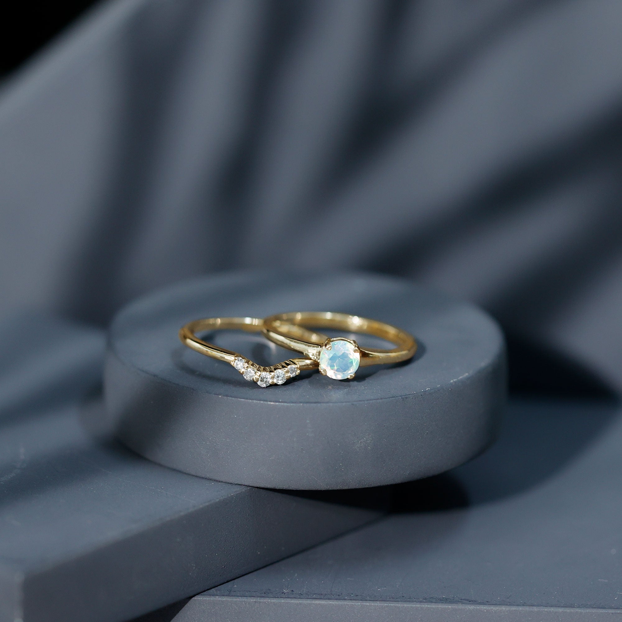 Minimal Ethiopian Opal Diamond Promise Ring Set