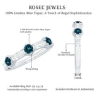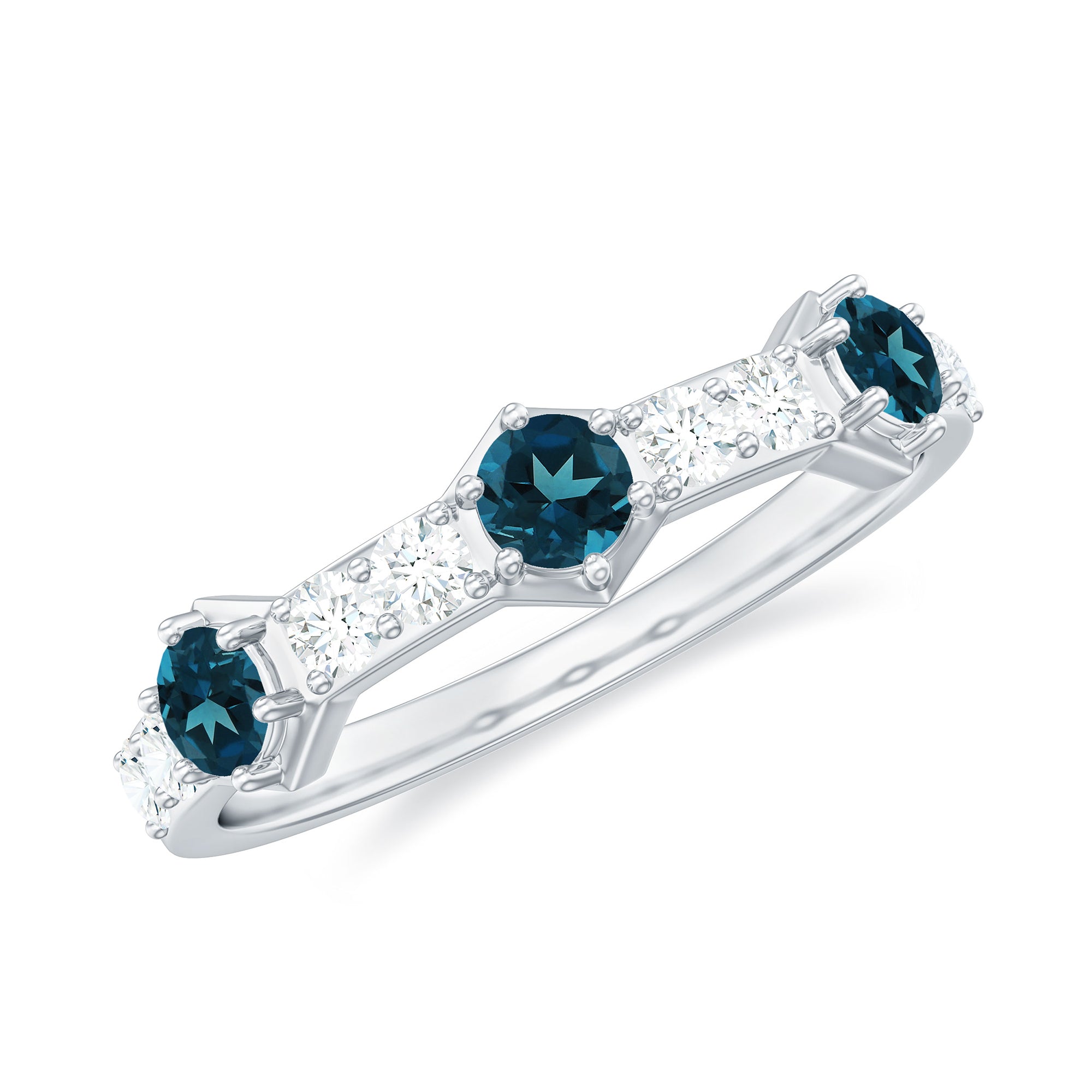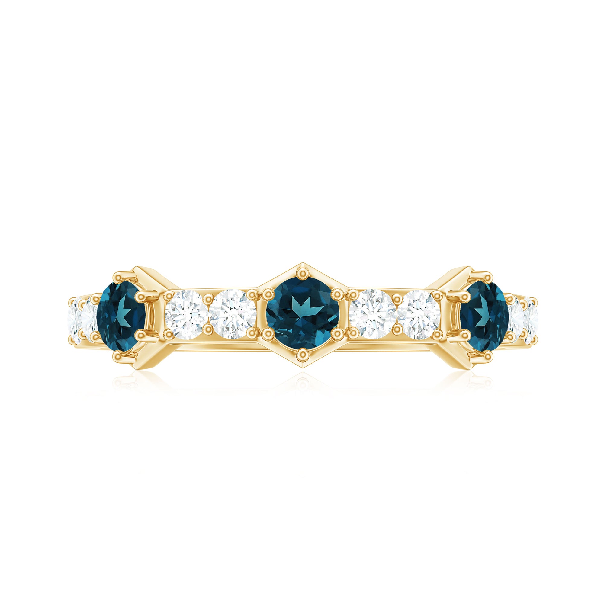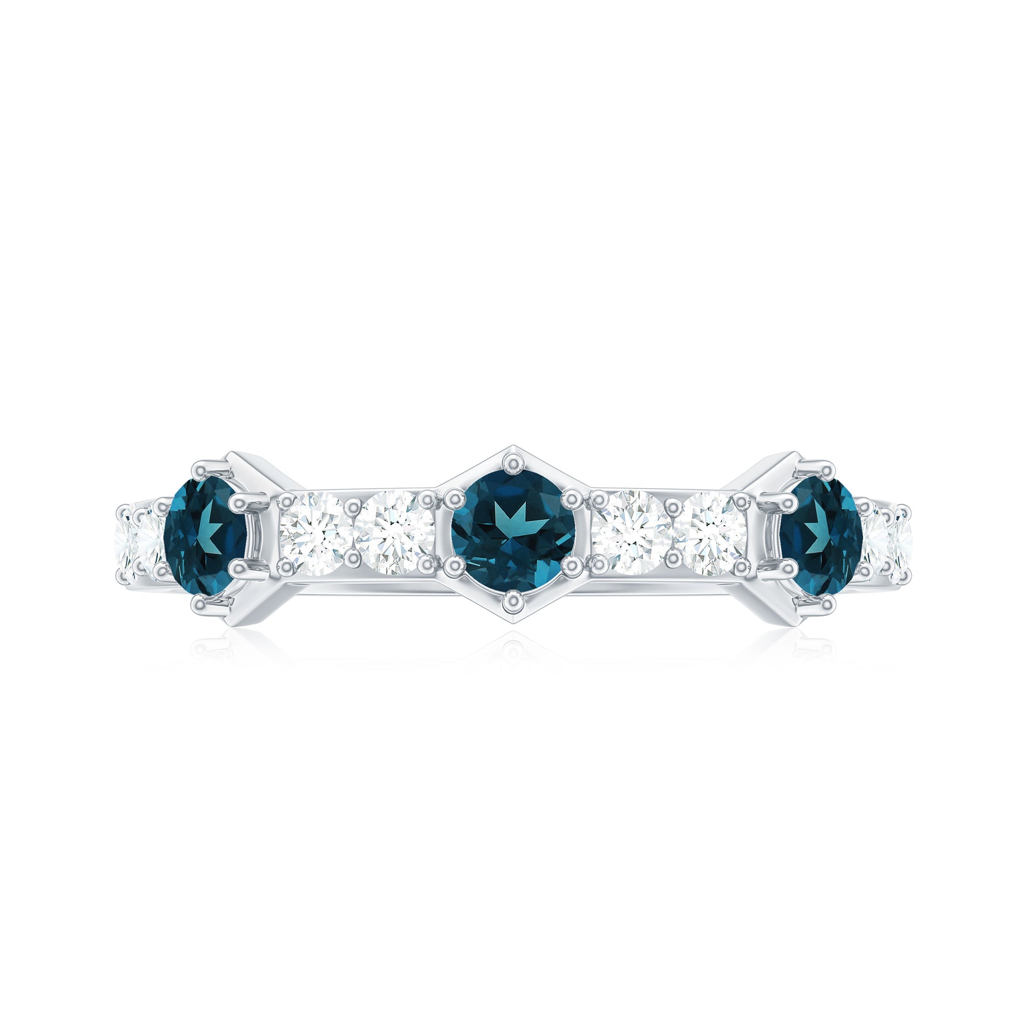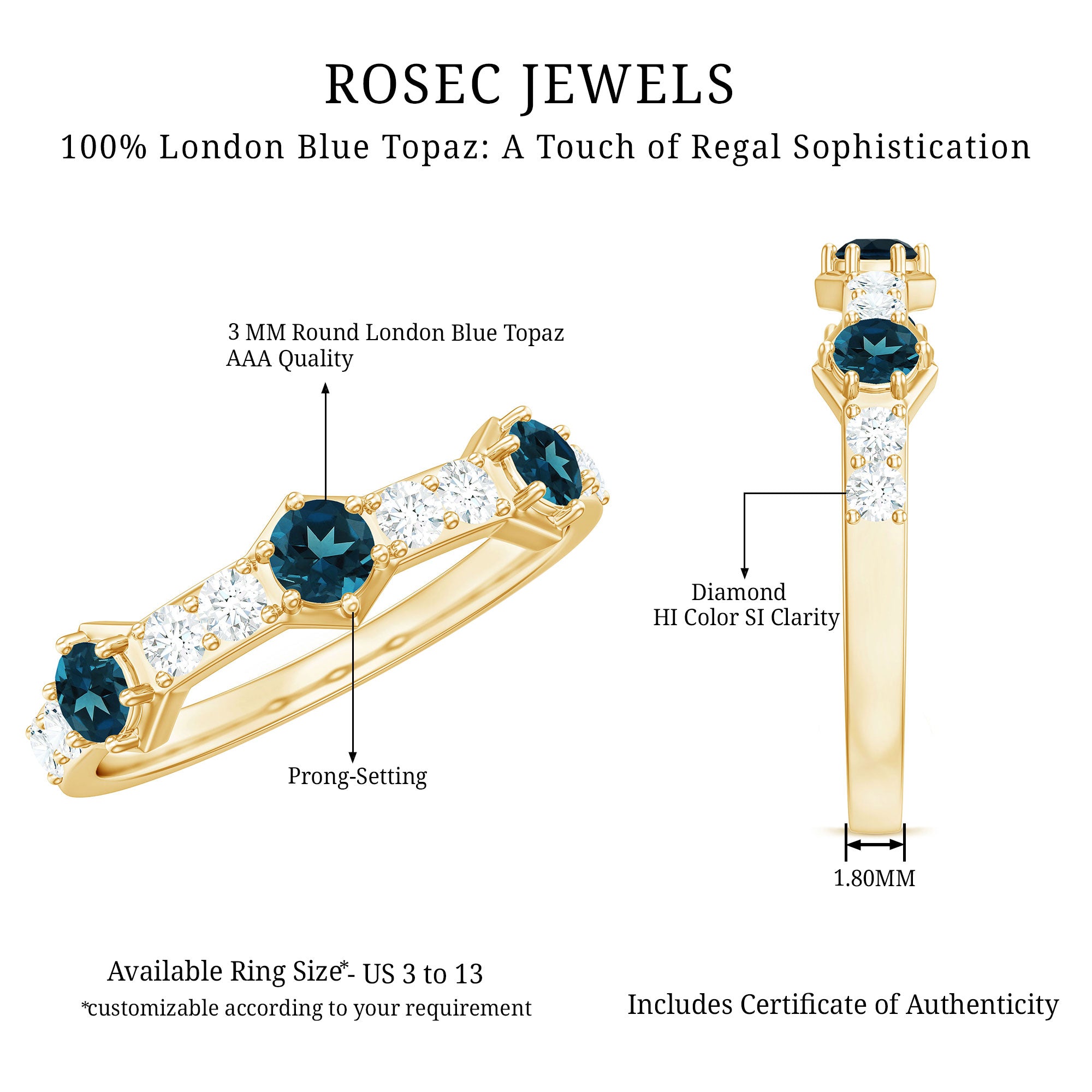 Enhance your daily style with a touch of elegance through this exquisitely crafted London Blue Topaz Eternity Ring. It is designed to be both understated and striking, showcasing a graceful arrangement of round shape london blue topaz and round diamond stones in an alternating fashion. Each stone is meticulously positioned in a secure prong setting, providing the Eternity Stackable Ring a sleek and polished appearance. The striking contrast between the bold blue topaz and the shimmering diamond imparts a timeless and distinctive quality. This Real London Blue Topaz Ring is an excellent option for stacking or wearing on its own. It offers a comfortable fit on the finger and complements both casual and formal attire. Whether you are going to work or attending a special event, this Half Eternity Ring contributes just the right amount of charm. Additionally, it serves as a thoughtful gift, particularly for individuals born in december month. Whether you are purchasing for yourself or seeking a meaningful present, this Semi Eternity Ring is a beautiful way to honor style, strength, and significant moments. Crafted with care and meticulous attention to detail by Rosec Jewels, it is a piece to cherish every day.
