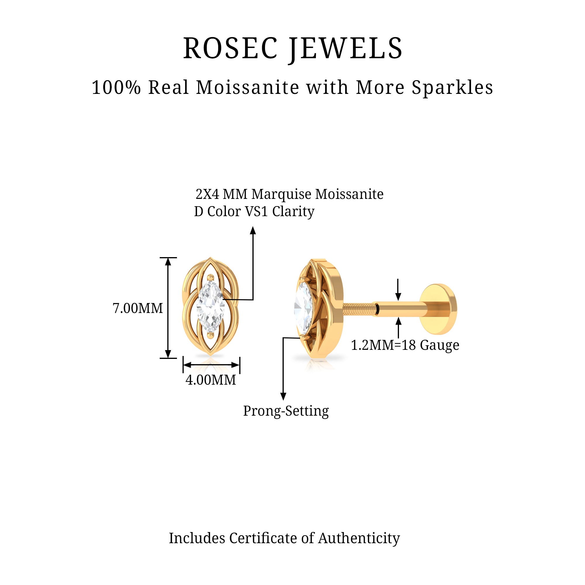 Minimal Marquise Cut Moissanite Gold Cartilage Earring