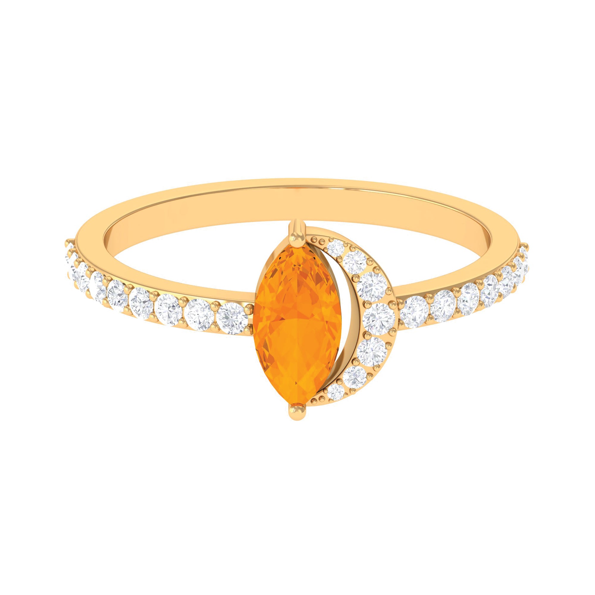 Youll make the night younger than ever with this lovely Marquise Engagement Ring. The engagement ring is adorned with a Marquise Cut Fire Opal as a solitaire set in a prong setting with a Round Diamond Accent. This Fire Opal and Diamond Ring is crafted using gold metal.