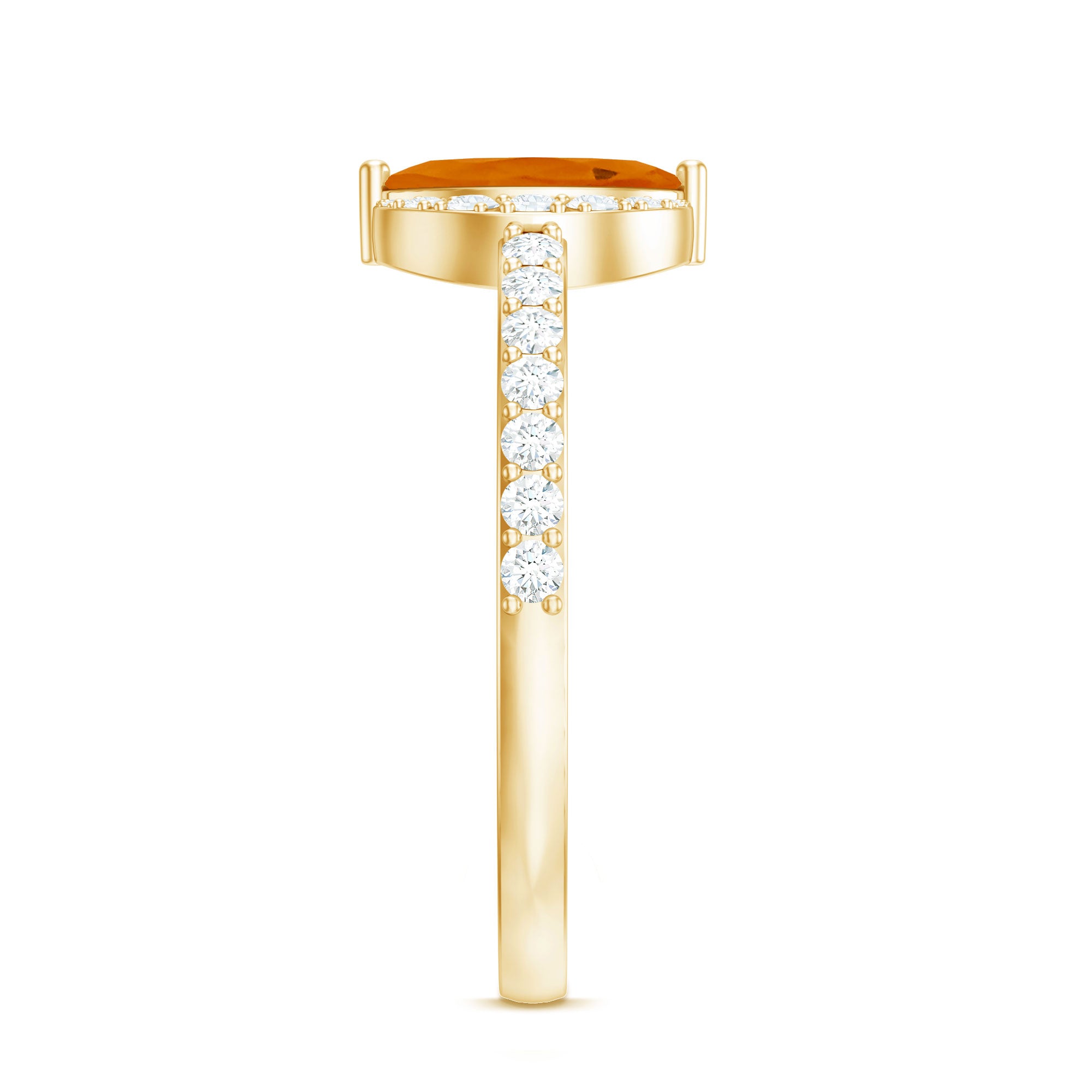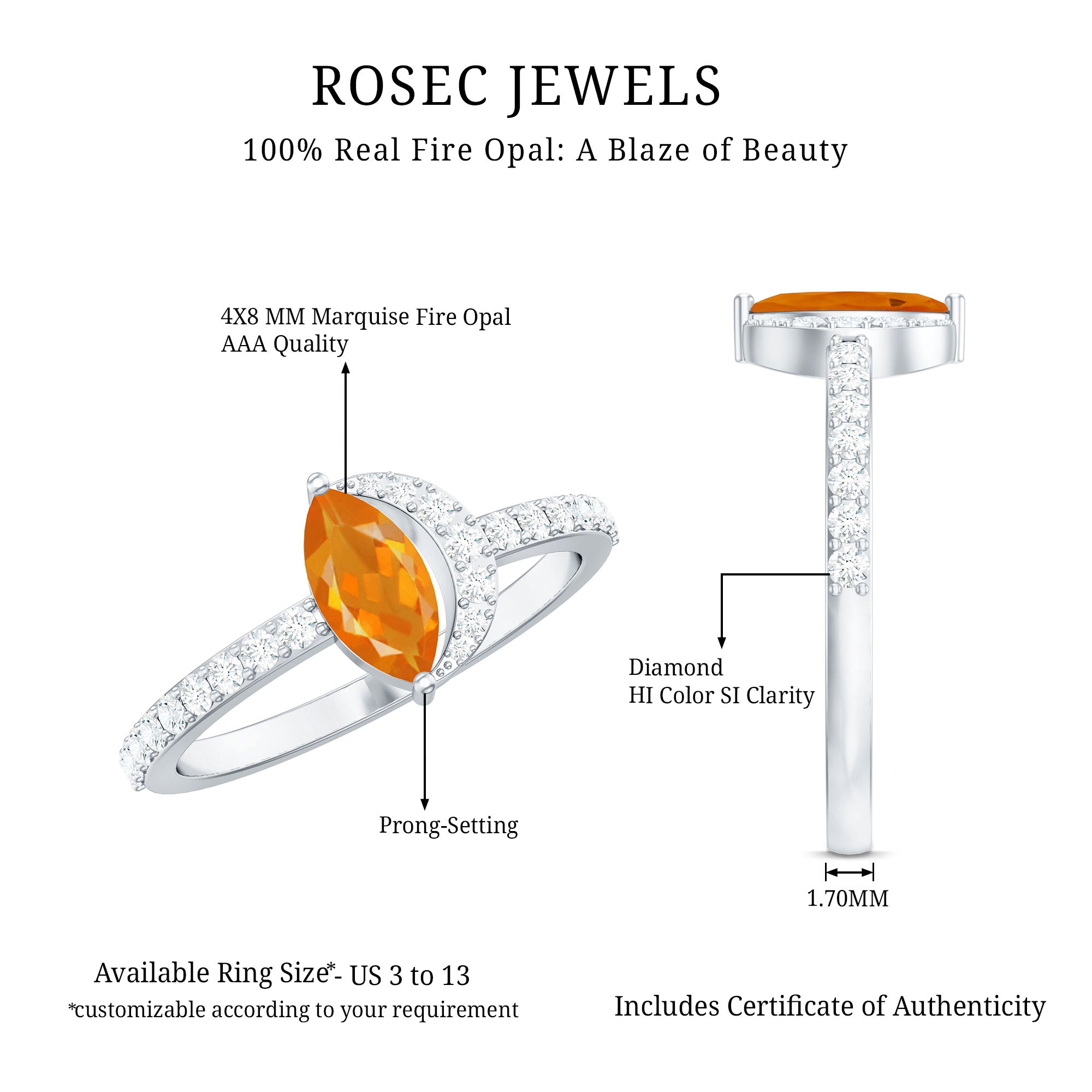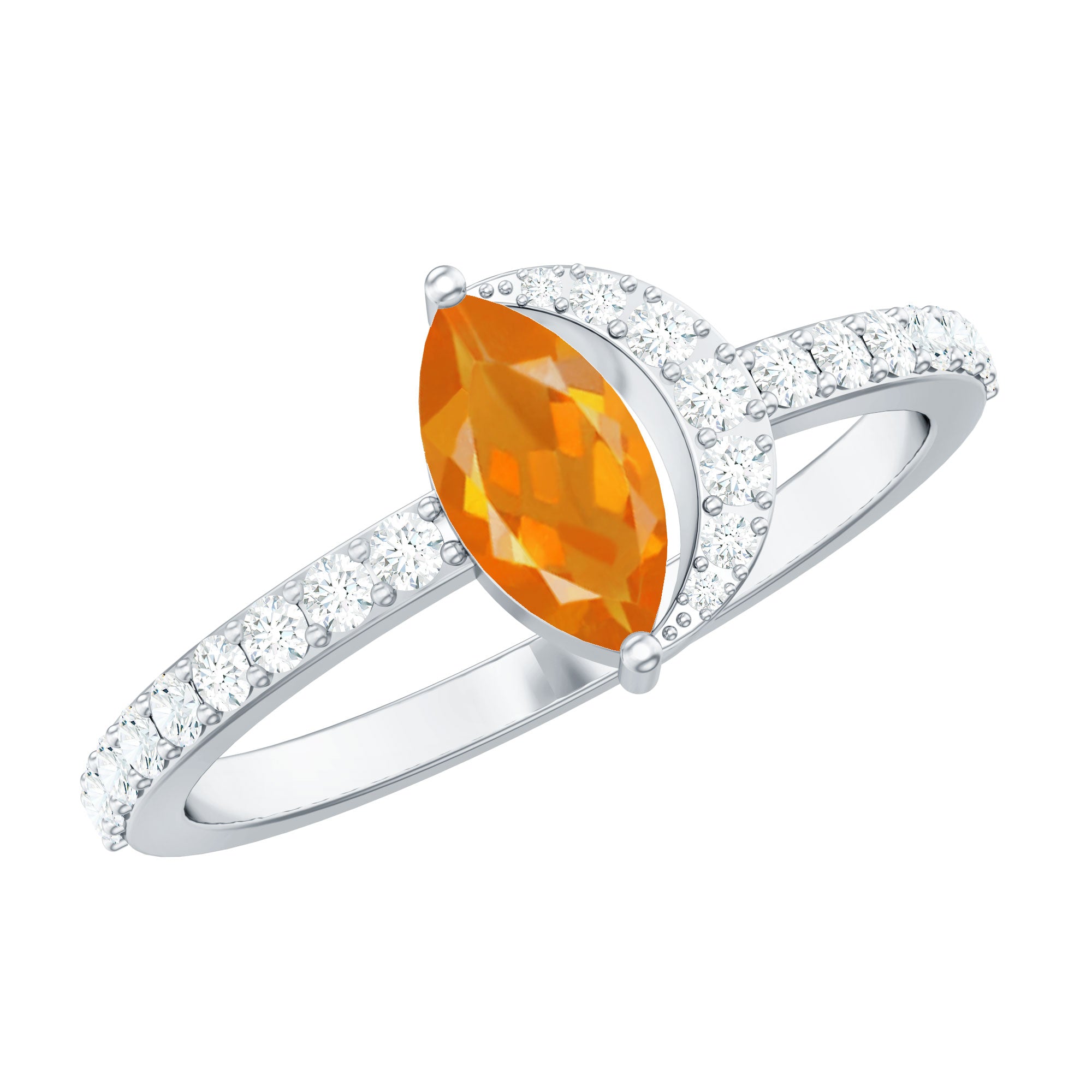 Youll make the night younger than ever with this lovely Marquise Engagement Ring. The engagement ring is adorned with a Marquise Cut Fire Opal as a solitaire set in a prong setting with a Round Diamond Accent. This Fire Opal and Diamond Ring is crafted using gold metal.