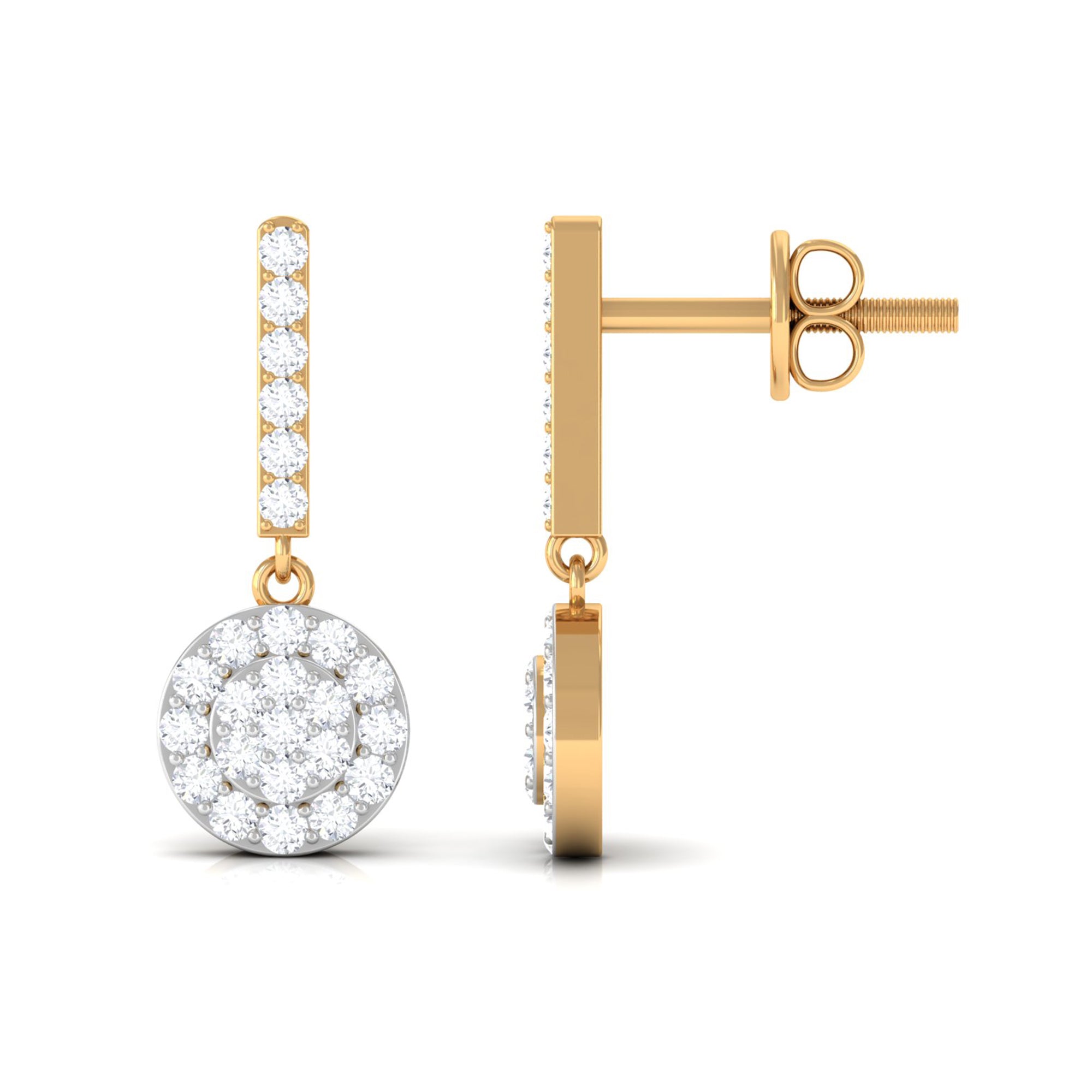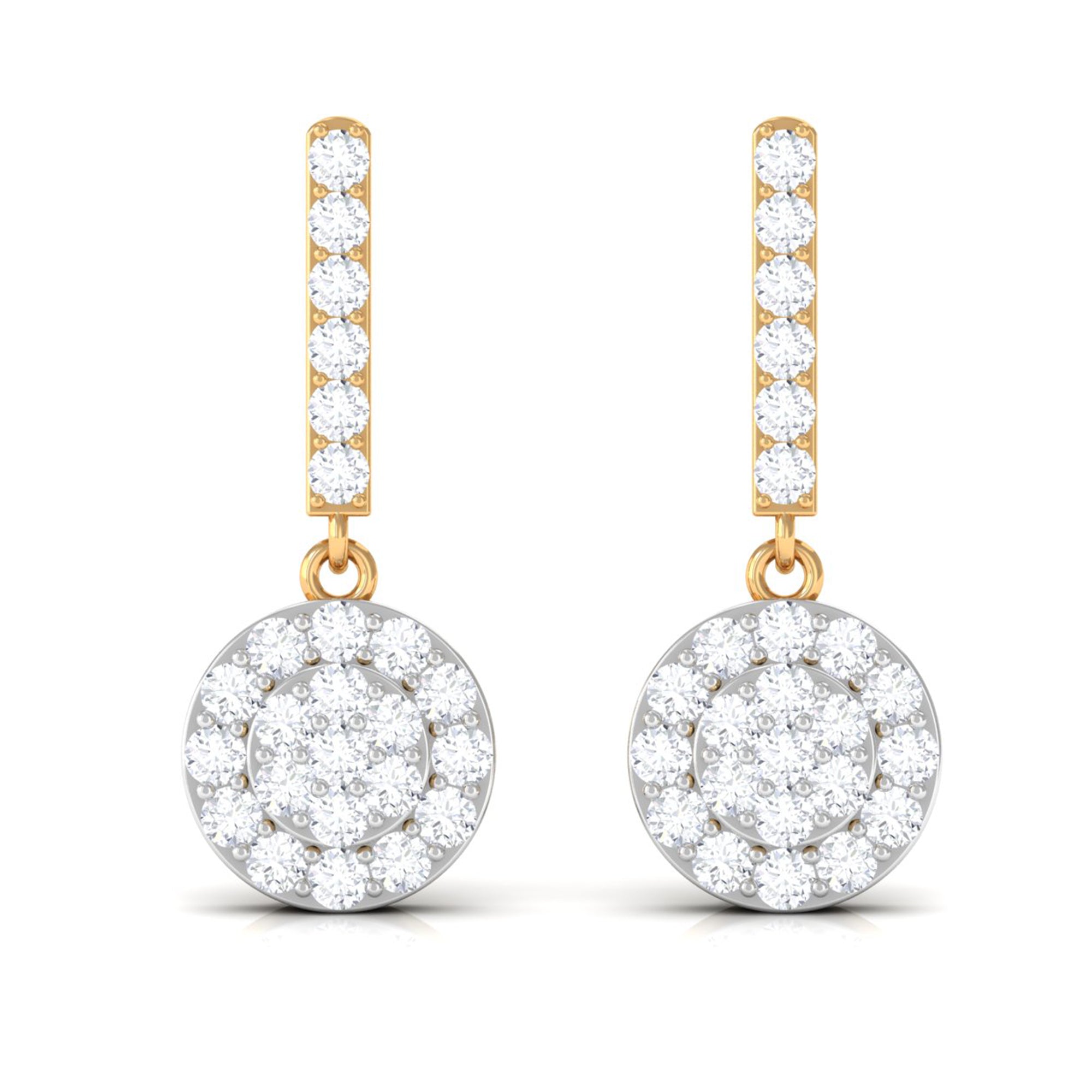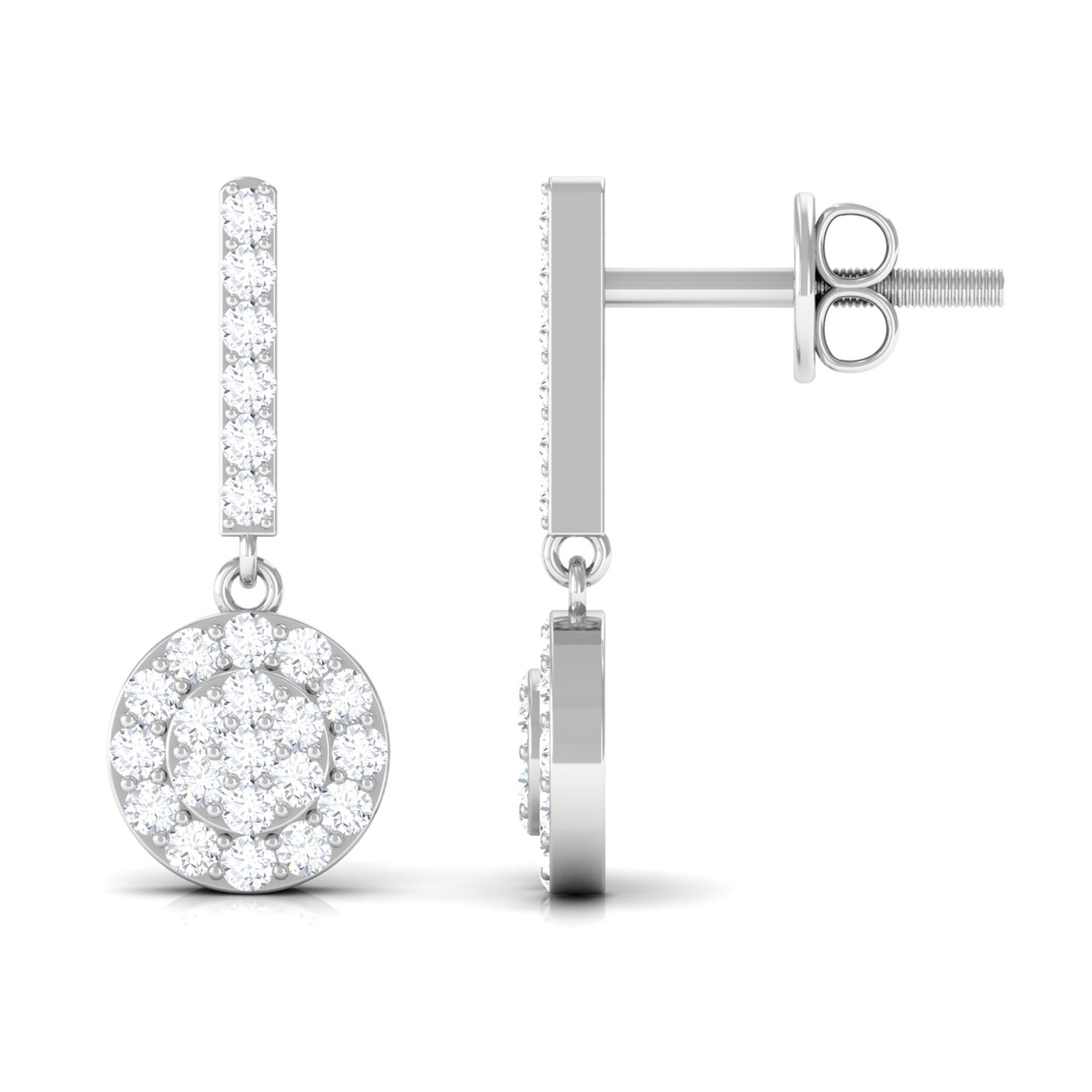 Take your look up a notch with these Dangle Earrings. Each drop is bejeweled with Round Cut Moissanites set on the bar design and additional Round Moissanite makes an eye-catching drop. The Dangle Earrings secures comfortably with a screw back. Order these Moissanite Earrings for your significant other as a surprise gift and let her dazzle in these on your big day.