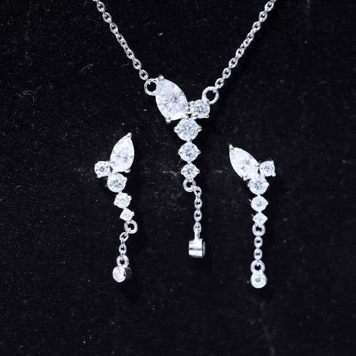 Looking for the perfect minimal jewelry set to elevate your special occasion look? Look no further than this stunning Moissanite Jewelry Set. Featuring a combination of Pear and Round Cut Moissanite stones, this Y Necklace and Earrings Set is sure to turn heads. The minimalist design of this Dangle Jewelry Set adds a touch of sophistication to any outfit. With a total weight of 1.75 Carat and D-VS1 quality certification, you can trust that all of the gemstones in this set have undergone rigorous quality checks to ensure their beauty and durability.