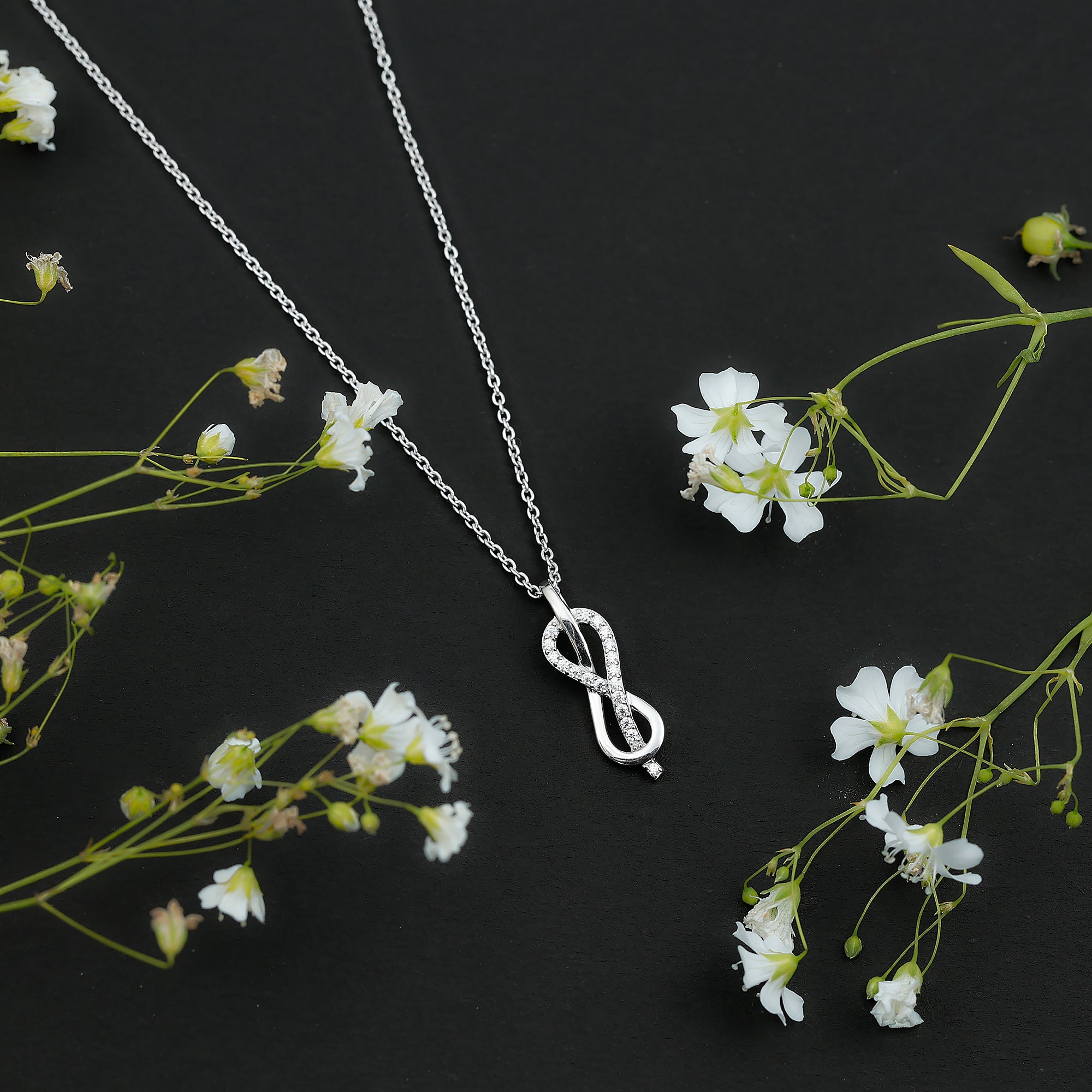 Minimal Moissanite Infinity Knot Pendant Necklace