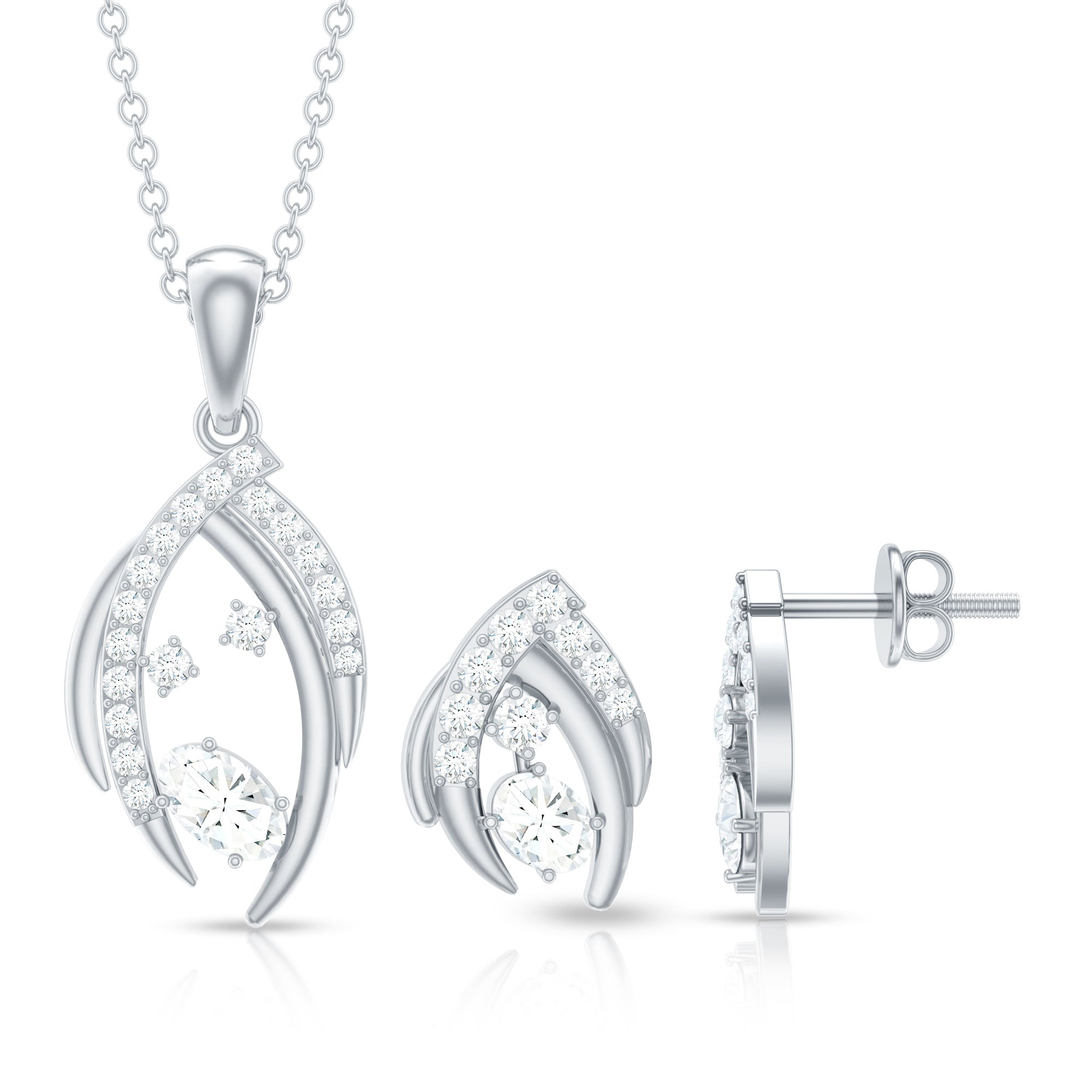 This breathtaking Moissanite Earrings and Pendant Set will never go unnoticed and bring you into the spotlight on any special occasion. Featuring an Oval Shape Moissanite gemstone set in Prong Setting, this Jewelry Set is adorned by petite Moissanite gemstones that add more elegance to your overall look.