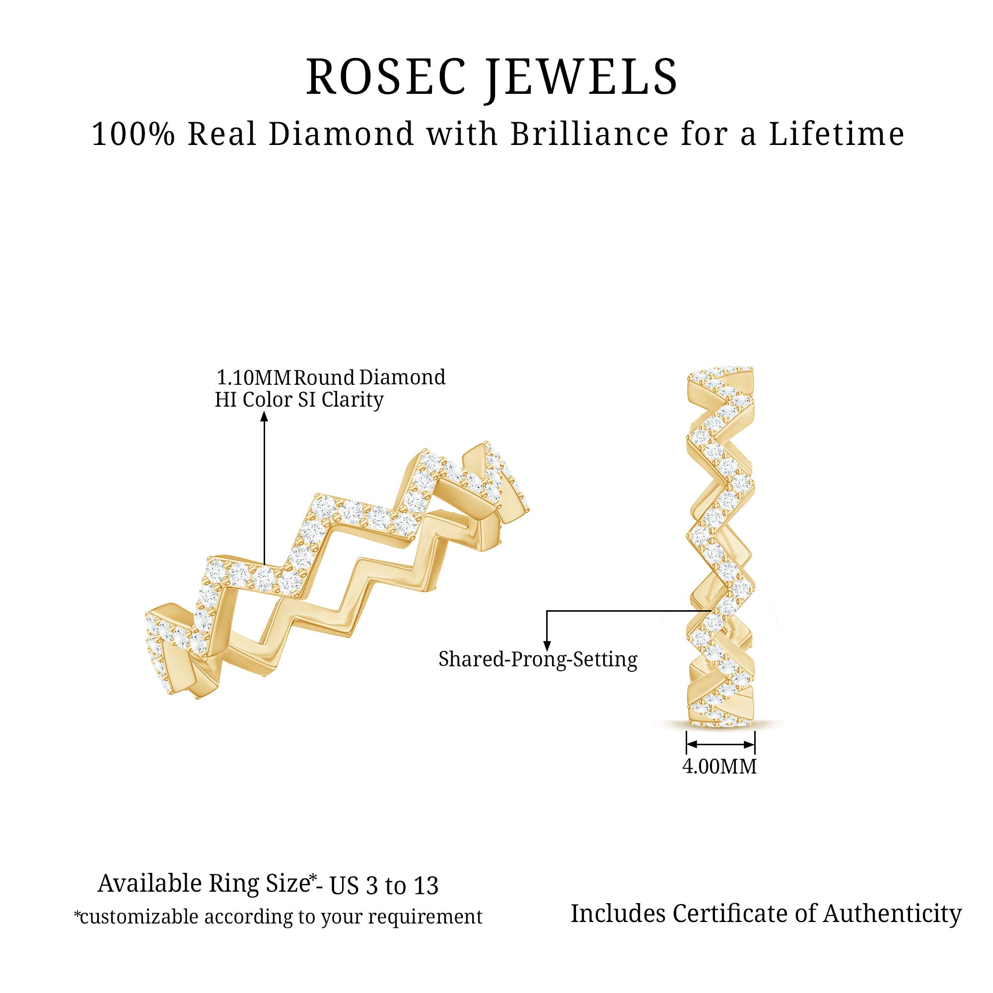 Show your love to the special woman in your life with this diamond zigzag eternity ring. Crafted in gold, this full eternity diamond ring will shine brilliantly on her finger, making her feel loved and cherished. Dont hesitate to purchase this stunning piece of jewelry for your lady.