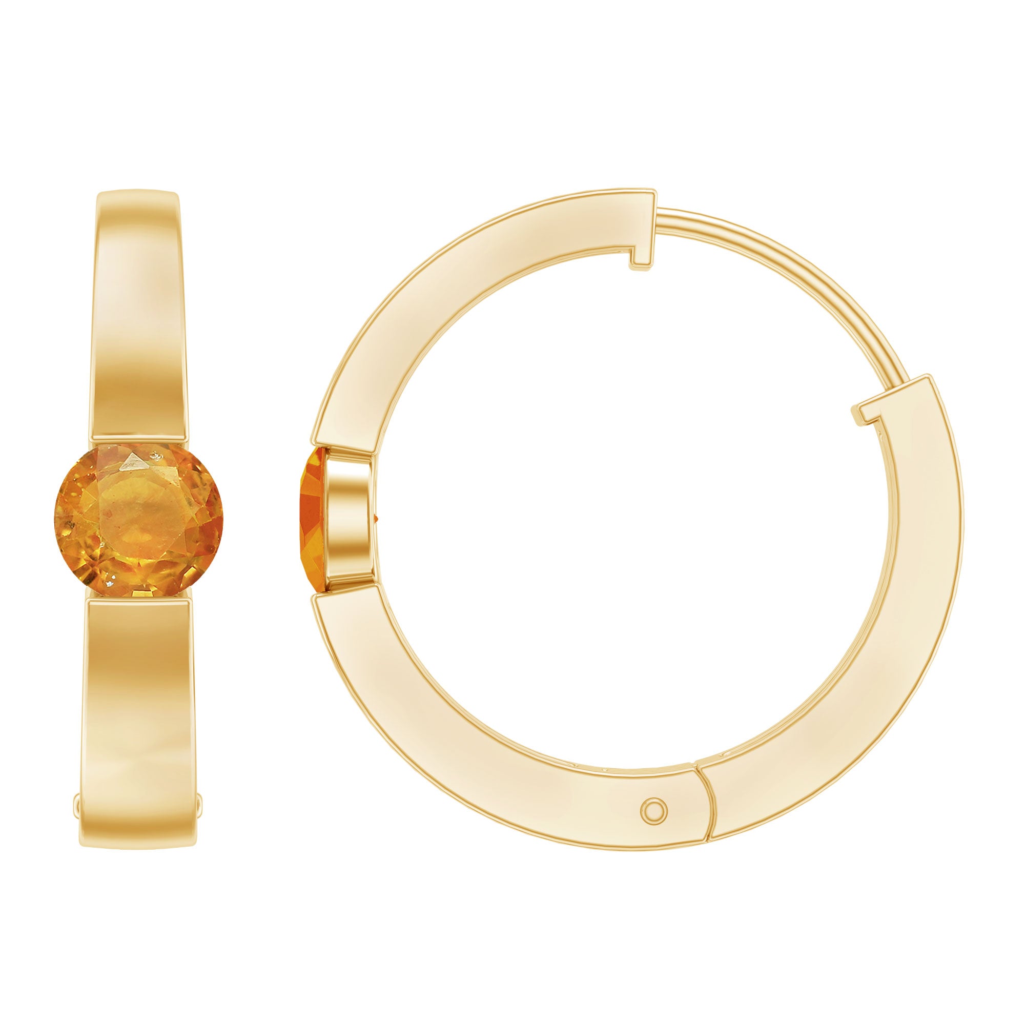 Elevate your style with these Hoop Earrings adorned with a round Orange Sapphire gemstone, infusing vibrancy into any outfit. The gemstone is prominently displayed in a Tension Mount Setting, imparting a contemporary twist to the design. These hinged hoop earrings make a bold statement, seamlessly merging alluring aesthetics with skillful craftsmanship, serving as the ideal accessory to refresh your fashion choices.