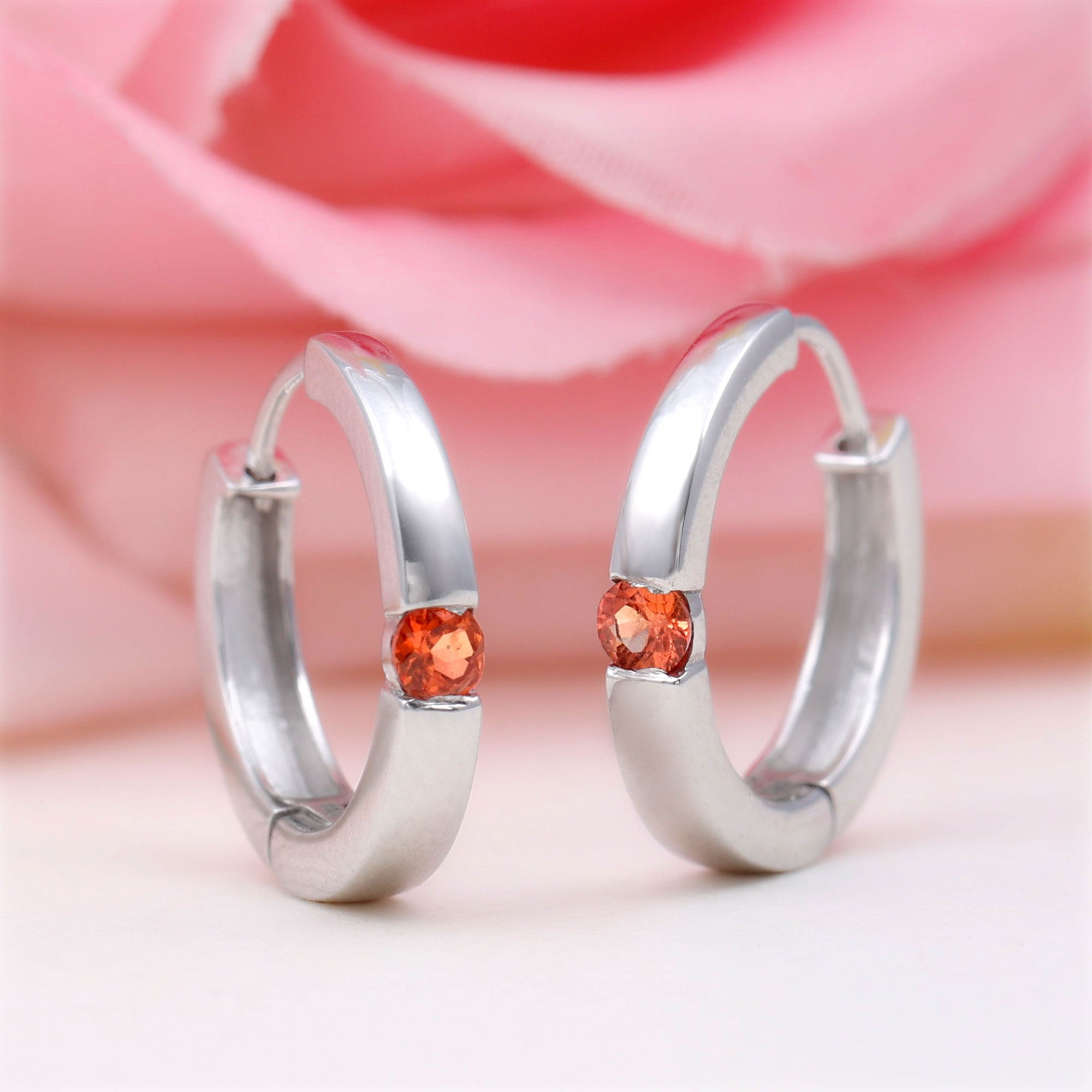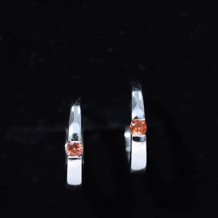 Minimal Orange Sapphire Hinged Hoop Earrings in Tension Mount Setting