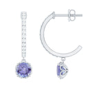 Minimal Round Tanzanite Hoop Drop Earrings with Diamond