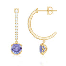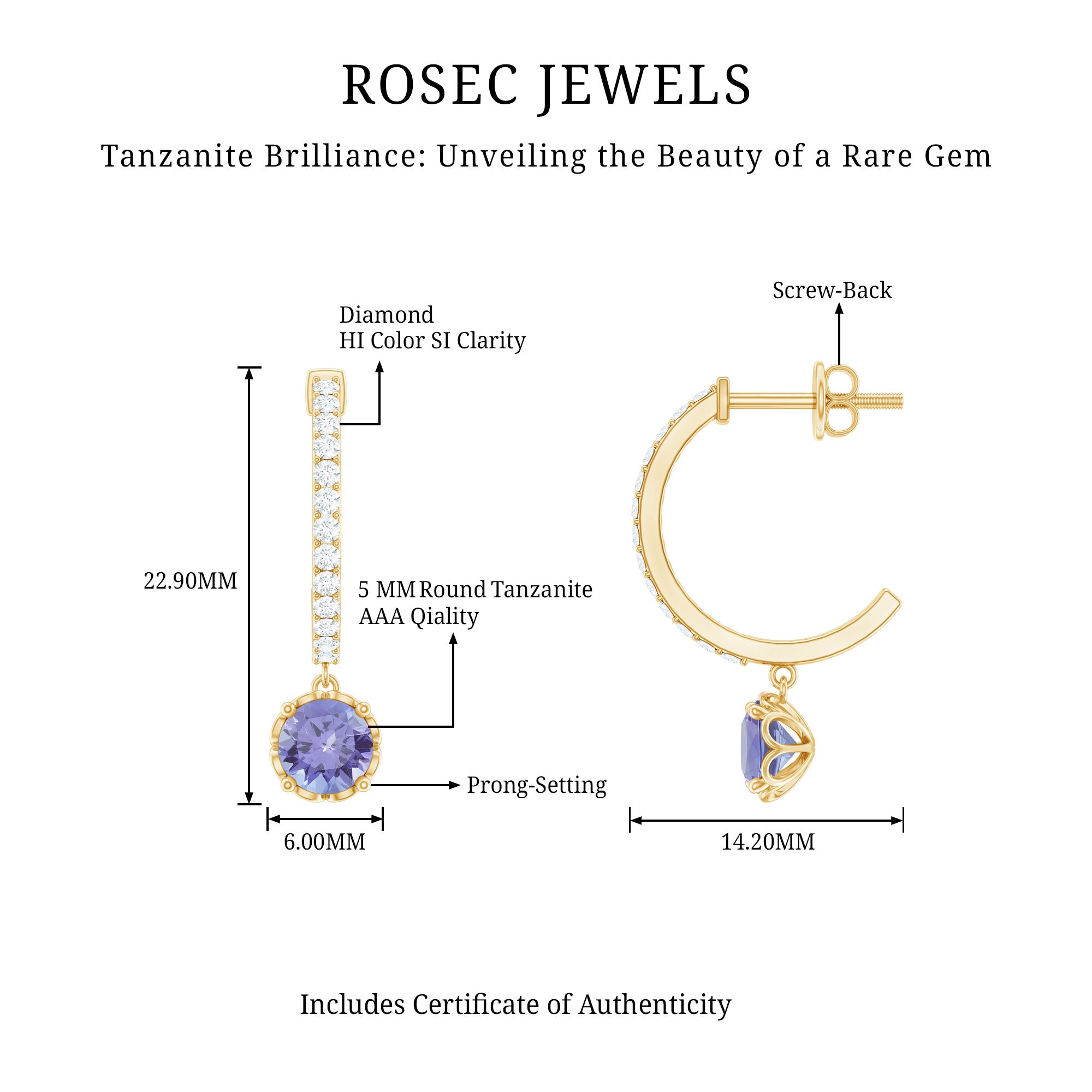 For a truly special present, these stunning Tanzanite Drop Earrings are an excellent choice. They feature Round Shape Tanzanite drops securely set in a Prong Setting, while the half hoop is beautifully adorned with sparkling round Diamond stones in a Pave Setting. These hoop earrings add an elegant and captivating touch to your look, offering the perfect way to shine without the need for additional accessories.