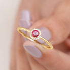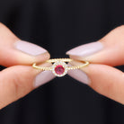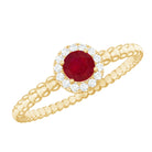 Elevate your promise with this lovely Ruby Promise Ring, where vibrant emotions meet timeless elegance. A Round Shape Ruby set in Prong Setting over the Bubble Shank takes center stage, encircled by a shimmery diamond halo. This Natural Ruby Ring is a testament to the promise of everlasting love, its design symbolizing the journey of two hearts intertwined.