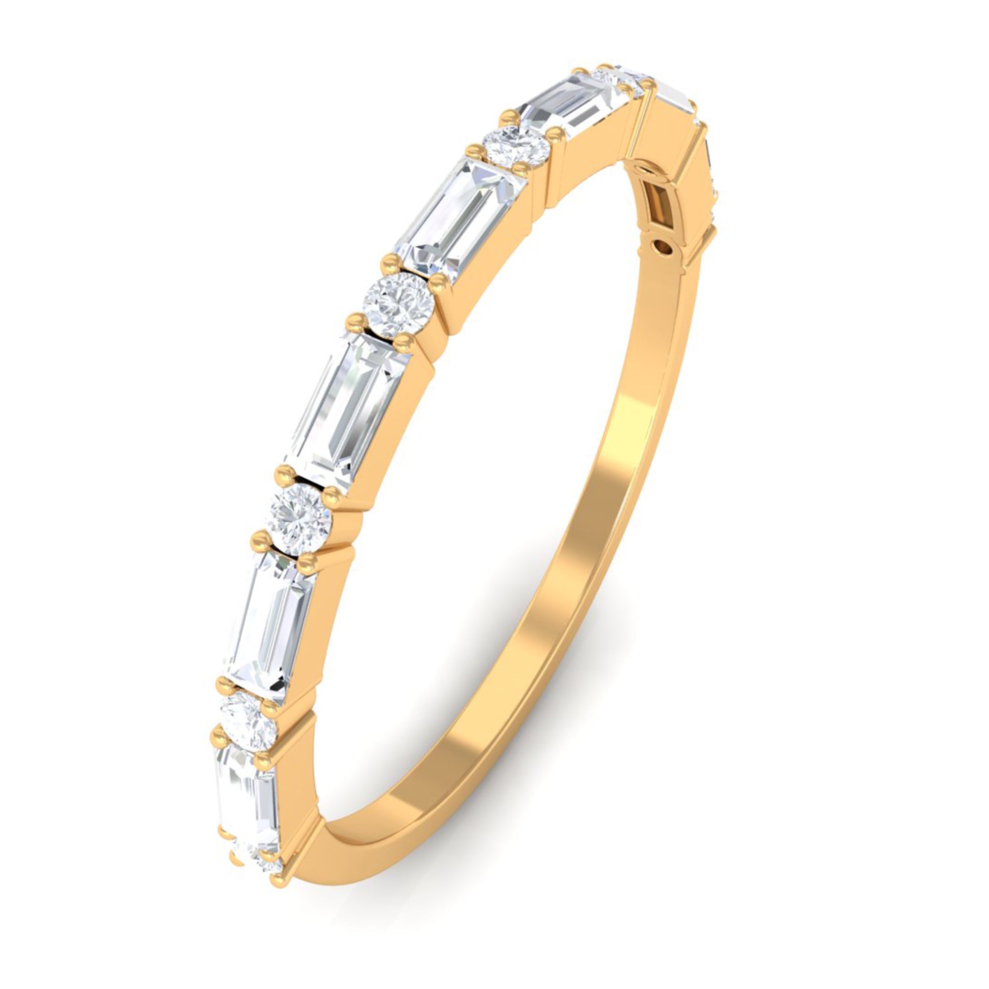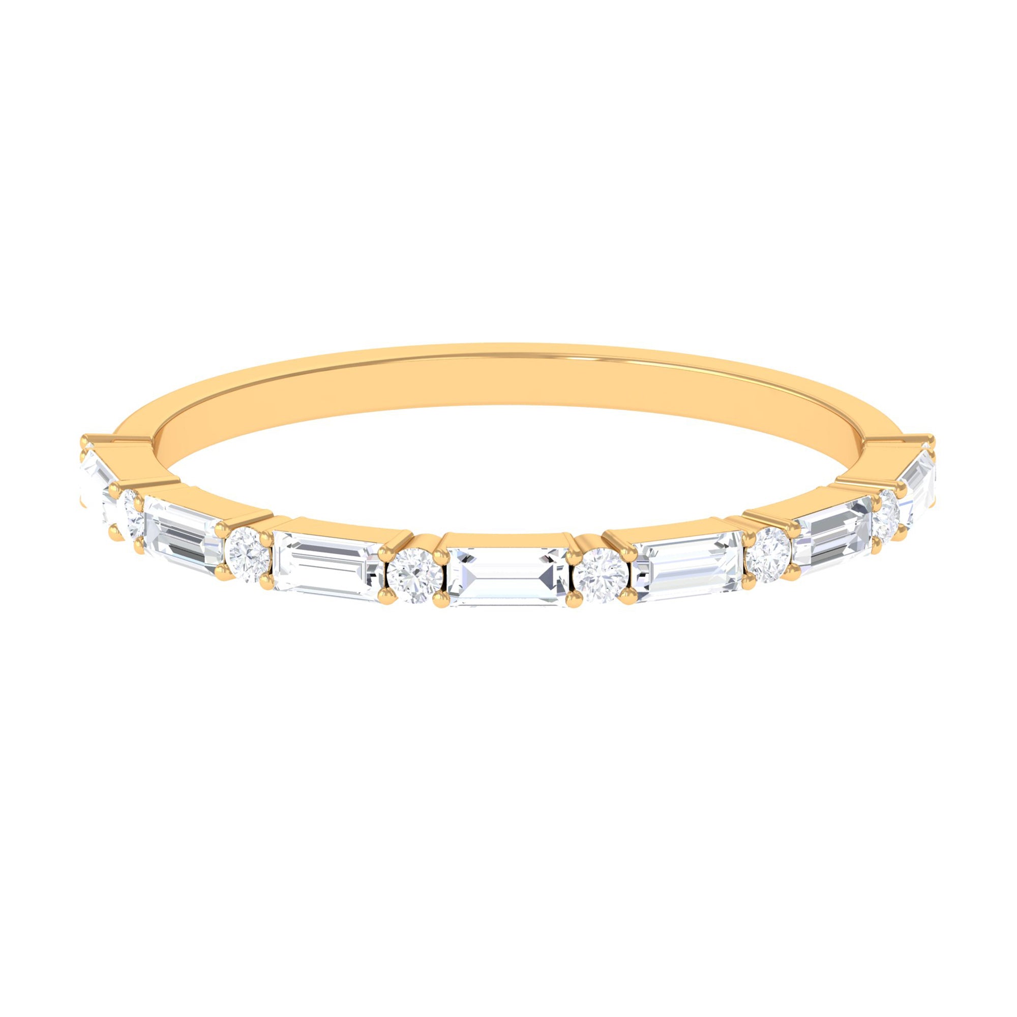 Show your love on a special occasion with this half eternity ring, featuring round and baguette shape cubic zirconia set in a prong setting. Made of gold, this Valentines Day ring for women is a perfect gift for your beloved. Make her feel loved and cherished with this beautiful piece of jewelry.