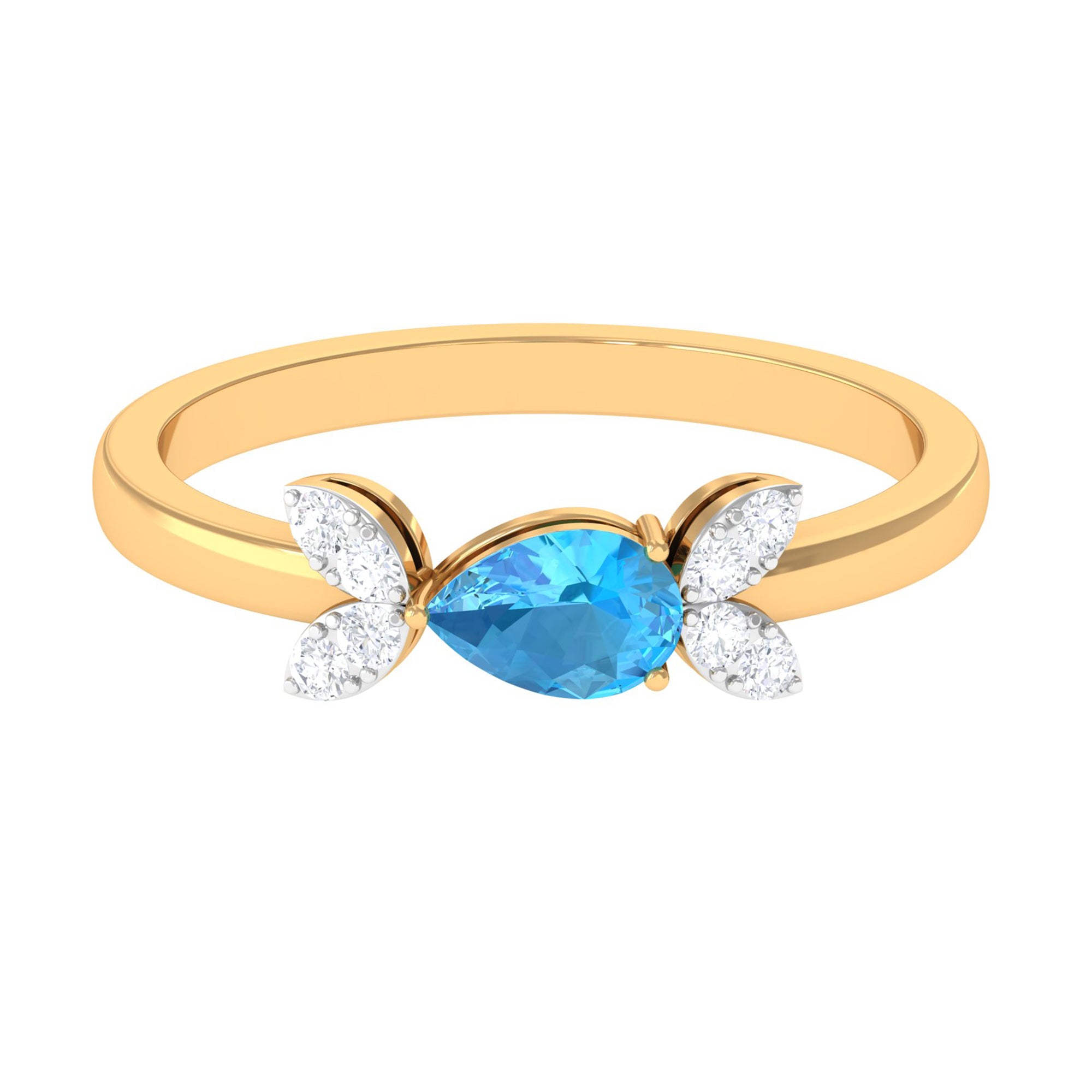 Embrace simplicity with this Minimal Leaf Promise Ring featuring a Pear Shape Swiss blue topaz and Diamond gemstones, a symbol of natural beauty.