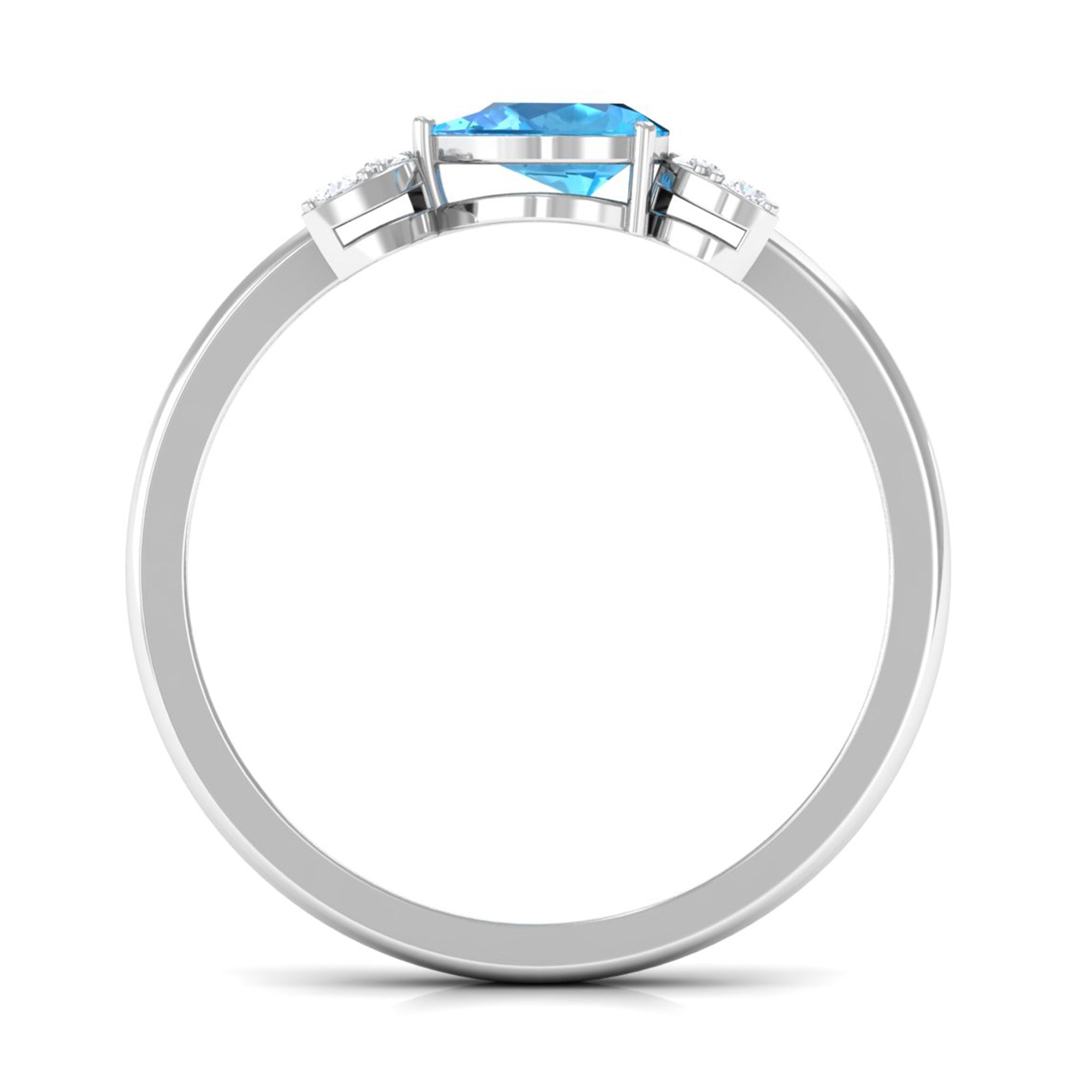 Minimal Swiss Blue Topaz Leaf Promise Ring with Diamond