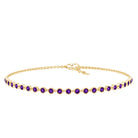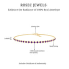 Indulge in the exquisite beauty of our Minimal Chain Bracelet, crafted from high quality metal and adorned with a row of Round Cut Amethyst stones set in a delicate Bezel setting. This stunning Amethyst Bracelet is the perfect gift to surprise and delight your beloved wife on your wedding anniversary, as it radiates elegance and charm in equal measure. Amethyst is the birthstone of February month which makes it perfect for the Aquarius ladies. It possesses the best AAA Quality Real Amethyst Stones, which are authentically certified. This February Birthstone Bracelet also works wonderfully as a layering piece, allowing you to pair it with another bracelet for a stylish and personalized look. The premium jewelry box packaging keeps the jewelry protected during shipping and delivery, making it ideal for special moments like birthdays, Womens Day, Mothers Day, Valentines Day, graduations, and Thanksgiving.
