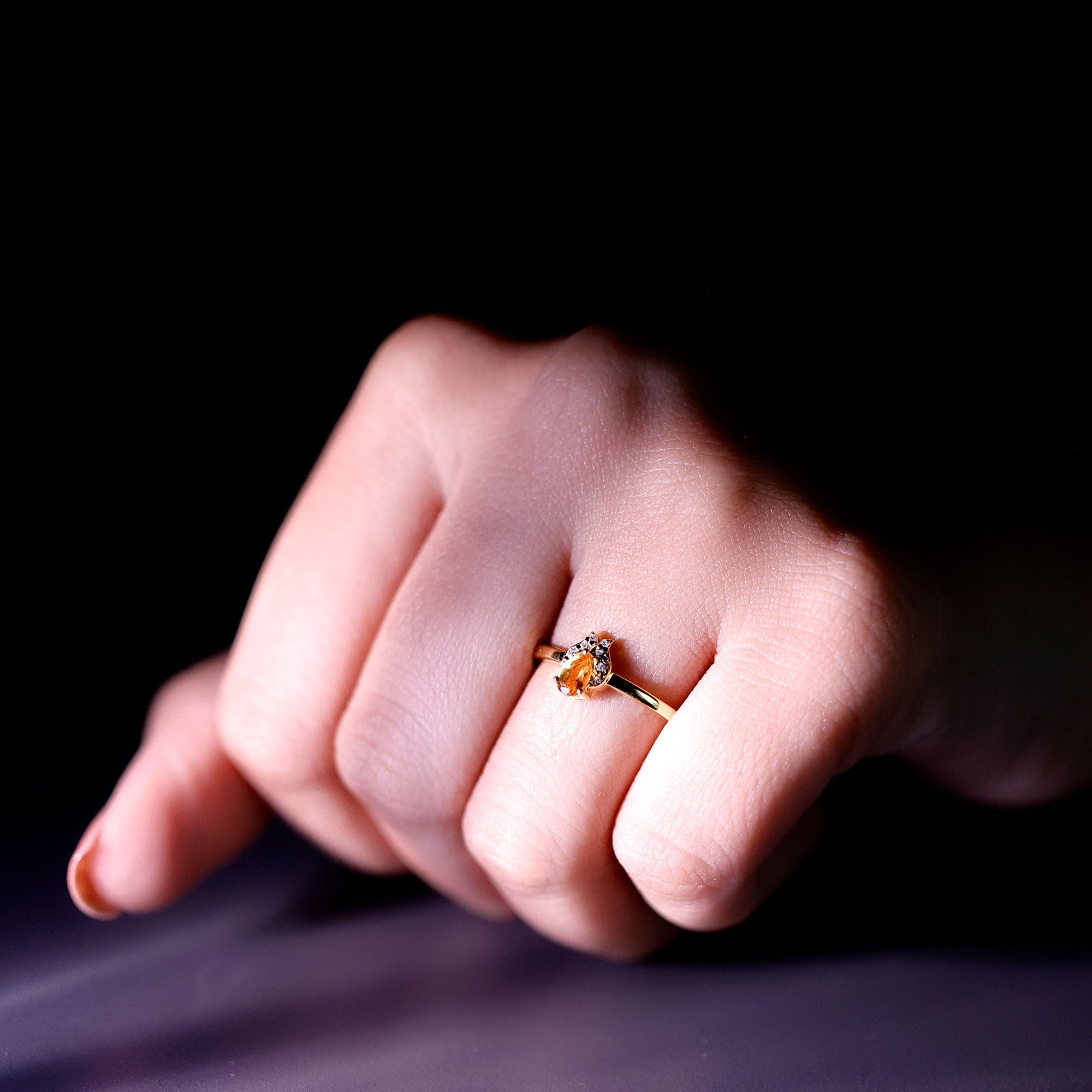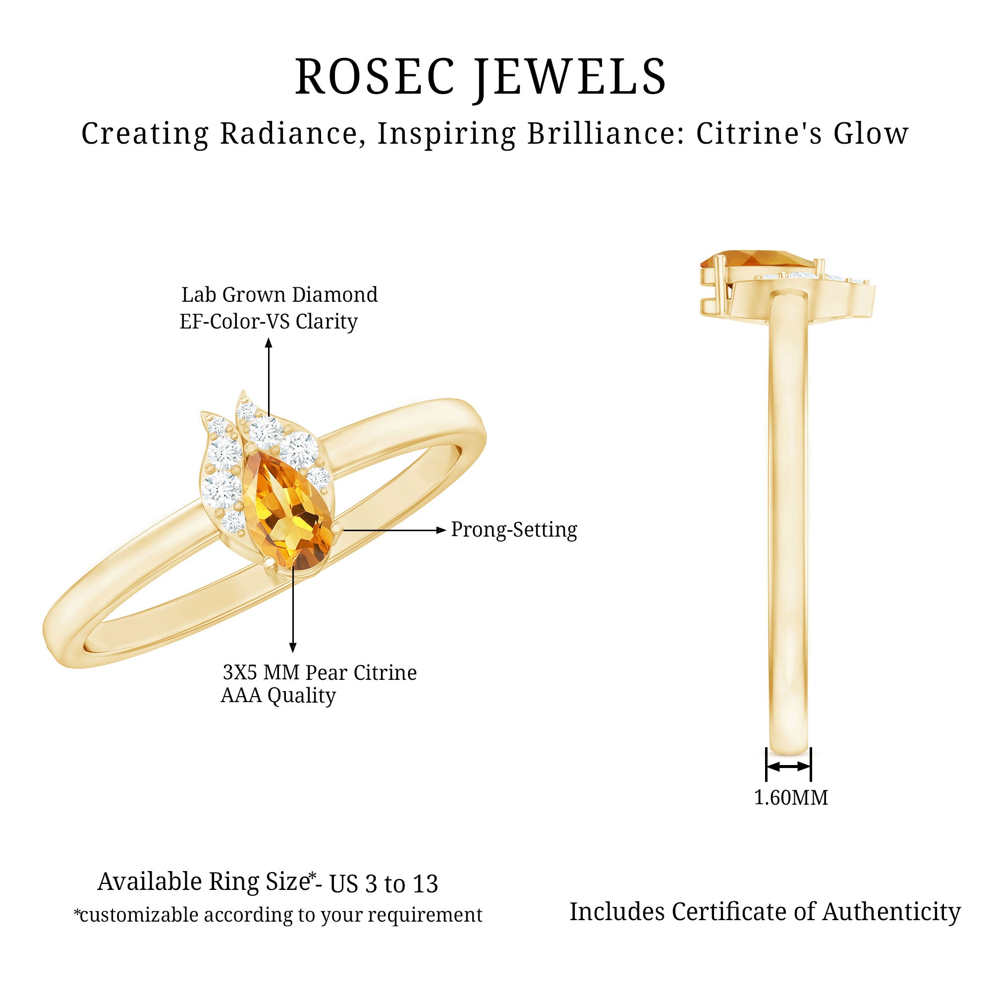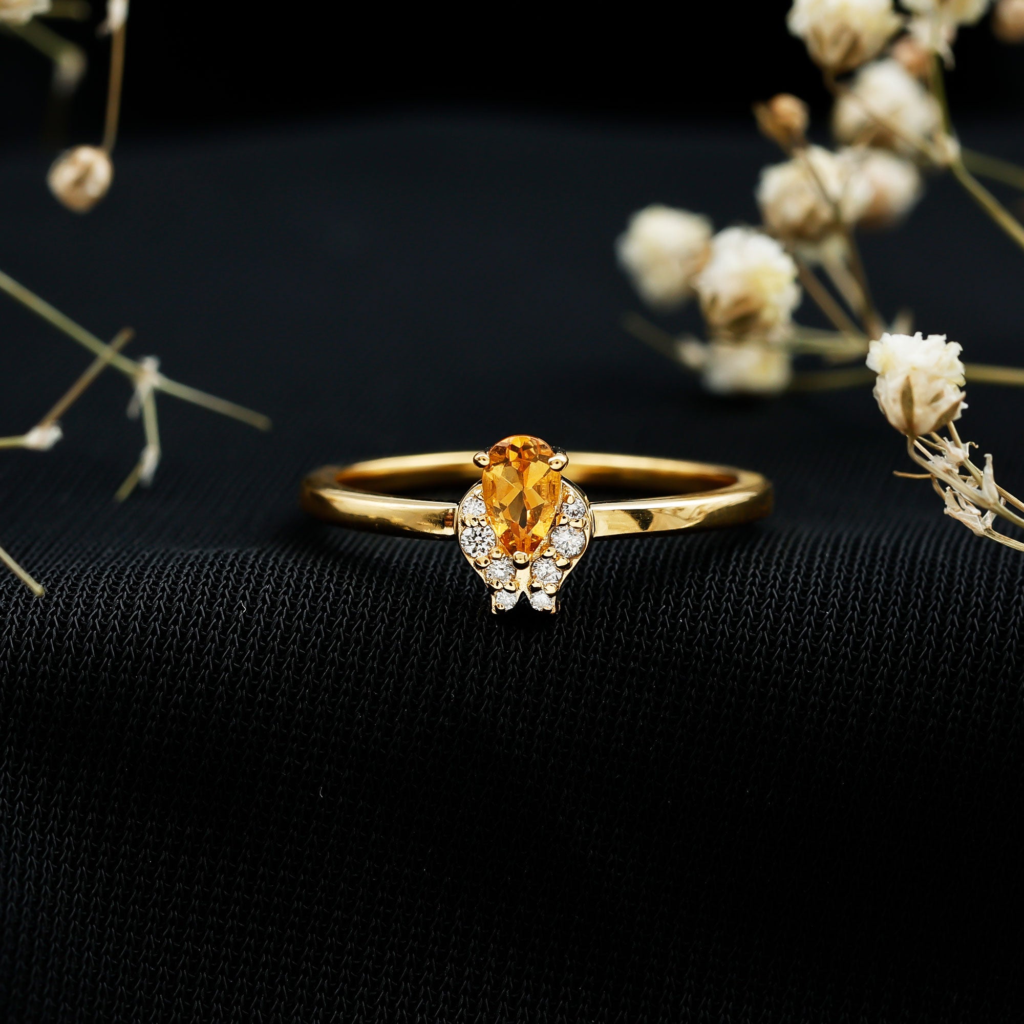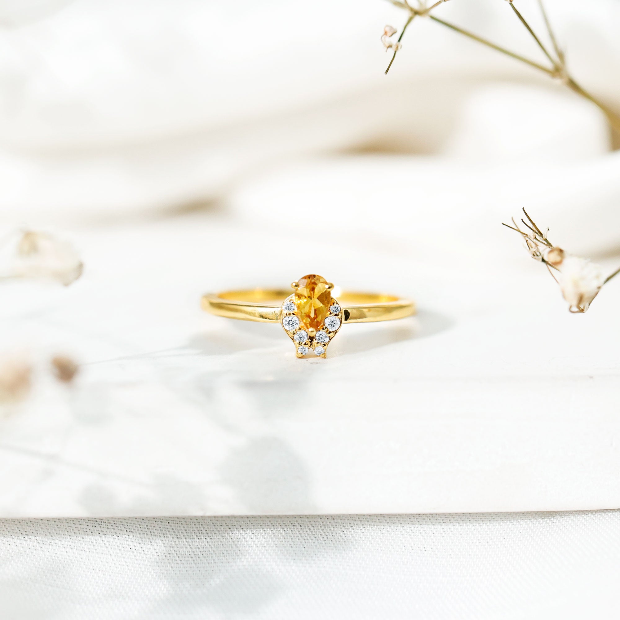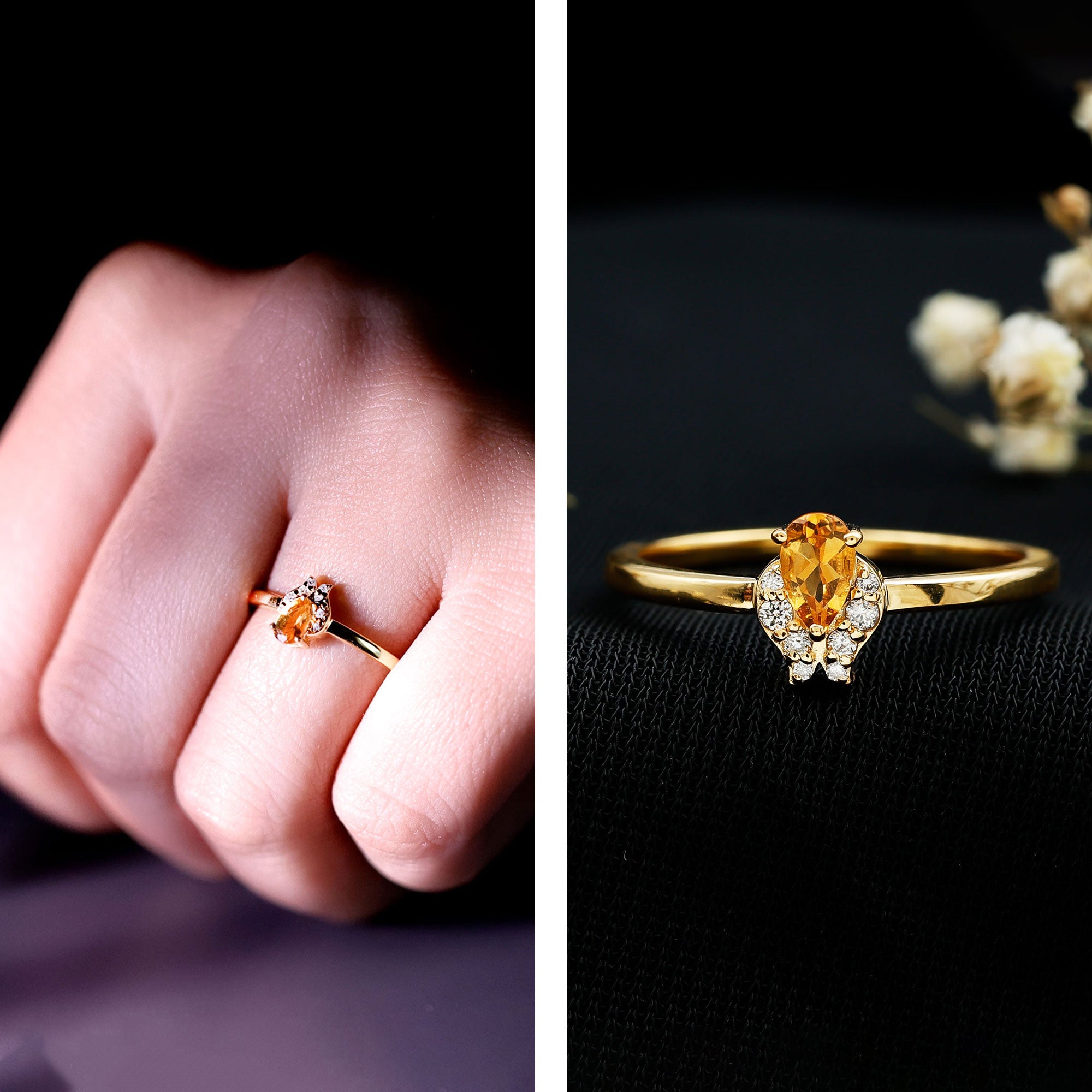 A gentle reminder of a heartfelt promise, this Citrine Ring is designed to be your everyday favorite. Whether you are celebrating a special moment or simply showing someone how much they mean to you, this Citrine and Diamond Ring is a heartfelt choice. At the center, it features a glowing 3X5 MM pear shaped citrine that instantly draws the eye. What makes this ring even more special is the sparkling touch of round cut lab-grown diamonds that gently frame the citrine. They add a soft shimmer without taking away from the beauty of the center stone. Together, the mix of sparkle and warm color creates a perfect balance that feels both elegant and meaningful. The band is made with 14k yellow gold plated silver, giving it a rich, polished look while still being lightweight and comfortable for everyday wear. It is designed to be simple and stylish, something you or your loved one can wear with ease. This Minimalist Ring makes a wonderful promise ring, birthday gift, or even a just-because piece. It comes packaged in a beautiful jewelry box with a certificate of authenticity, making it ready for gifting the moment it arrives. If youre looking for a piece that speaks from the heart, this Citrine Promise Ring is a lovely way to show your love.