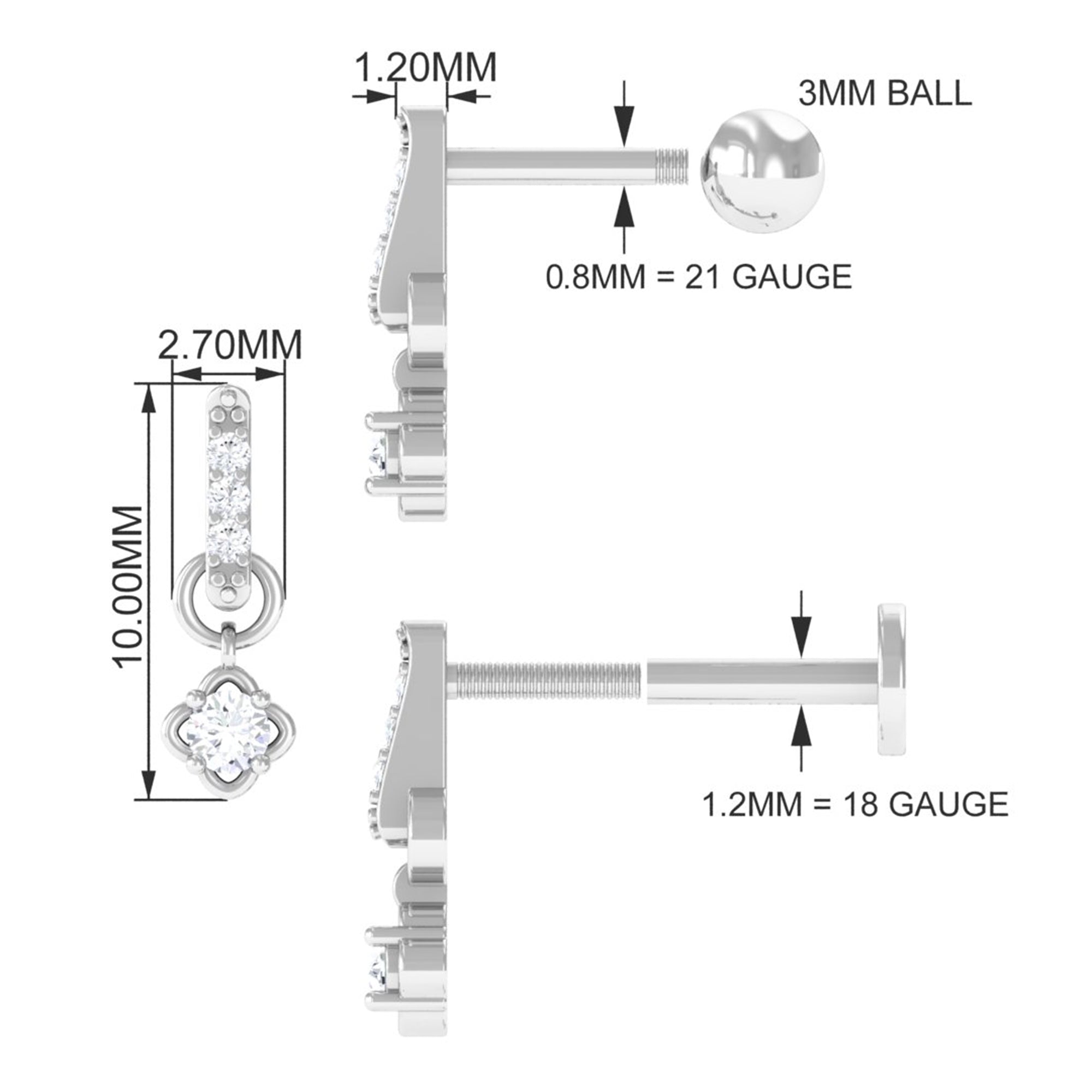 Minimalist Diamond Drop Earring for Cartilage Piercing