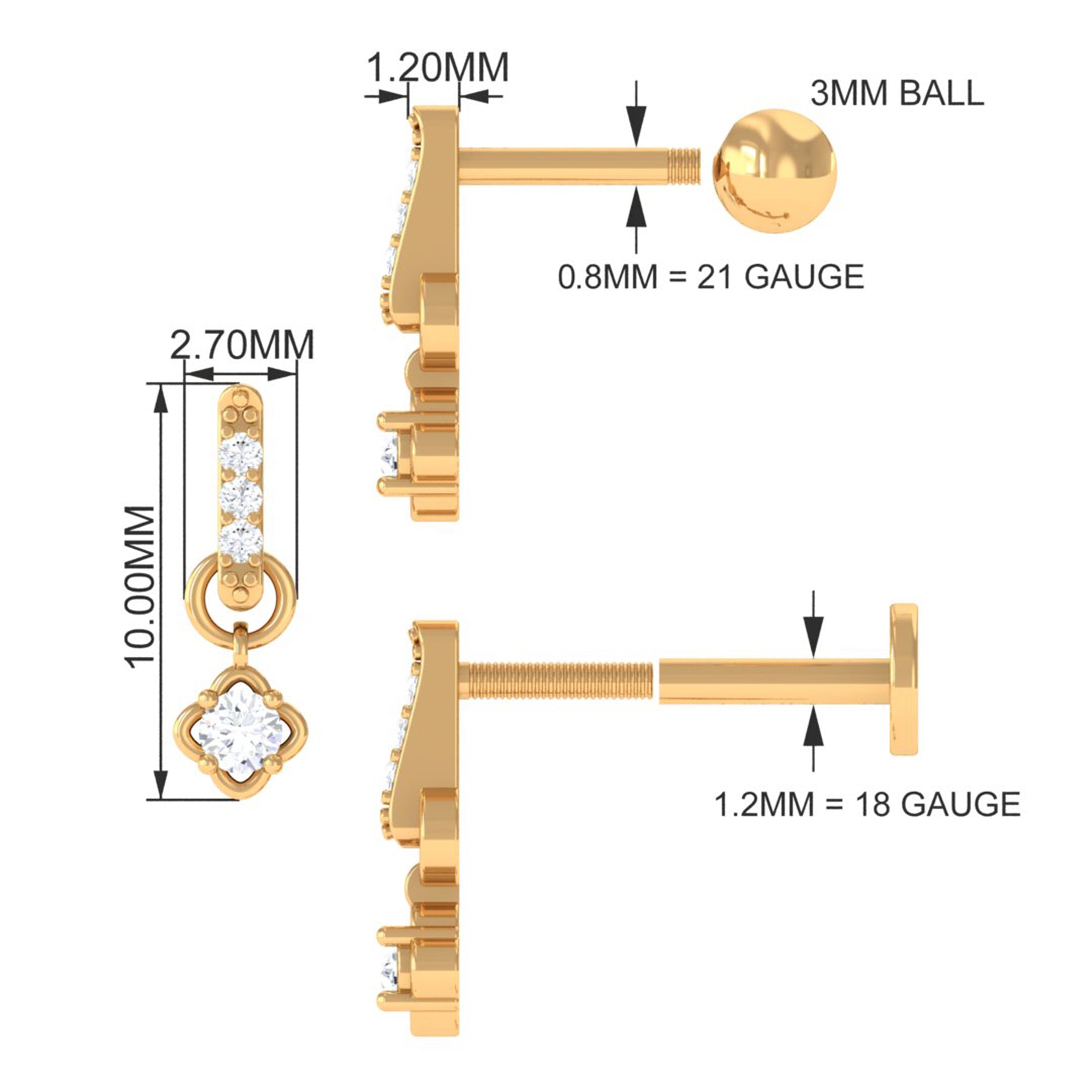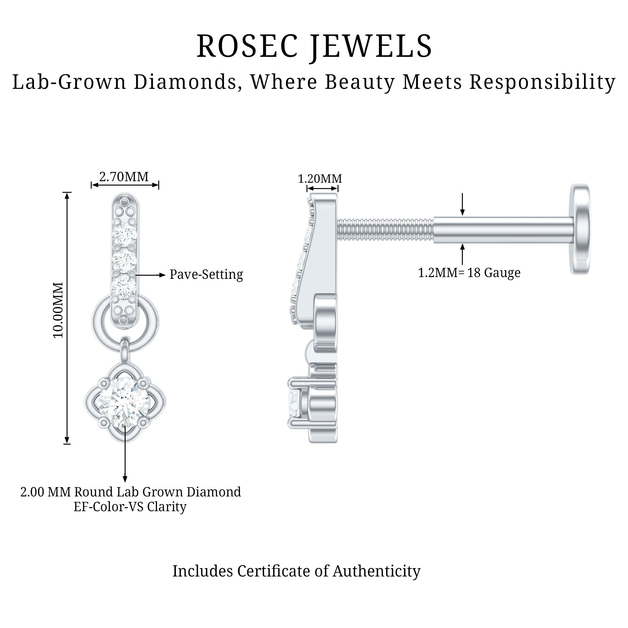If you want to ace your ear stack piercing look, consider this Diamond Drop Earring IN!Embellished with dainty Round Diamonds studded on the bar design while a Round Diamond secured by 4 Prong Setting hanging as a drop, crafted with Hallmarked Metal. You can simply style this Diamond Earring on your multiple piercings like Helix, Cartilage, Tragus, or Upper Lobe Piercing. This Piercing Earring can be gifted on any special occasion, or why wait for a special occasion? Get this earring for all yourself and shine.