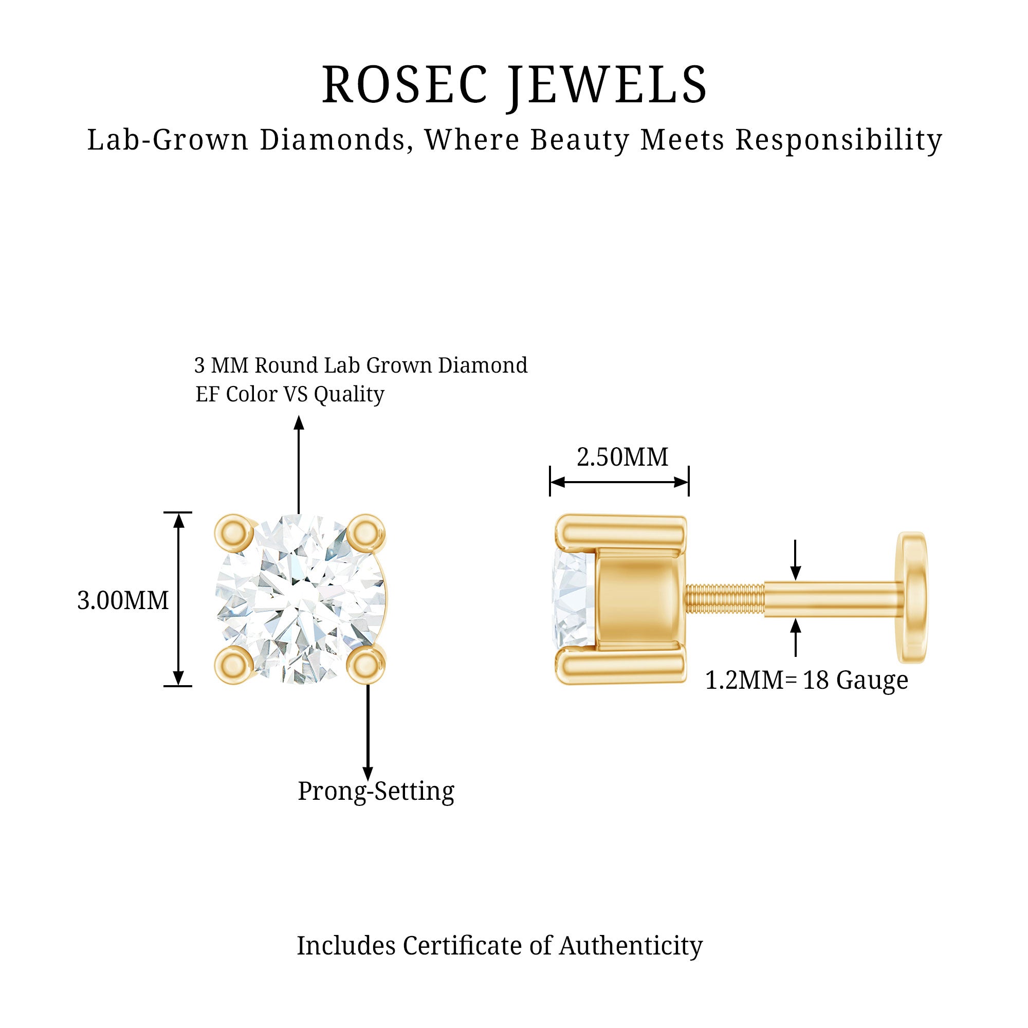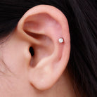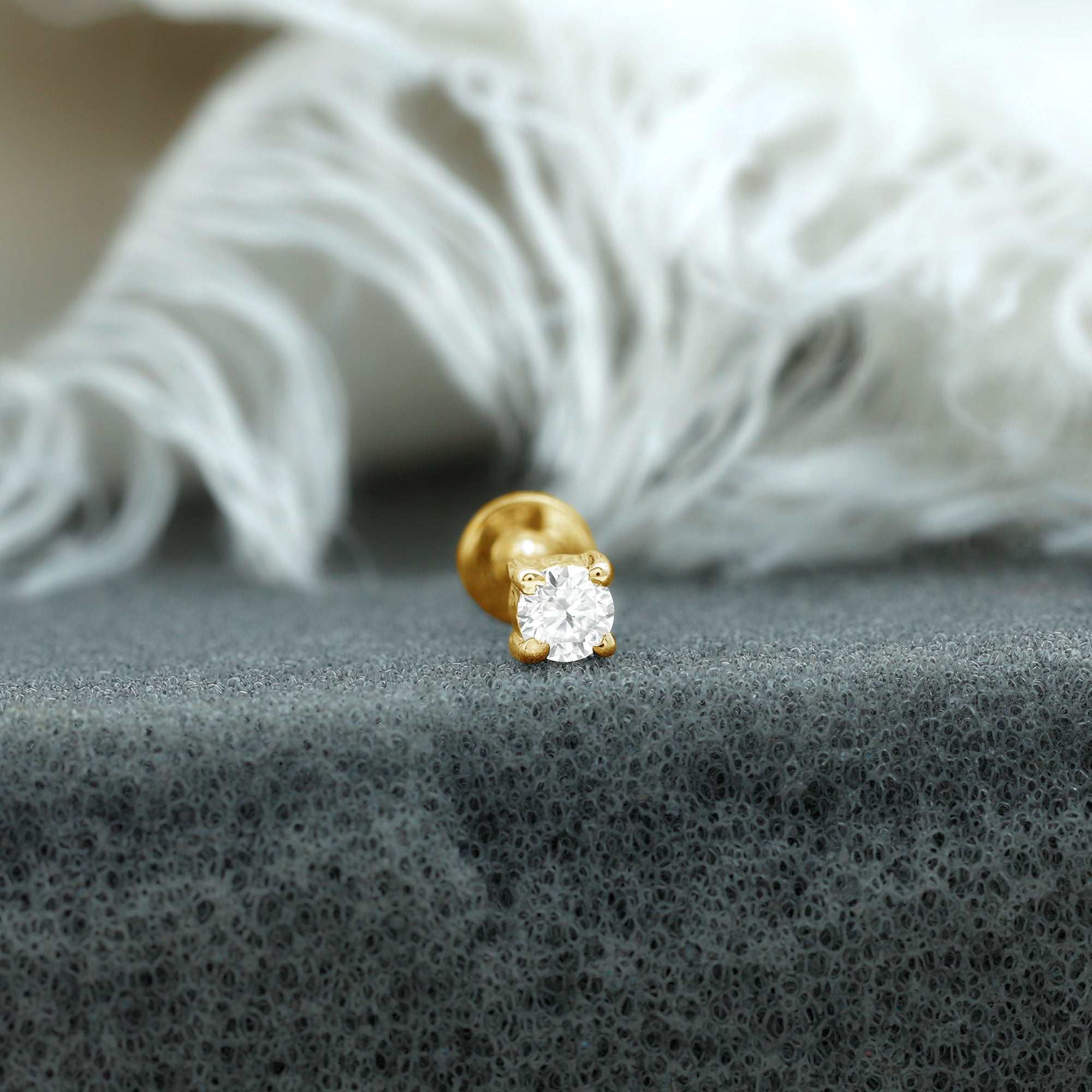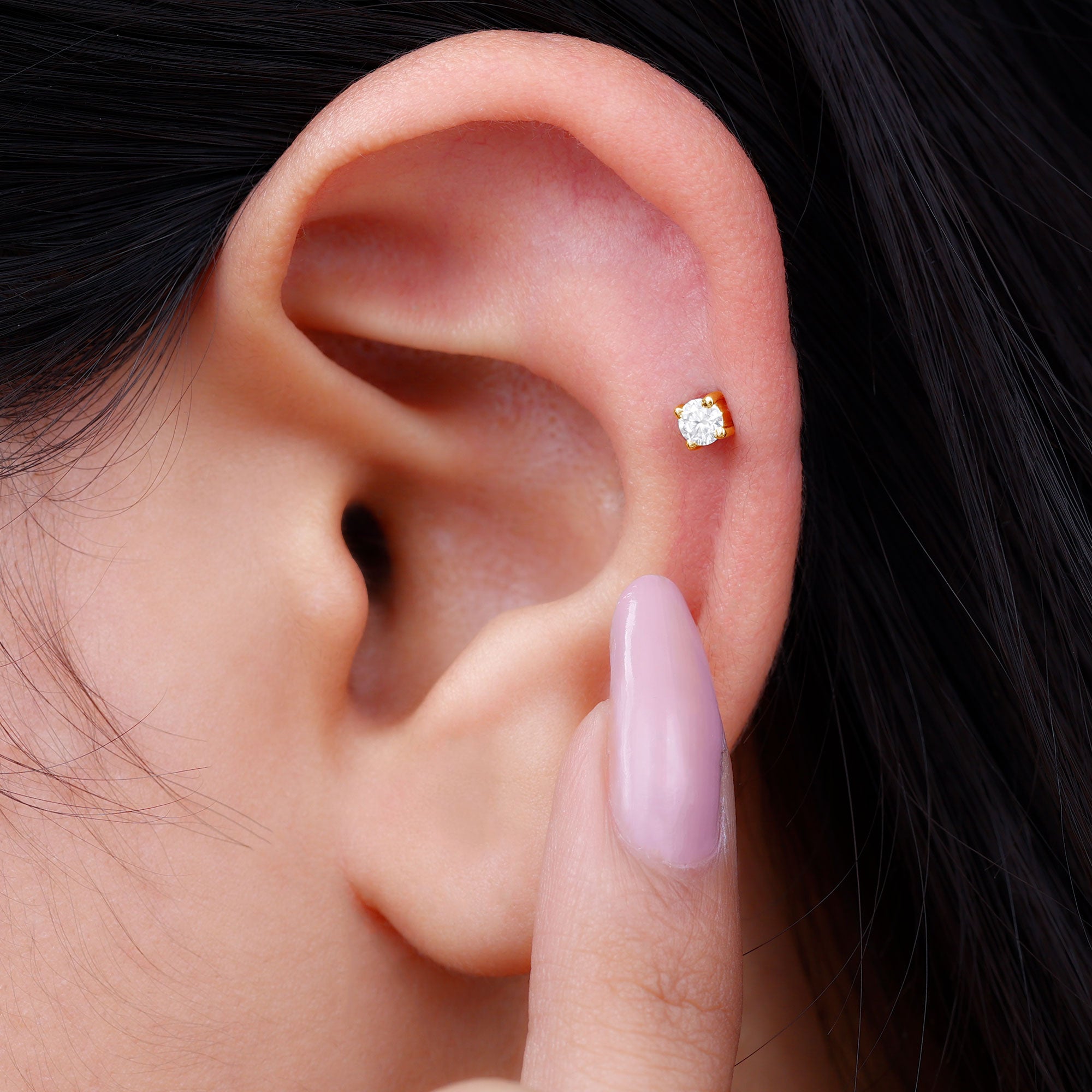 - A simple design featuring a round diamond secured by prong setting, a perfect helix earring to compliment your ear piercings.