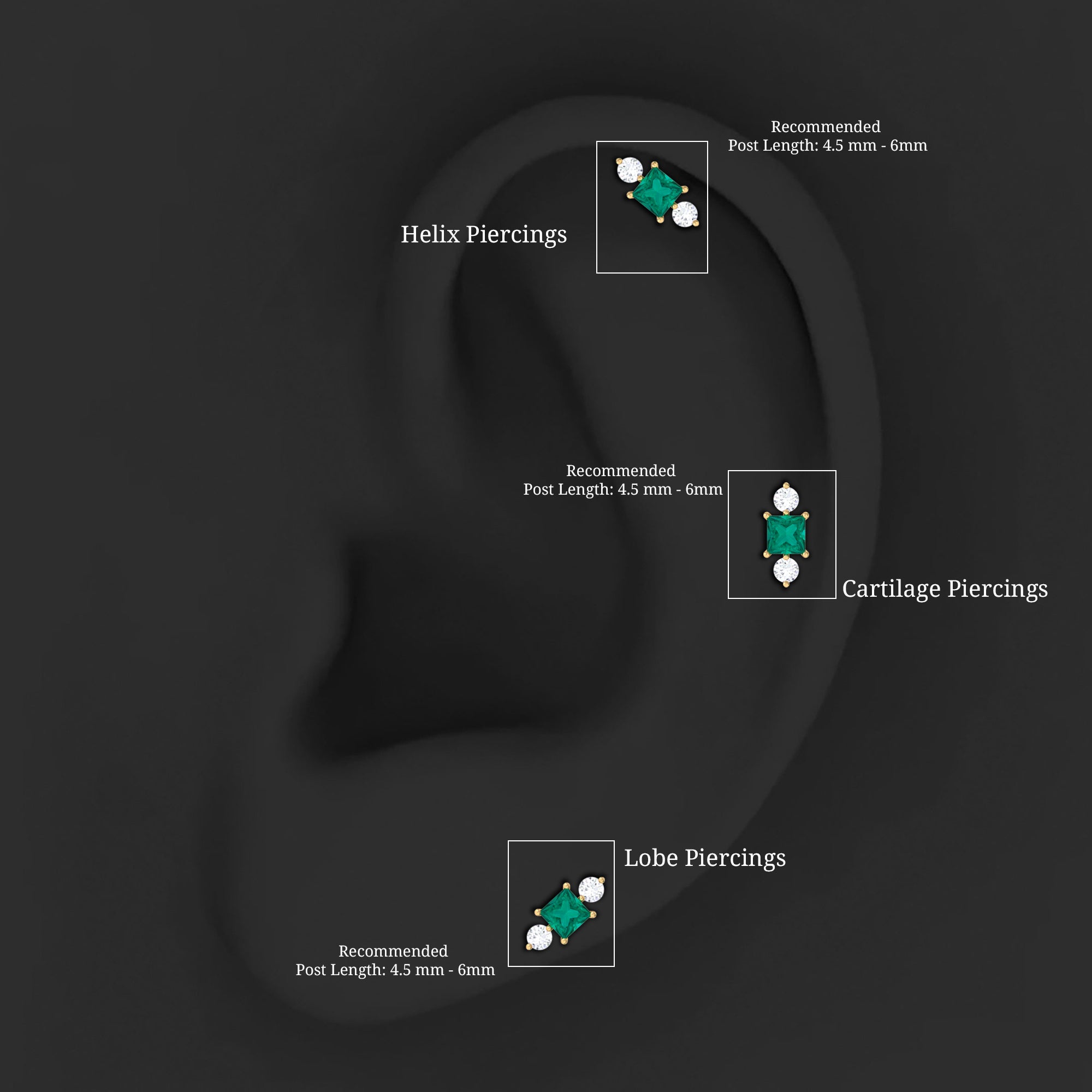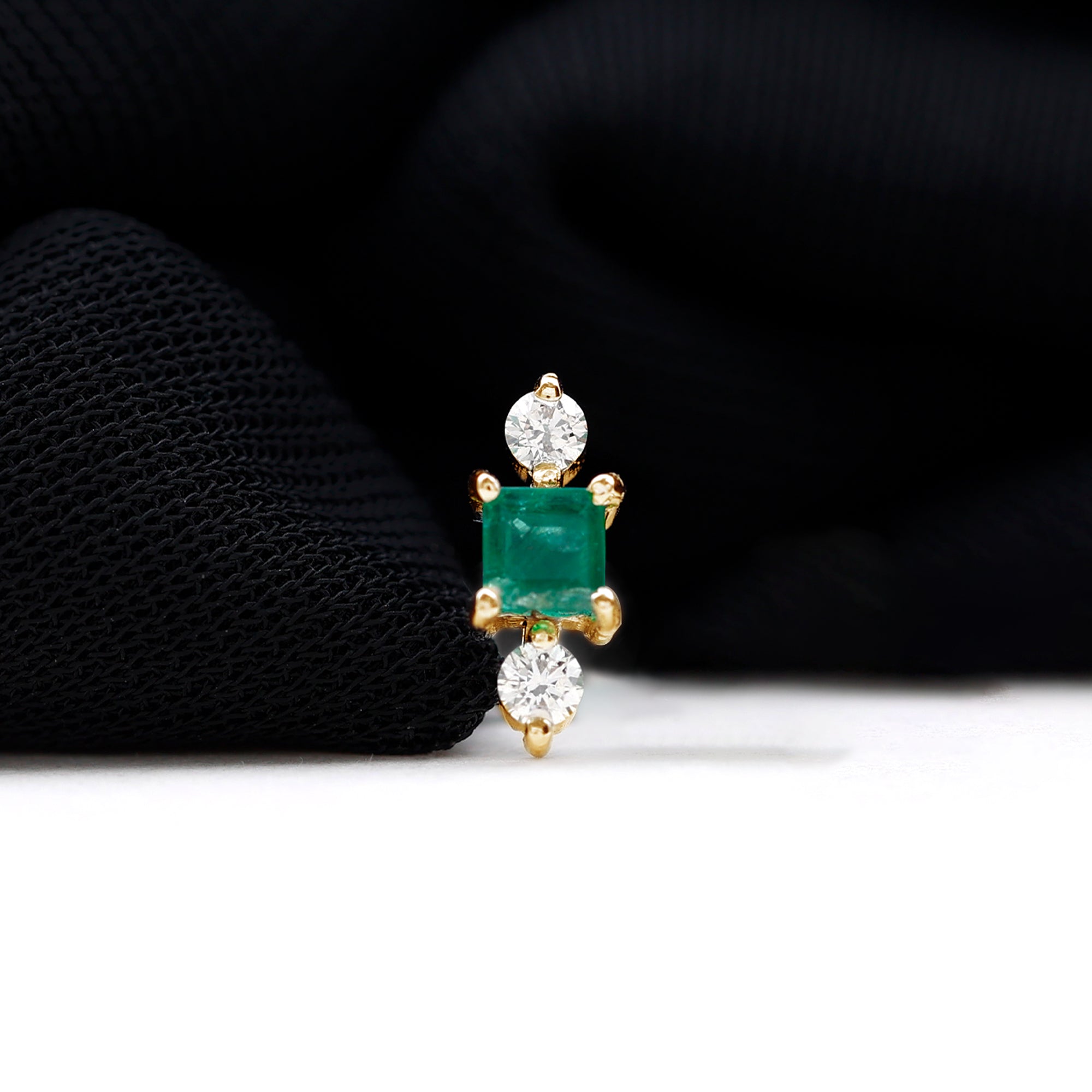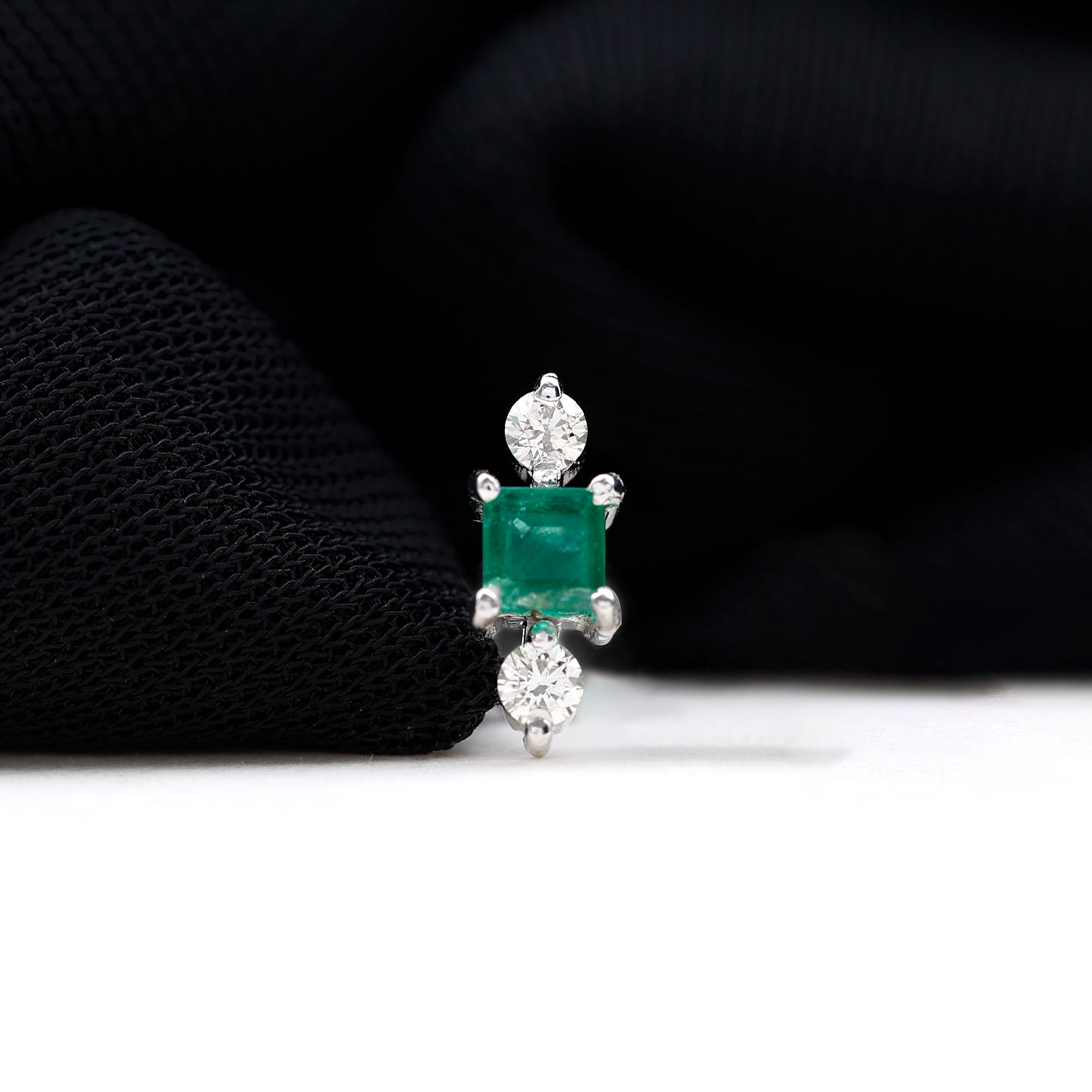 This Minimal Emerald and Moissanite Helix Earring is embellished with Princess Cut Emerald and Round Cut Moissanites secured in Prong Setting. Whether youre looking to make a statement or simply want to add some understated glam to your look, this Emerald Earring is the perfect choice for you.