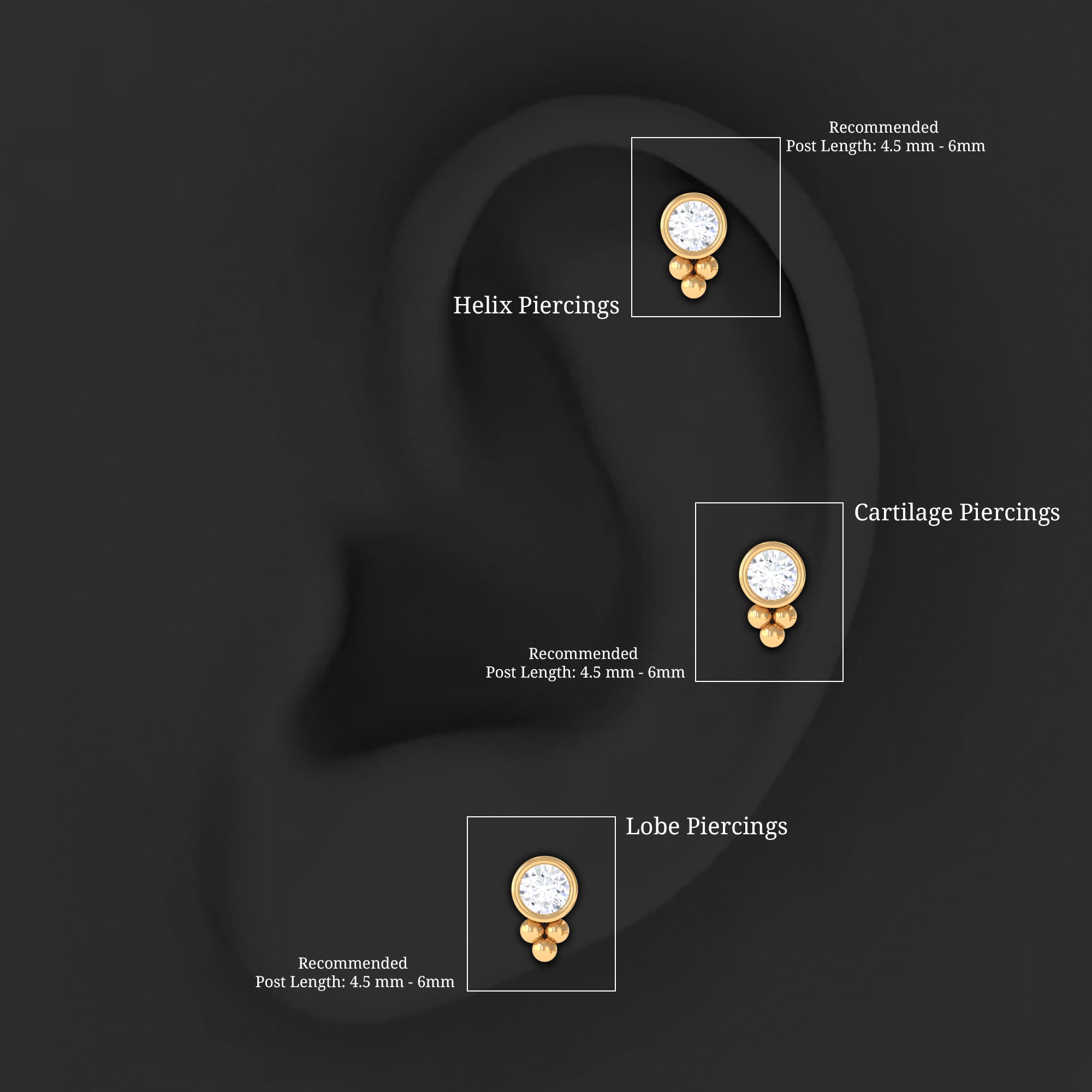 Enhance your beauty with our stunning Minimal Moissanite Helix Earring. Featuring a round cut Moissanite in a sleek bezel setting, accented with a gold beaded design. They can be worn on your helix, conch, tragus, cartilage, or upper lobe piercing, and come with a comfortable flat back closure. These simple yet elegant helix earrings make an excellent birthday, anniversary, or Christmas gift for someone special in your life.