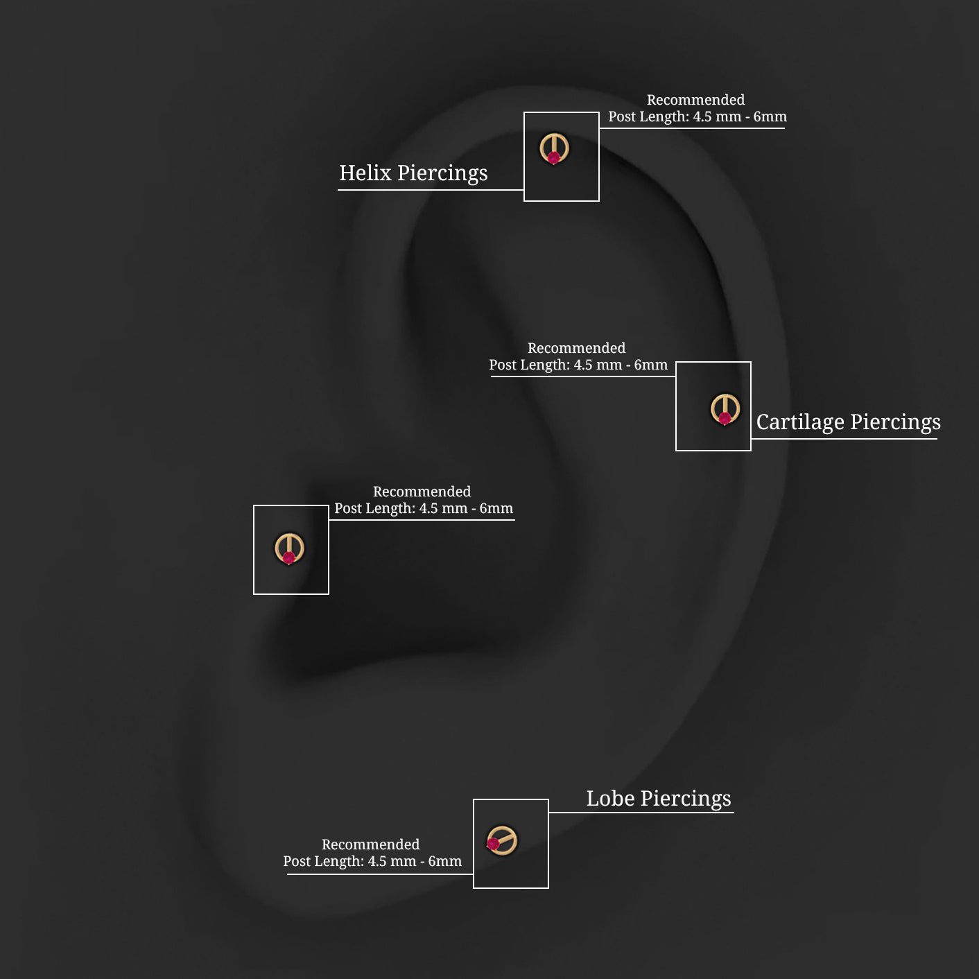 These simple and elegant Minimalist Ruby Earring that has a charm that wont disappoint you. Bejeweled with Round Shape Ruby secured by 4 Prong Setting, this July Birthstone Earring is an eye-catching piece of jewelry that will make you stand out from the crowd. You can style this Red Ruby Earring on your piercings like Helix, Cartilage, Tragus, Conch, or Upper Lobe Piercing. The Minimal Earring is crafted with Hallmarked Metal. Get this Ruby Earring for your special person as it will be a pleasant addition to her jewelry wardrobe.